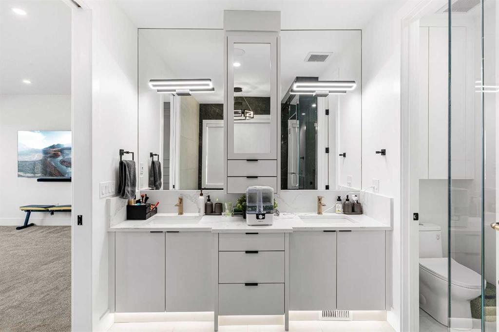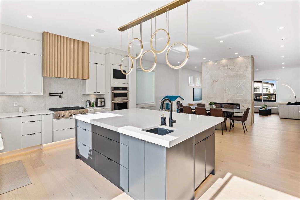 Welcome to 467 Patterson Blvd SW, a luxury custom built residence in the newest subdivision in prestigious Patterson Heights. Thoughtfully designed with an emphasis on modern living, timeless finishes and functional spaces this home offers over 3,900 sqft above grade plus a fully developed 1,040 sqft basement creating a total of almost 5,000 sqft of finished living space. This lovely home is fully landscaped(sunny backyard that flows into the home) with a large 16x12 gazebo and backs on to a treed green space for the utmost privacy. As you enter the home you are welcomed into a grand foyer with soaring ceilings and up/down access to the heart of the home. Heading up to the main level the living area is spacious and bright with patio doors & access to the first balcony, recessed lighting and a gorgeous floor to ceiling double sided tile facing fireplace nicely partitioning off the dining area & living area. The chef inspired kitchen is sure to impress featuring custom full height cabinetry, premium quartz countertops, a large central island with breakfast bar seating & sink with built-in appliances (including oversized French door fridge, gas cooktop with pot filler, wall oven & microwave) pantry and if this isn't enough of a wow factor, tucked around the corner is the spice kitchen with second set of appliances + more room to cook when hosting guests! Finishing off this level you have a spacious office, perfect for work or study and a 3pc bathroom with glass shower. Upstairs the serene primary suite offers a private balcony overlooking the front of the home, a spa inspired 5pc ensuite with a steam shower, heated floors, dual vanities and a freestanding tub plus a huge walk-in closet (with custom built in's you have to see it to believe it). Two secondary bedrooms each enjoy private ensuite bathrooms and walk-in closets. This level also features a bonus room in the common area and laundry room with stacked washer & dryer + sink and cabinetry. The third floor loft is a showpiece of its own, offering a stunning wet bar with fridge, 2pc guest bathroom, huge storage closet space and expansive windows with skyline views of Calgary. Completing this home the reverse walkout basement features a 2 bedroom(1 with ensuite and walk in closet) versatile suite with rare 10 foot ceilings, kitchen, second laundry and fireplace. Additional highlights include main 10 foot ceilings on main, 8 foot doors throughout home, an oversized heated double garage, rear aggregate concrete patio, smart home wiring, premium exterior design, 2 furnaces, 2 A/C units, in floor heating, 2 gas lines for bbq/fire pit and thoughtful touches throughout. This exceptional residence is located minutes from top rated schools, parks, shops, and downtown Calgary. Come view this unique home and you will fall in love!