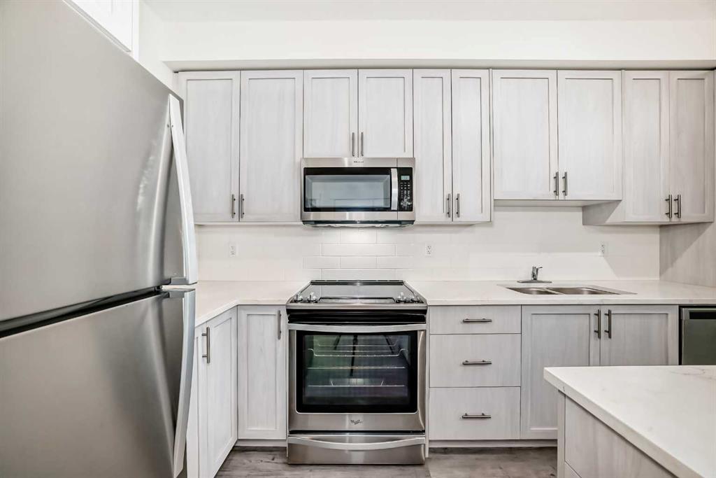 Great Value ! 1 Bedroom Condo in the popular community of Legacy Park. The kitchen features stunning WHITE MARBLE LOOKING QUARTZ countertops, with beautiful grey and white shaker wood cupboards that go all the way to the ceiling! The kitchen is also highlighted with an island and equipped with stainless steel appliances, including a slide out stove, making for a sleek back splash. For your convenience, Your condo also includes an in-suite washer/dryer. The bathroom has the same marble looking quartz counter top, and a grey and white shaker wood cupboard. The bathroom can be accessed from the main area or from the bedroom through the walk-in closet. Your future home comes with a TITLED UNDERGROUND HEATED PARKING spot and an assigned storage locker. And to top it off a nice balcony to enjoy your favorite beverage or meal. Close to walking paths and beautiful ponds, a bus stop around the corner, and stores, restaurants and bars are just steps away.