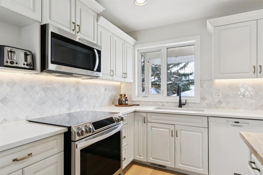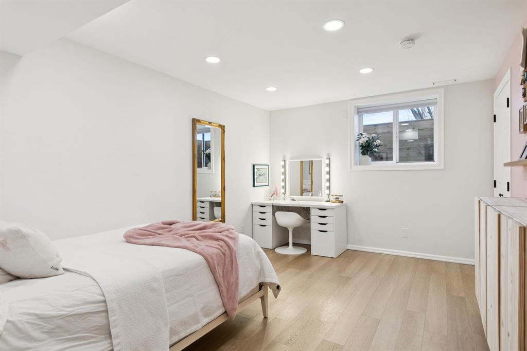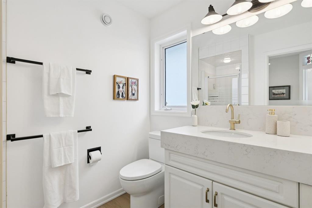 Meticulously maintained and thoughtfully updated R-2000 energy-efficient infill located on a quiet tree lined street in Windsor Park is perfectly positioned, directly across from a green space and school. This immaculate 1,645 sq. ft., 4-bedroom home built by McVean Construction, known for quality and attention to detail, offers a bright and functional layout with south exposure and an abundance of natural light. The entire home features luxury vinyl plank flooring. The spacious kitchen with quartz countertops, central island, and generous dining area, features large south windows overlooking the backyard. Updated laundry, with new washer and dryer, and a 2-piece bath round out the main level. Upstairs has three bedrooms, with the primary having an ensuite, walk-in closet and jetted tub. The fully finished lower level offers a large bedroom with walk-in closet, a 3-piece bathroom, and a versatile recreation room or office, providing substantial additional living space. All bathrooms have been beautifully remodeled, and the home has been thoughtfully upgraded with newer PEX plumbing, on-demand hot water, and a high-efficiency furnace, adding long-term comfort and peace of mind. Enjoy the fully fenced south-facing backyard and the insulated double detached garage, ideal for 2 SUV’s and additional storage. Centrally located just 10 minutes to downtown and within walking distance to Chinook Centre, the LRT, parks, schools, the Calgary Golf & Country Club, as well as the shops, cafés, and restaurants of Britannia Plaza. This home offers exceptional value, energy efficiency, and inner-city convenience.