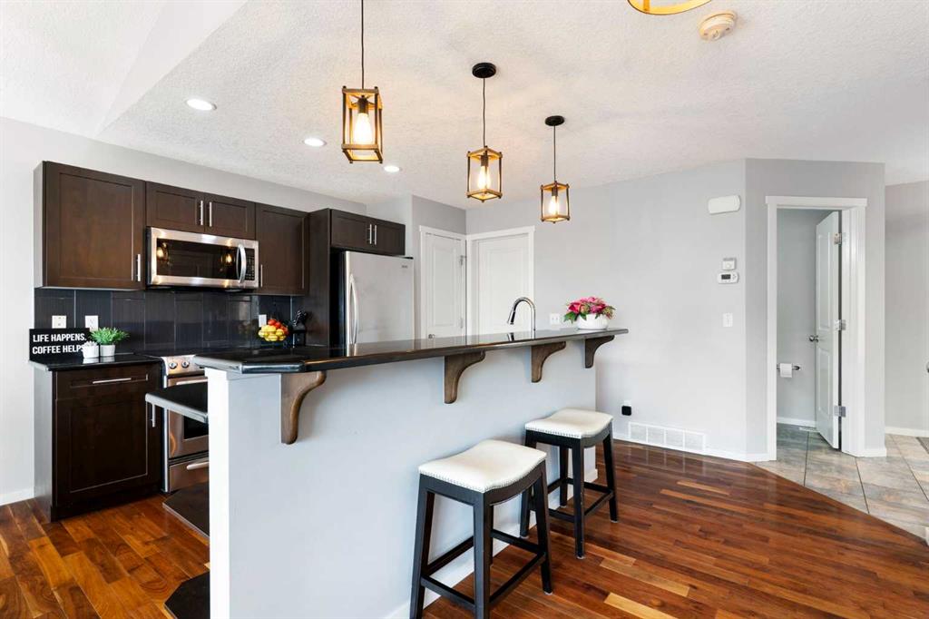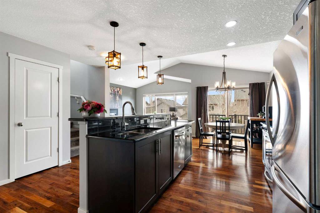 Welcome to this beautiful family home in the established community of Sage Hill, where modern style meets everyday functionality. Step inside to an open concept main floor featuring rich hardwood flooring, vaulted ceilings, and large windows that fill the space with natural light. The kitchen is both stylish and practical, offering granite countertops, stainless steel appliances, and seamless flow into the dining and living areas, perfect for both daily living and entertaining. Main floor laundry and an attached double garage add to the home’s convenience. Upstairs, you’ll find two spacious secondary bedrooms, each with walk-in closets, along with a full 4pc bathroom. The primary suite offers a private retreat with its own large closet and 3 pc ensuite. The backyard is a true standout. Enjoy a sun filled south facing yard, oversized two-tier composite deck designed for both lounging and dining, all set within a professionally landscaped, low maintenance yard. A tranquil babbling brook adds a unique touch, creating a private outdoor space that’s perfect for entertaining or unwinding. Recent upgrades include professional re-siding and a brand new roof, providing added value and long term peace of mind. The unfinished, insulated basement offers excellent potential with a smart layout for future development. Surrounded by parks, pathways, and green space, this home offers the ideal balance of comfort, style, and location.