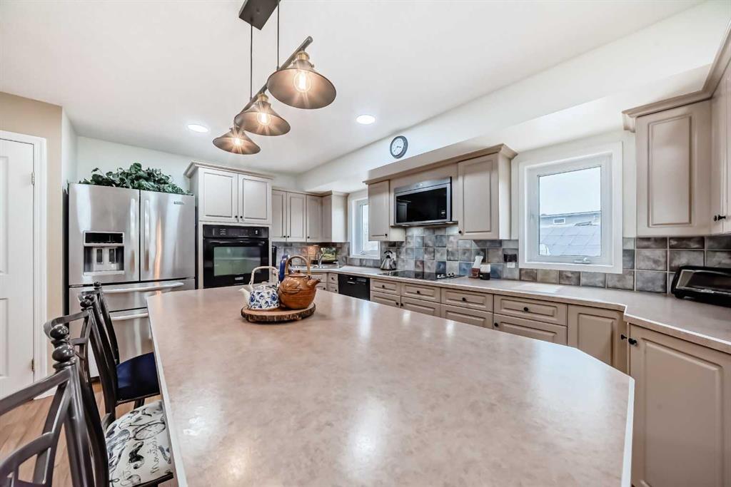 Welcome to this beautifully maintained & updated bi-level home in the heart of Queensland! Situated on a large corner lot surrounded by mature trees & flower/plant gardens, this spacious 4-bedroom + den home offers 2 nicely sized bedrooms plus a den upstairs, 2 additional bedrooms downstairs, and 3 full bathrooms—perfect for families of all sizes. The primary bedroom has plenty of space for your king size bed & the walk-in closet is big enough for everyone's clothes! Don't forget to check out the amazing 4pc ensuite! The bright, open-concept kitchen offers a TON of cupboard space for ALL your kitchen gadgets, and is ideal for entertaining and cooking up a storm! Among your usual appliance offering, this great kitchen features a cooktop stove & built-in microwave, both new within the last 2 years! HUGE bright windows in the living room bring in enough light to help the indoor plants thrive! BTW - all brand new carpet on the upper level & basement family room of this gorgeous home - very cushy on the feet! As you continue the tour - head on thru the French doors through the dining area onto your LARGE, tiered, back deck (all decking new within last 2 years) overlooking the private yard, creating the perfect space for summer BBQs and outdoor gatherings. Feel the need to curl up in front of a fire and read a book or watch a movie? Head down to the very well laid out basement where you will find a large family room with a newer gas fire place (2 years old) and just....relax. Got a bunch of guests coming over and staying the night? Head down the hall from the family room and pick one of two huge bedrooms - and don't worry about having to share your upstairs washrooms with the guests - there is a full 4 pc downstairs as well! Other notable recent updates also include a new high-efficiency furnace (just 6 months old), as well as a newer washer & dryer (2 years). Completing this exceptional home is a great spot to park your cars, toys, or if you have a hobby, take note of the double attached garage - and don't worry about hanging out in the garage in the dead of winter - not only is it heated, but the heater is only 2 years old! This property is located in an unbeatable location close to schools, the community hall, parks, shopping, and transit. A truly beautiful home in one of Southeast Calgary’s most established family communities!
