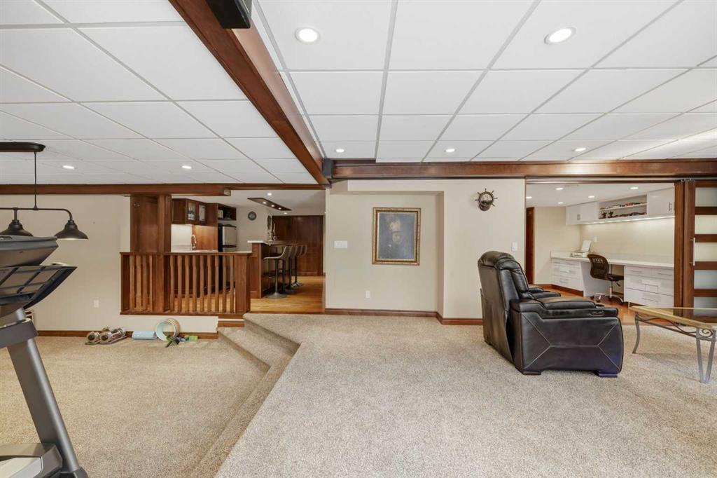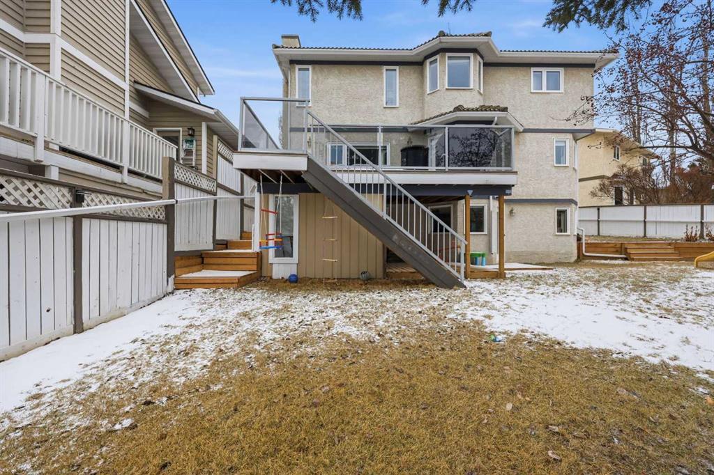 Hello gorgeous! This estate style home combines warmth, oak finishes and that Ralph Lauren throwback feel. The character remains intact with recent updates and fully developed walkout basement offering a more than comfortable 3700 sqft of living space, You’ll find this sprawling home on a quiet cul-de-sac in sought-after Woodbriar Estates. With over $130,000 in recent improvements, including a fully permitted basement renovation and brand-new windows, this property delivers a wonderful combination of space, craftsmanship and charm. The main level is designed for flexibility, featuring a private home office, formal dining area, and a spacious kitchen that opens into multiple living areas—perfect for families who want both connection and separation in their day-to-day living. Natural light pours in through the upgraded windows, enhancing the home’s brightness and functional layout. Upstairs offers four bedrooms, a generous primary suite complete with two walk-in closets and a 5-piece ensuite. The walkout basement has been professionally renovated with engineered hardwood and insulated Dricore subfloor. An expansive rec room, wet bar, half bath and a custom hobby room. There is an incredible amount of shortage space in the basement. Whether for entertaining, hosting the in-laws or working from home, you’ll find value and accessibility in the bottom level. Outside, the pie-shaped lot offers a sunny southeast exposure, mature landscaping and privacy. Also included is the play structure. The elevated deck—with glass railing and gas hookup—extends your living space outdoors, while the recently completed retaining wall adds both structure and visual appeal.Additional updates: removal of poly-b plumbing, new garage door, exterior trim refresh and the comfort of dual A/C units. Fish creek and walking paths are minutes away. Come check out this masterpiece.