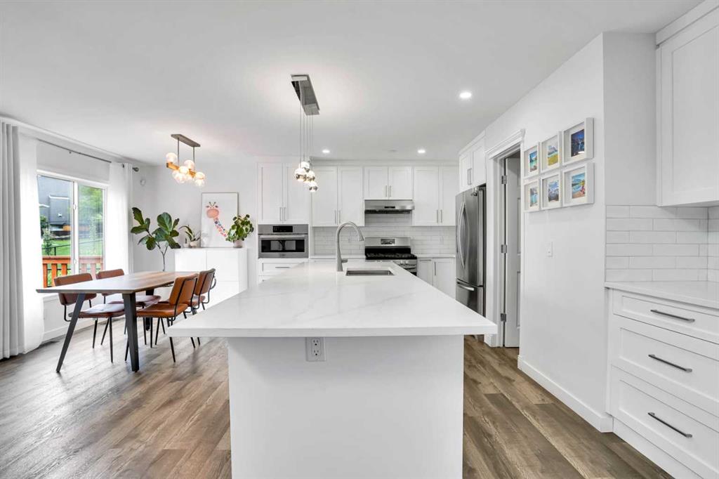 Modern renovation (2022) + walk zone of highly rated schools + 18-feet ceiling + south facing backyard + epoxy garage flooring. Welcome to this modern, smoke-free, and pet-free two-storey home in the highly sought-after SW community of Springbank Hill. Thoughtfully upgraded and meticulously maintained, this residence offers a bright, spacious, and functional floor plan filled with natural light throughout. The main floor greets you with a large foyer and a versatile flex room that can serve as a home office, formal dining area or entertainment room. At the heart of the home is the impressive spacious family room with soaring 18-feet ceilings and a cozy fireplace. The south-facing backyard floods the living space with sunshine, perfect for plant lovers. The beautifully renovated kitchen boasts an extra-large island, modern cabinetry, a convenient walk-through pantry, and upgraded appliances, complemented by a dining area that opens to the fully landscaped backyard. Upstairs, the generous primary suite features a spacious walk-in closet and a beautifully updated ensuite. Two additional well-sized bedrooms, each with unobstructed views, complete the upper level. The open basement provides endless possibilities for your personal touch and future development. Additional highlights include a large lot with ample space for gardening, a newly stained deck, and epoxy-coated garage flooring. New Flat ceilings, tasteful finishes, and recent upgrades create a fresh, modern feel. Conveniently located near 69st LRT station, Aspen Landing and Westside Rec Centre, this home is within the walk zone for the highly rated Griffith Woods (K–9) and Ernest Manning High School (9–12), and close to top schools including Webber Academy, Rundle College, Roberta Bondar, and Menno Simons (walking distance). Outdoor enthusiasts will also enjoy nearby green spaces such as Elmont Park (walking distance), Battalion Park, and Griffith Woods Park. Just 15 minutes from downtown and 45 minutes from the mountains, this home offers the ideal balance of city convenience and quick weekend getaways.