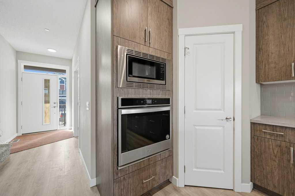 Welcome to this stunning detached home in the vibrant community of Livingston, offering no neighbours behind for added privacy! Situated on a deep 130 ft lot, this property provides an extended backyard, perfect for outdoor enjoyment. This beautifully designed home features a massive front porch and approximately 1,900 sq. ft. of living space above grade, with 9-ft ceilings and luxury vinyl plank flooring throughout the main floor. The spacious foyer includes a large closet and leads to a bright front office with south exposure, filling the space with natural light. The chef-inspired kitchen is truly the heart of the home, showcasing ceiling-height cabinetry in a modern cream tone, an elegant full-height tile backsplash, high-quality countertops, and stainless steel appliances, including an electric cooktop, built-in oven and microwave, and range hood fan. A massive corner pantry adds extra convenience. The adjacent dining area easily accommodates an 8-seat table and flows seamlessly into the cozy living room, highlighted by large windows that flood the space with natural light. At the rear, you’ll find a spacious mudroom leading to a large deck, a low-maintenance backyard, and a double detached garage. Upstairs features a functional and family-friendly layout with plush carpeting throughout, a bonus/family room perfect for entertaining, and convenient upper-floor laundry. The primary bedroom offers space for a king-size bed, a luxurious 5-piece ensuite with double vanity, a walk-in closet, and the rare bonus of private balcony access. Two additional generously sized bedrooms and a 4-piece bathroom complete the upper level. The home is also equipped with a security system throughout. A standout feature is the legal basement suite with a separate side entrance, complete with a full kitchen, spacious bedroom, large windows (larger than standard), and a 4-piece bathroom an excellent opportunity for rental income (previously rented for $1,800/month) or multi-generational living. Located just minutes from Stoney Trail, close to shopping and amenities, and only a 2-minute walk to the bus stop, this home offers the perfect combination of comfort, convenience, and investment potential. Don’t miss your chance to own this exceptional property!