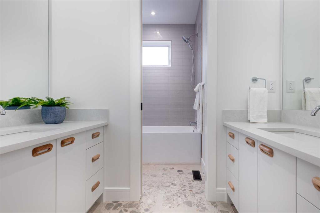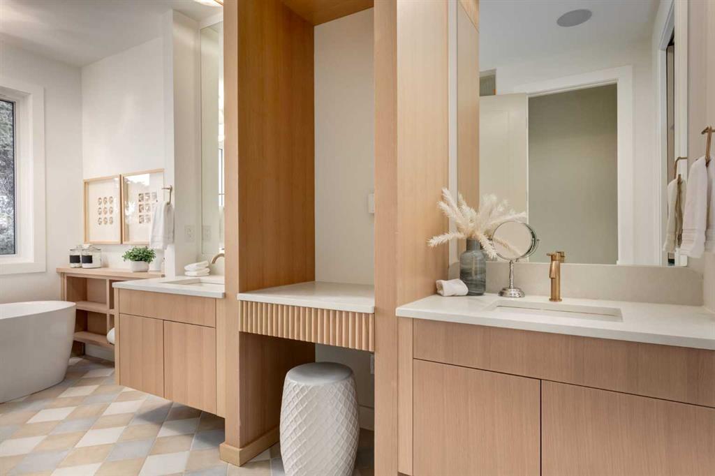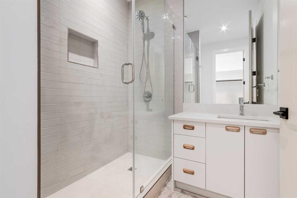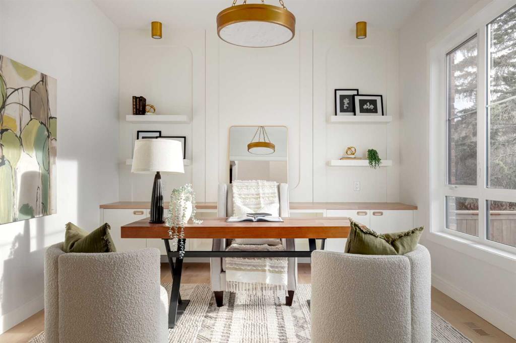 Welcome to 8812 33 Avenue NW, a brand-new luxury home by Platinum Build Homes, designed by Maxime Chin Designs, located on a wide lot in the sought-after community of Bowness. Offering nearly 3,800 sq ft of developed living space, this thoughtfully designed residence combines modern elegance with functional family living. The main floor features 10 ft ceilings and a bright, open-concept layout. A front office with custom built-ins sits behind French doors, while a stylish powder room adds a designer touch. The living room is anchored by a feature fireplace and large windows overlooking the private backyard and deck. The chef-inspired kitchen showcases white oak cabinetry, a quartz island, premium appliances, and a butler’s pantry, seamlessly connecting to a mudroom with additional built-ins. Upstairs, the primary suite offers a vaulted ceiling, a walk-in closet, and a spa-like 6-piece ensuite complete with a soaker tub and steam shower. Two additional bedrooms share a 5-piece bathroom, and a bonus room and upper-level laundry provide added convenience. The fully finished basement is ideal for entertaining and everyday living, featuring a spacious recreation room with a wet bar, a home gym, two additional bedrooms, a 4-piece bathroom, and an extra powder room. Additional highlights include dual furnaces, ceiling speakers, and a built-in security system. Enjoy a prime location just minutes from the Bow River pathways, Bowness Park, schools, and downtown Calgary. Backed by Alberta New Home Warranty, this move-in-ready home offers an exceptional opportunity to own a high-quality new build in a vibrant inner-city community.