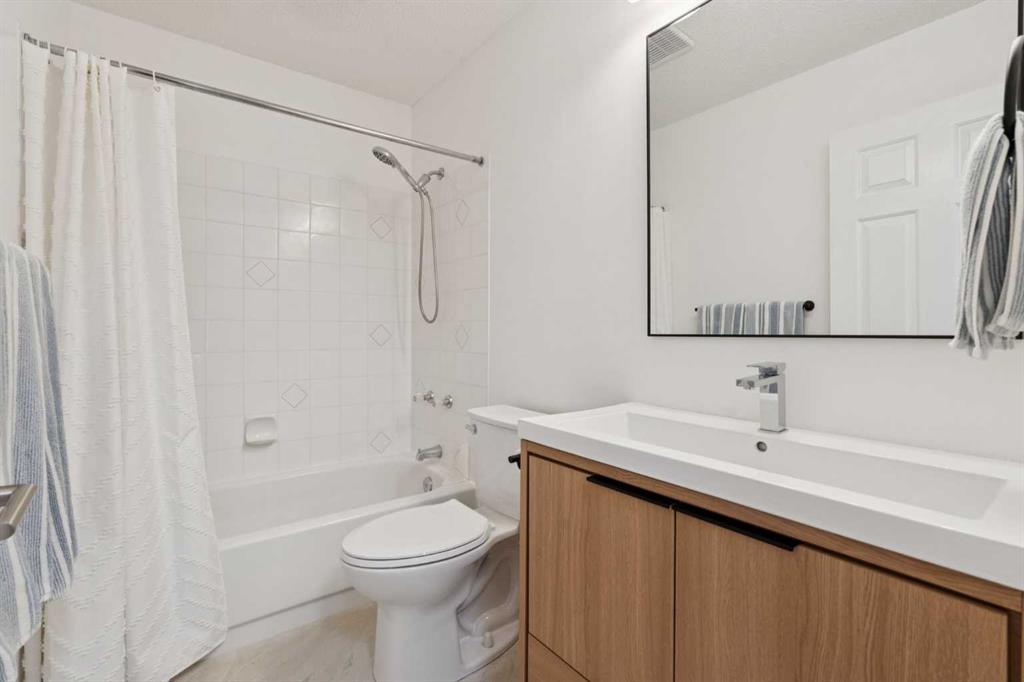 Welcome to this beautifully maintained duplex in the heart of Scenic Acres, where comfort, style, and convenience come together seamlessly. From the moment you arrive, the pride of ownership is evident—this is a home that truly shines. Step inside to discover a bright and inviting main level, featuring durable Luxury Vinyl flooring that flows effortlessly throughout both the main and upper floors, creating a cohesive and modern feel. The living room offers a warm and welcoming atmosphere, centered around a cozy gas fireplace—perfect for relaxing evenings or hosting guests. The upgraded appliances and stylish light fixtures elevate the space, adding a touch of contemporary elegance to everyday living. Upstairs, you’ll find three well-appointed bedrooms, including a spacious primary retreat complete with a walk-in closet and a private 3-piece ensuite. An additional 4-piece bathroom ensures comfort and functionality for family or guests alike. The fully finished basement expands your living space with a massive rec room—ideal for movie nights, a home gym, or a play area—along with a dedicated laundry room and plenty of storage. An attached single garage adds everyday convenience, while the unbeatable location puts you just minutes from Crowfoot Crossing, the LRT station, shopping, restaurants, and more. NEW FURNACE AND HOT WATER TANK! A fantastic opportunity to own a move-in ready home in a prime location—don’t miss it!