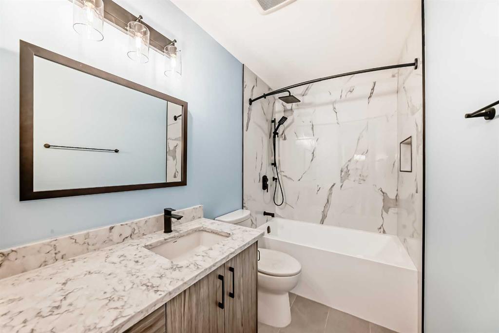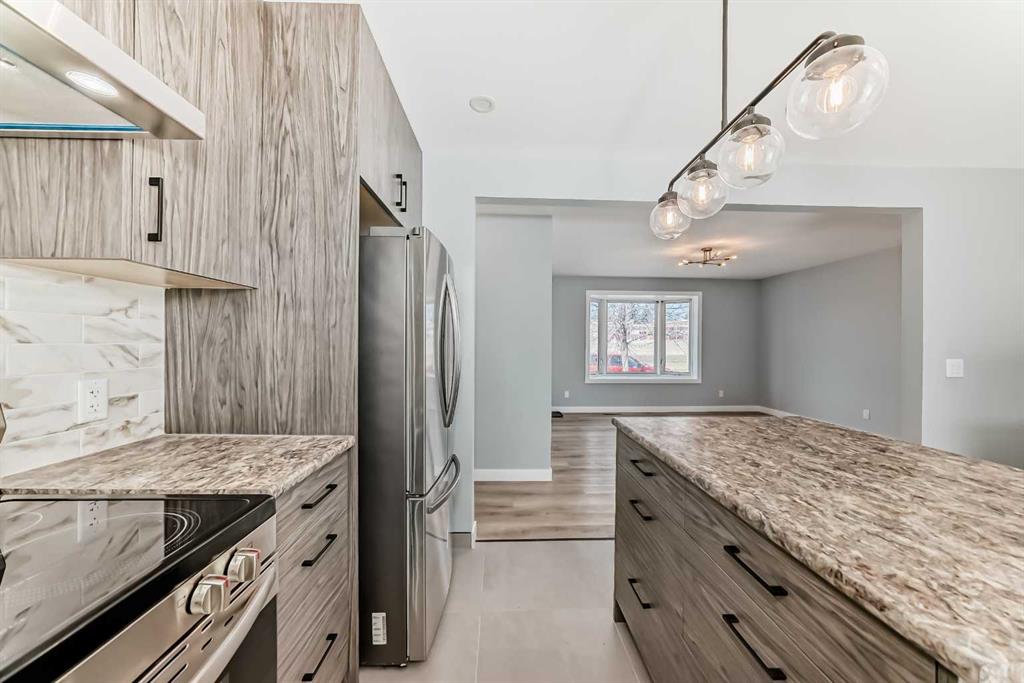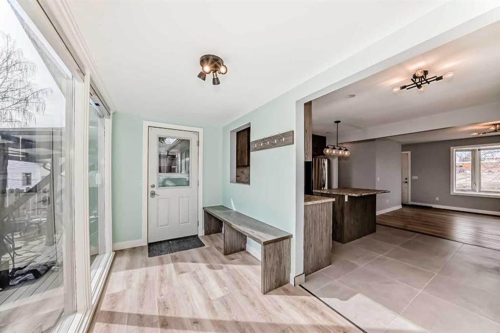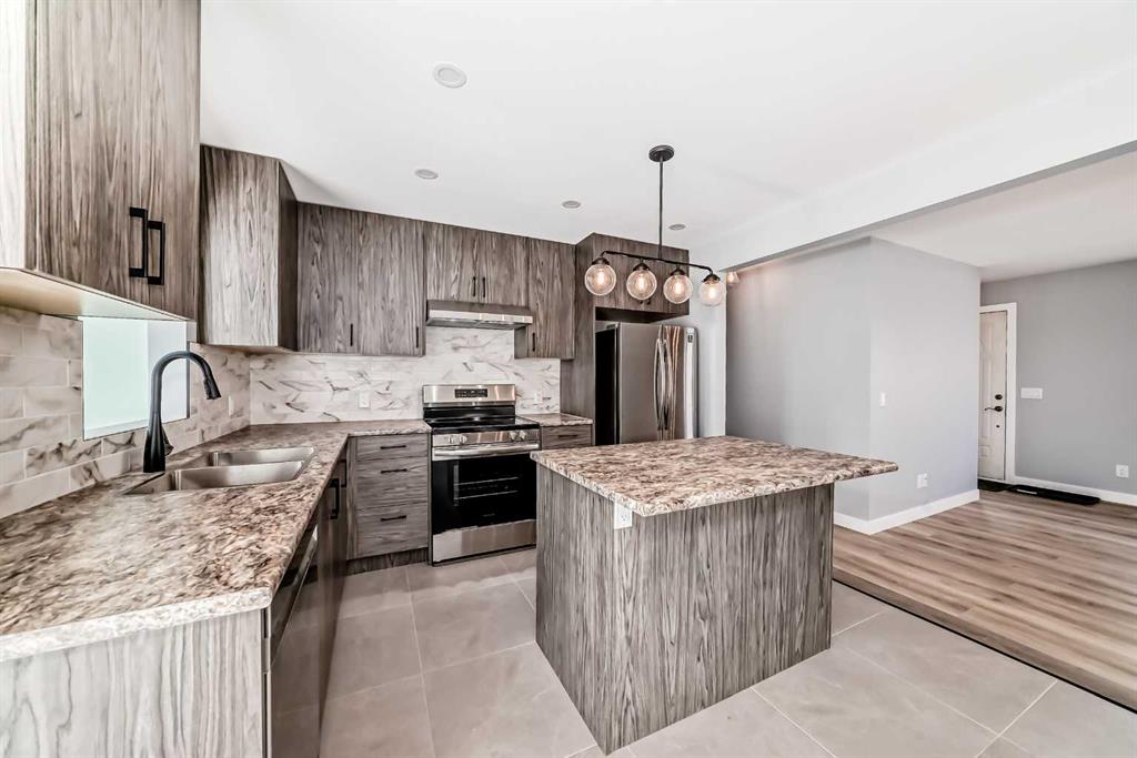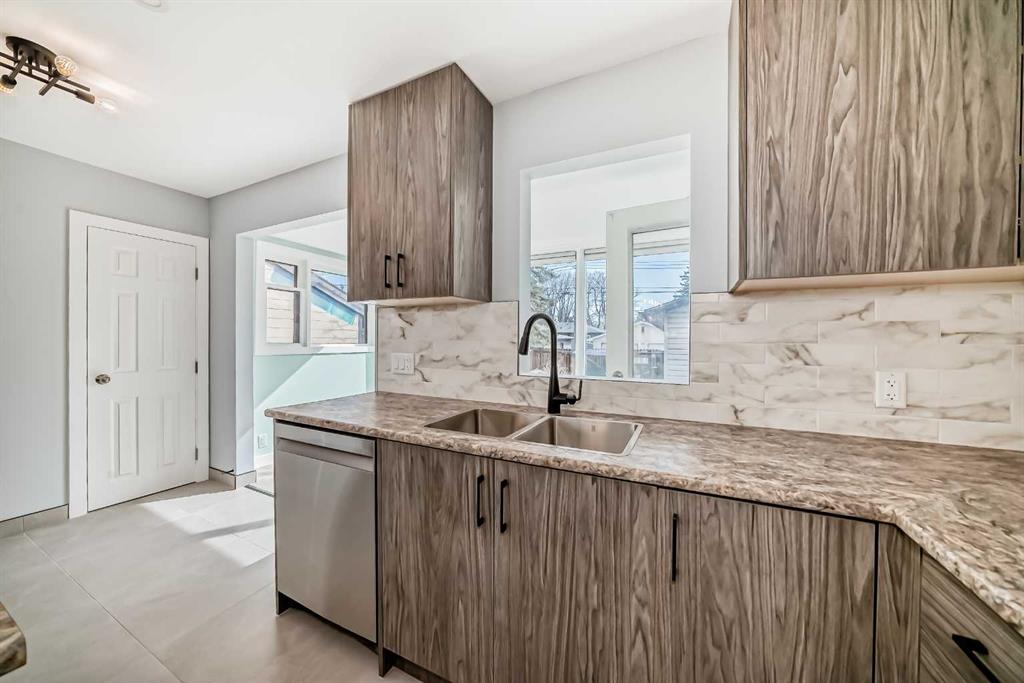 Beautifully Renovated Bungalow in Acadia – Across from a Park and Schools! This remodeled bungalow is ideally located directly across from a large west-facing park and within walking distance to schools in the desirable community of Acadia. Step inside to a spacious living room featuring bay windows that fill the space with natural light and offer picturesque park views. The main floor boasts new luxury vinyl plank and tile flooring throughout. The modernized kitchen showcases brand-new countertops, cabinetry, backsplash, lighting, and appliances—perfect for any home chef. Down the hall, you'll find a fully renovated 4-piece bathroom with granite countertops, along with three generously sized bedrooms, each updated with new flooring and lighting. The entire main floor has been freshly painted and is move-in ready. Just off the dining area, enjoy a bright and cozy sunroom overlooking the private backyard—an ideal spot to relax. A separate side entrance provides access to the developed basement, offering great potential for future plans. The developed downstairs area features a large family room (great space for a media room or home fitness options), a bedroom, another full bathroom, and ample storage. The spacious laundry/mechanical room includes an extra sink for added convenience. Additional upgrades include CENTRAL AIR CONDITIONING, a TANKLESS HOT WATER SYSTEM, a HIGH-EFFICIENCY FURNACE, a NEW ELECTRICAL PANEL, 6K worth of new HUNTER DOUGLAS blinds and full asbestos remediation for peace of mind. The backyard is a true retreat with a massive maintenance-free deck, a charming custom-built western-style shed, and a stone water pond. The front exterior features stylish faux stacked stone, poured concrete walkway, and front steps. The OVERSIZED INSULATED & HEATED DOUBLE GARAGE is a dream for any hobbyist or mechanic, complete with 220V wiring and NEW high-efficiency garage doors. Plus, there's convenient RV parking with a large vehicle gate—ideal for storing your outdoor toys. Don’t miss out on this turnkey gem—call today to schedule your private showing!