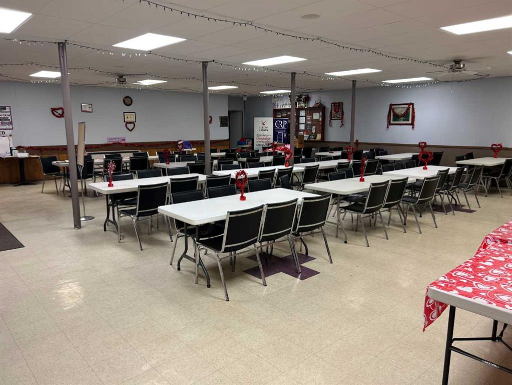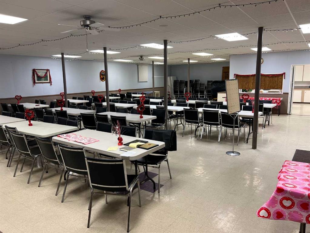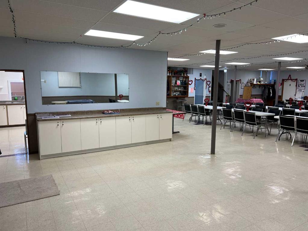 This building is ideally suited for a variety of uses and has potential for church organizations, farmer's market, studio, etc. This building is equipped for accessibility, including a ramp and an elevator lift. The roof was re-shingled in 2012. New hot water heater in 2021, new boiler in 2025. Main floor includes large foyer & hall, storage rooms, stage area, kitchen, prep & serving space and washrooms. The basement includes another large hall space, separate conference room, commercial kitchen, prep and serving areas, and washrooms.