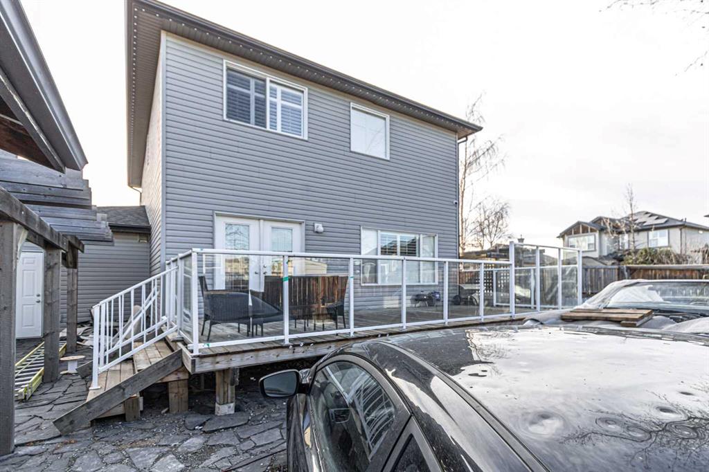 Motivated Seller! Welcome to West Creek in Chestermere! Tons of upgrades in this fabulous home on a CORNER lot. All the additional parking benefits but NO sidewalks to shovel plus RV Parking! This custom 3 bedroom home boasts AIR CONDITIONING (commercial grade), California Shutters, Sprinkler System (front & back) and more! The open concept main floor has an inviting living area w/ maple hardwood floors, gas fireplace & the well furnished kitchen w/ walk through pantry has recently upgraded SS appliances incl gas stove. French doors open to the back deck and a generous sized yard w/ a pergola over the stone patio, big shed & easy access RV parking. The attached heated oversized garage is immaculate. Triple garage doors w/ another tandem oversized stall. Compressor in the garage INCLUDED. New roof in 2019. Incredible neighbors! Close to walking paths, the pond, Park, Rainbow Creek Elementary School & more! The basement is fully finished, Already RENTED OUT $1000.