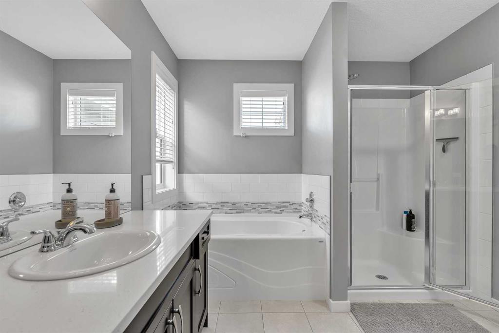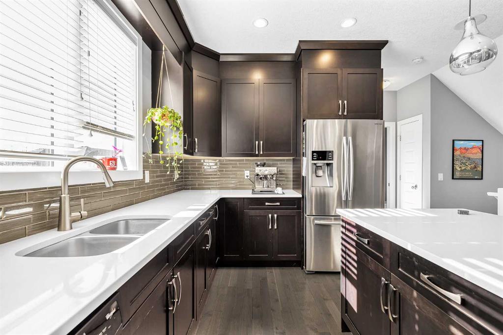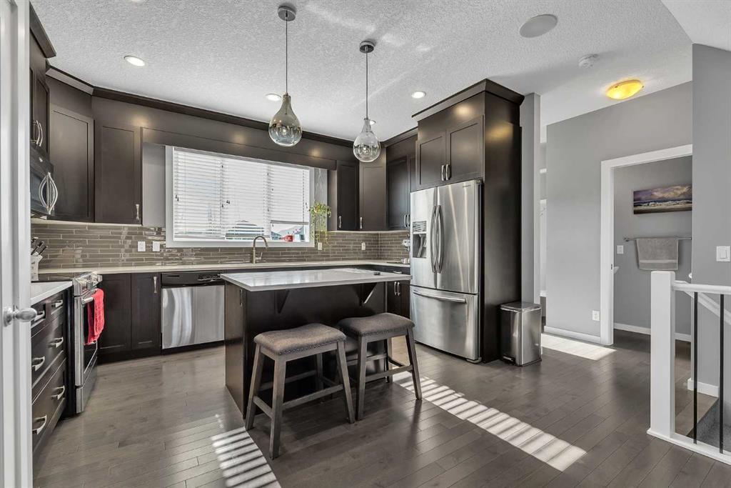 ((OPEN HOUSE CANCELED PROPERTY NOW C/S ))FORMER SHOWHOME | LEGAL SUITE | WALKOUT | DOUBLE DETACHED GARAGE | Upgrades, style, and versatility come together at 130 Heritage Drive in Cochrane. This former showhome offers exceptional curb appeal with upgraded landscaping and durable Hardie Board siding, while the inviting front porch is the perfect place to enjoy sunny mornings and warm summer evenings. Step inside to discover an air-conditioned home filled with quality finishes, including hardwood floors, 9-foot ceilings, built-in speaker system, and a bright open-concept main floor designed for everyday living and entertaining. The beautifully upgraded kitchen is the centerpiece of the home, featuring stainless steel appliances, quartz countertops, a large island, ample cabinetry, and a dedicated pantry. From here, step out onto the oversized west-facing rear deck, where you can soak up the sunshine and enjoy peek-a-boo mountain views. The main floor is completed by a convenient 2-piece bathroom, rear mudroom, and a functional workspace. Upstairs, the spacious primary suite stands out with its vaulted ceilings, walk-in closet, and a well-appointed 4-piece ensuite complete with a soaker tub and in-floor heating. Two additional bedrooms, another full 4-piece bathroom, and an upstairs laundry room add convenience for growing families. The fully developed walkout basement features a bright and well-designed legal 1-bedroom suite, ideal for rental income, multigenerational living, or extended family. This lower-level space includes a stylish galley kitchen, 4-piece bathroom, dedicated laundry, comfortable bedroom, and a sunny sitting area with abundant natural light from the west-facing walkout. Step outside to the covered patio and enjoy easy access to the yard and additional parking. Parking is no issue here with a double detached insulated garage plus an additional parking stall. This is a turnkey opportunity for buyers seeking a home with income potential, flexibility, and standout upgrades in one of Cochrane’s desirable communities. Book your showing today.