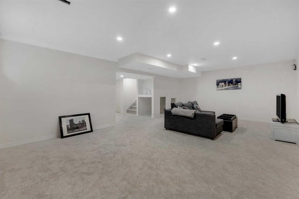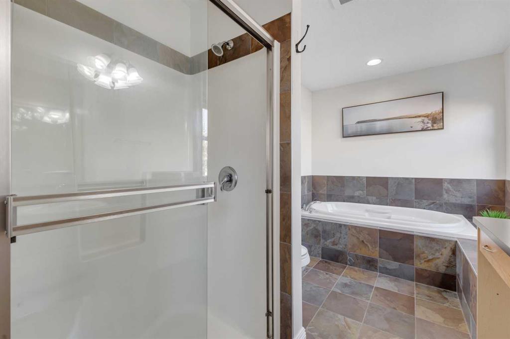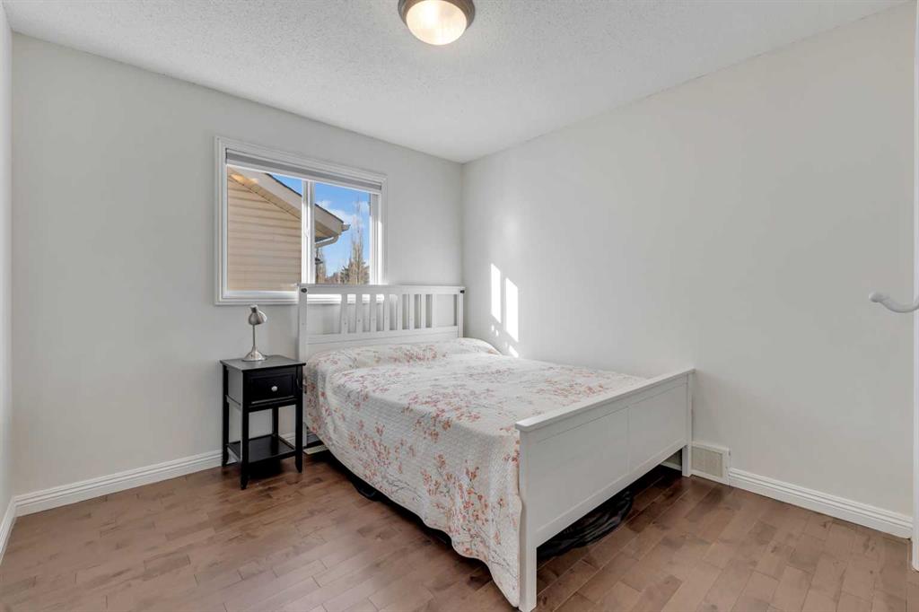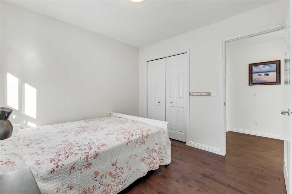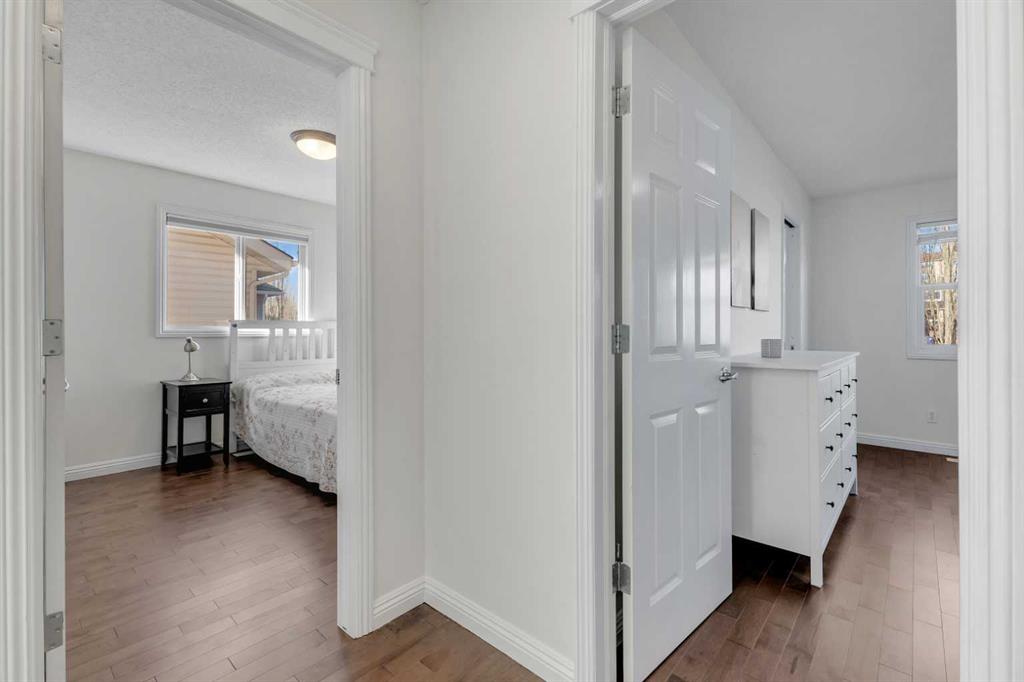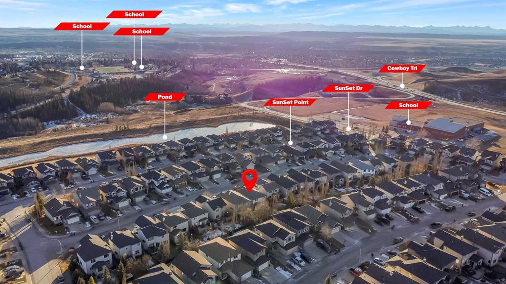 Open House Sunday Feb. 1st 1-3:30 pm . Cochrane's popular Sunset Ridge has green spaces, walking paths, ravines, schools, shopping & more. This beautiful 2 Storey is close to Cochrane Ranch House, Sunset Pond, Sunset Park & St. Timothy Jr/Sr school. Stepping inside the home you will see natural light throughout. Tastefully remodeled, all 3 levels flow nicely with same color tones & design. The main floor flex room is the first room you see when you enter. Great space for home office, dining room, or sitting area. By garage entrance, leading from the laundry, there are 10 coat hooks for your family. The laundry room has stackable washer/dryer, counter space, broom closet & extra cabinets. Walking into the kitchen & family room area will impress you, all the counter space, kitchen island, work area etc. Kitchen has 9 drawers, 8 double cabinets, 3 single door cabinets & 1 corner cabinet. Corner pantry has 4 levels of wire racks. A great kitchen for the cook & baker. One area of the cabinets has a bit lower counter, where you can put a couple chairs. The kitchen nook is bright with a door(glass insert)leading to the back yard.The other 2 walls have double height windows, again natural light. Watch kids play in the yard while having your coffee or cooking. The island has plenty of room to fit 5 stools. If you are the family that gravitates to the kitchen, you will love this kitchen. Front room is adjacent to the kitchen. The gas fireplace has wooden moldings around the fireplace & rich brown toned tile, matching the kitchen backsplash. One side of family room looks to the back yard through the same size of windows the kitchen nook has. Soft colored walls, lighter colored wooden cabinets in the kitchen & around the fireplace, rich brown counter tops & dark hardwood floors, this home is tastefully renovated. Going up the stairs to the bedrooms, you are greeted with light flowing in from very high south facing windows. Newer light beige carpet in on the stairs. Where there is carpet, it is all the same. Reaching the top of the stairs, to the right you have a 4 piece main bath, large towel cabinet in bathroom behind the door, medicine cabinet on the wall by sink, toilet & tub/shower. All colors flow with the main level. 2 bedrooms face the front of the home. One has a walk in closet, the other has a regular closet. To the left of the stairs are 2 other large bedrooms, one the master & a 4th bedroom! The 5 pce. ensuite is very spacious with separate shower & a tile seat by the large soaker tub.The large walk in closet in the master bedroom has ample hanging & shelving space. Going to the basement we see a huge bright family room, an area for a gym or pool table & a built in play house. There is rough in for a bathroom & a storage area. The double attached garage is drywalled & has upper cabinets & work bench's. At the side of the home is a small storage shed. The fenced back yard has a deck & patio stones. A perfect yard for the kids & adults to play.