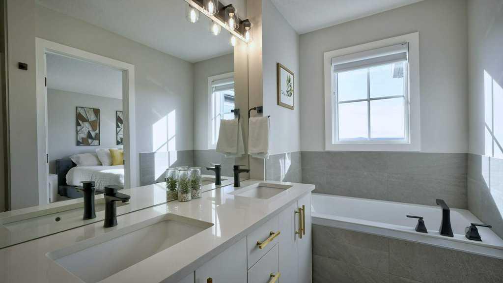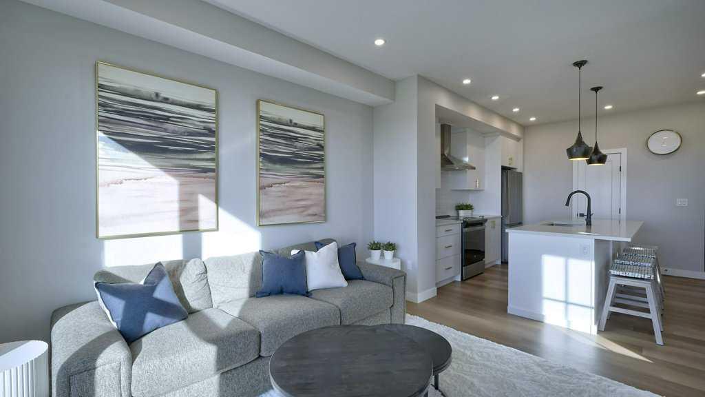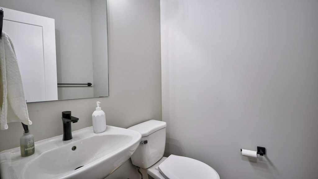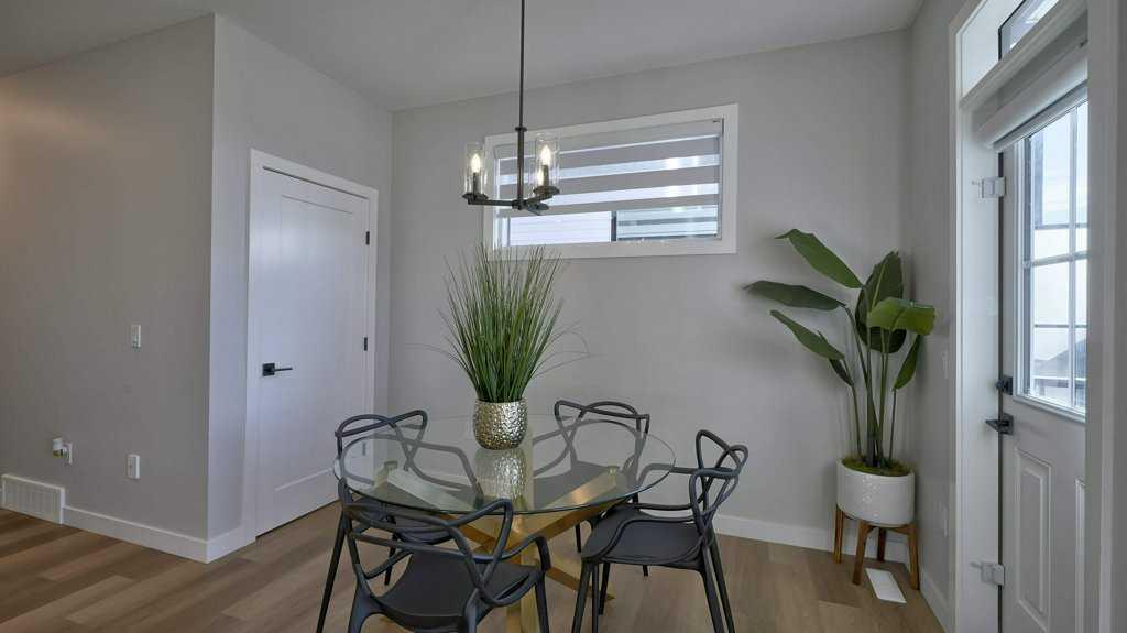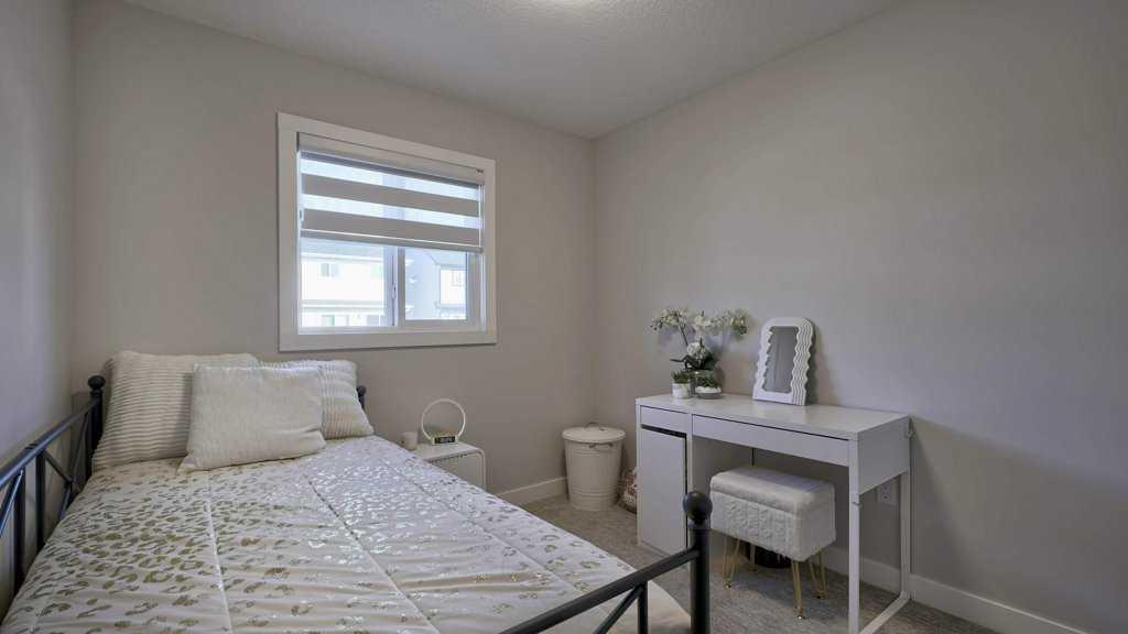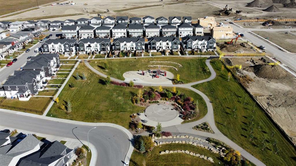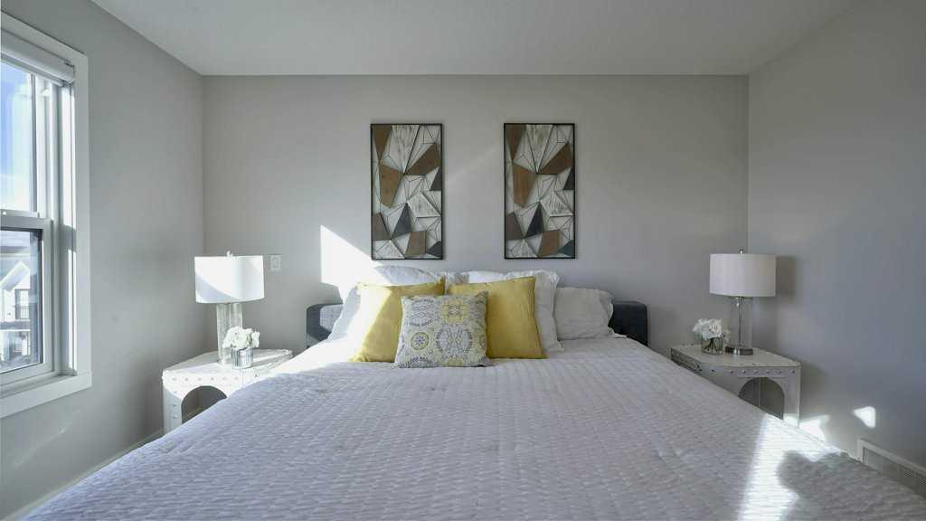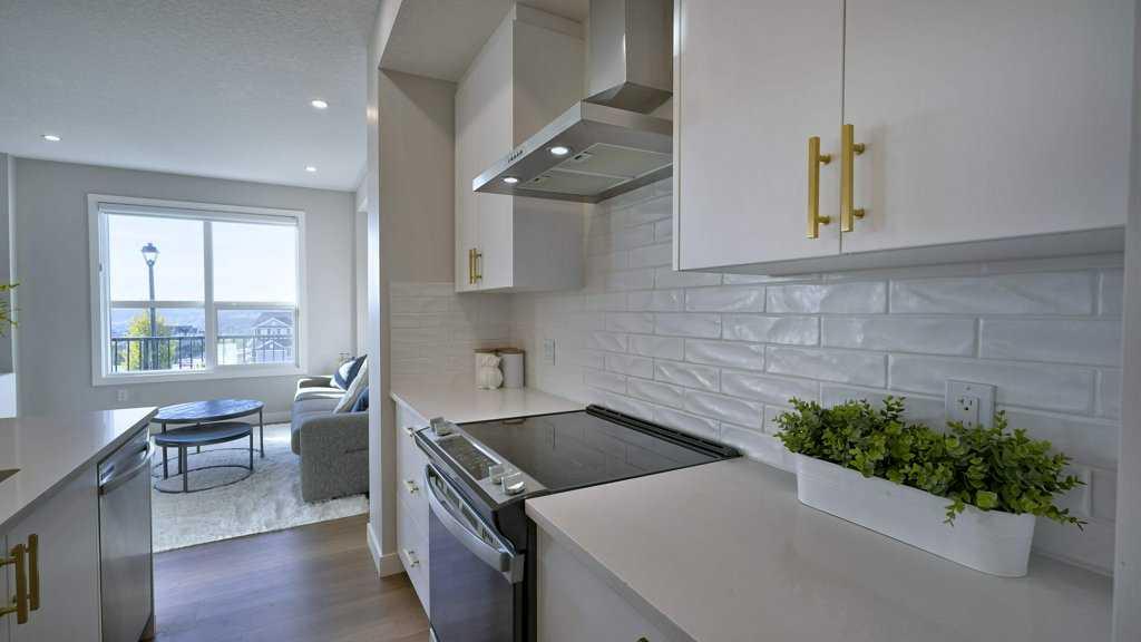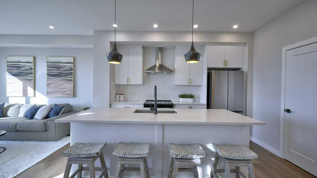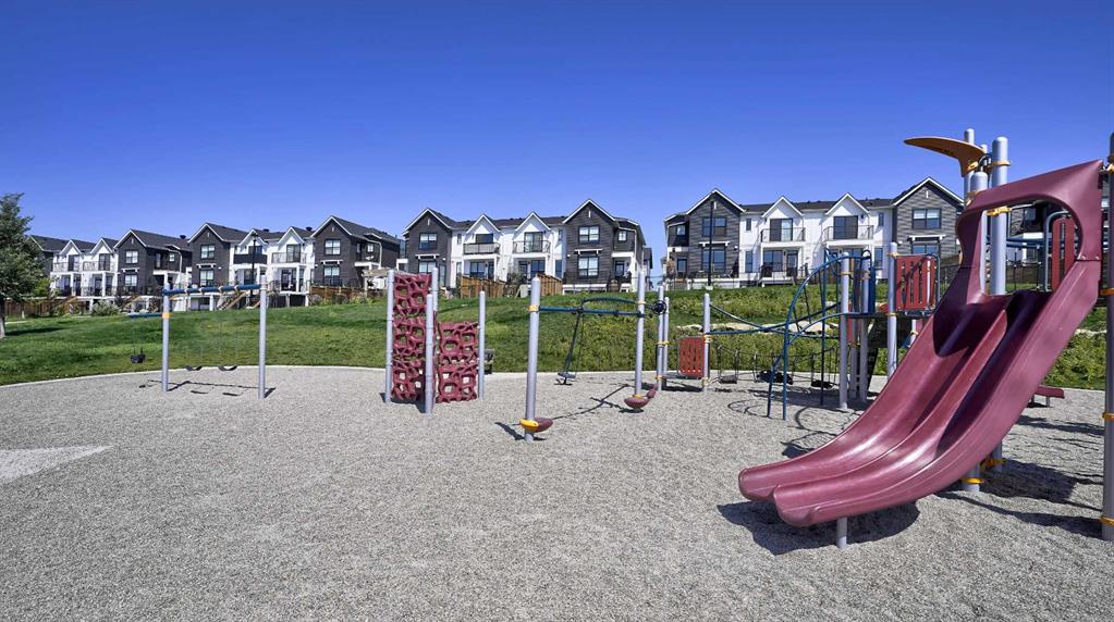 MOUNTAIN VIEWS | SOUTH-FACING BACKYARD | BACKING ONTO GREENSPACE | END UNIT | NO CONDO FEES. This stunning home combines a dream location with modern luxury—just like new! The bright, open-concept main level feels like a show home, featuring a large quartz island, full-length white cabinetry, sleek subway tile backsplash, gold hardware, modern lighting, stainless steel appliances, and a pantry. Knockdown 9-ft ceilings, pot lights, and luxury vinyl plank flooring add to the upscale feel. A convenient main floor half bath completes the space. Enjoy incredible views from every level with no neighbours behind. The sun-drenched living room offers direct access to the south-facing backyard, backing onto greenspace and pathways that weave throughout the community. Added luxury of motorized blinds on main floor and stairwell. Upstairs, the primary retreat is a true sanctuary with a walk-in closet, private balcony overlooking Cochrane and the mountains, and a spa-inspired 5-piece ensuite with dual quartz vanity, glass shower, and deep soaker tub. Two additional bedrooms share a full bathroom (also with quartz countertops), and the upper-level laundry closet adds everyday convenience. The home also features a separate side entrance leading to an undeveloped basement—perfect for storage or future customization. With NO CONDO FEES, mountain views, and a prime location backing onto a park and greenspace, this property offers the perfect blend of tranquility and modern design. OPEN HOUSE Sunday Oct 5th (noon-2 pm)