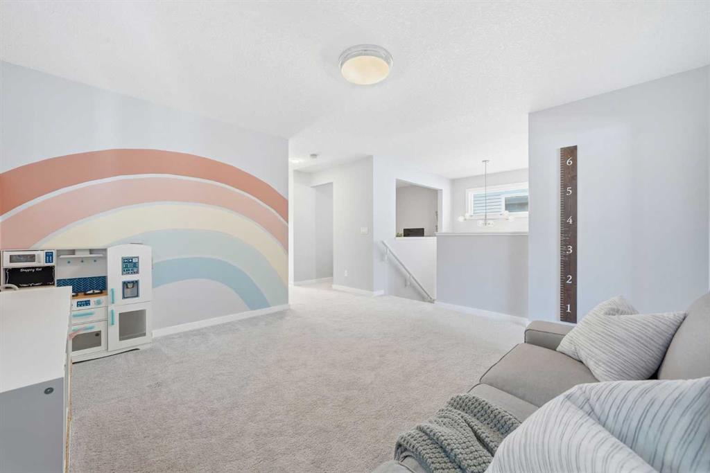 OPEN HOUSE Sunday, March 15th from 12:00-2:00 pm- Welcome to this beautifully maintained, move-in ready family home located in a quiet location just steps from a playground in one of Cochrane’s most sought-after neighbourhoods! With the convenience of K–Grade 8 at nearby Ranchview School, this location is ideal for growing families. Step inside to a warm and inviting main floor featuring rich wood-tone vinyl plank flooring and bright, modern finishes that create a calm and welcoming atmosphere. The stunning kitchen is the heart of the home, showcasing upgraded appliances including a gas stove and ceiling hood fan, quartz countertops, and a large island that’s perfect for gathering, entertaining, and everyday meal preparation. A spacious walkthrough pantry connects seamlessly to the mudroom, complete with built-in lockers to keep the family organized and convenient access to the main floor powder room and the garage which has been insulated, drywalled and finished with textured white walls. The open-concept living and dining areas create a comfortable space for both daily living and hosting friends. Sliding glass doors lead to the spacious backyard and deck with a gas line roughed in for your BBQ—perfect for summer entertaining while the kids play and you relax and enjoy the sunny outdoors. Upstairs, a centrally located bonus room offers excellent flexibility and is currently set up as a children’s play space but could easily function as a media room or additional family lounge. Just off the bonus room is a cozy office nook—an ideal tucked-away workspace. The primary suite provides a peaceful retreat with a spacious walk-in closet and a beautifully finished five-piece ensuite featuring dual sinks, quartz countertops, a deep soaker tub, and a separate tiled shower—the perfect space to unwind after a long day. Two additional bedrooms, each with their own walk-in closets, a full bathroom with quartz countertops, and a generously sized laundry room with extra storage space complete the upper level. The unfinished lower level is ready for your future plans, already equipped with a bathroom rough-in and plenty of space for additional living areas. Located in a vibrant community known for its pathways, parks, schools, and central pond, you’ll also enjoy convenient access to nearby amenities including restaurants, pharmacy services, and medical clinics. An exceptional home offering comfort, function, and a quiet family-friendly location—book your showing today!