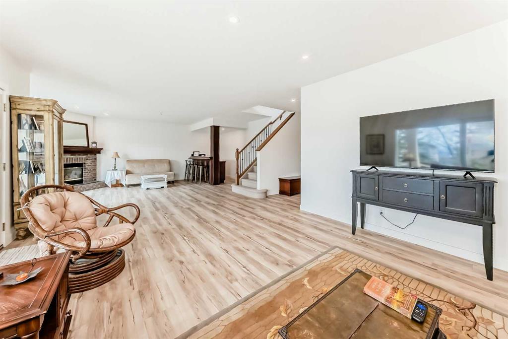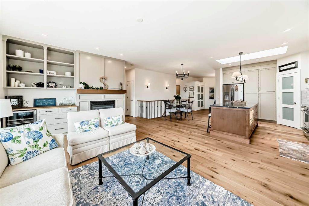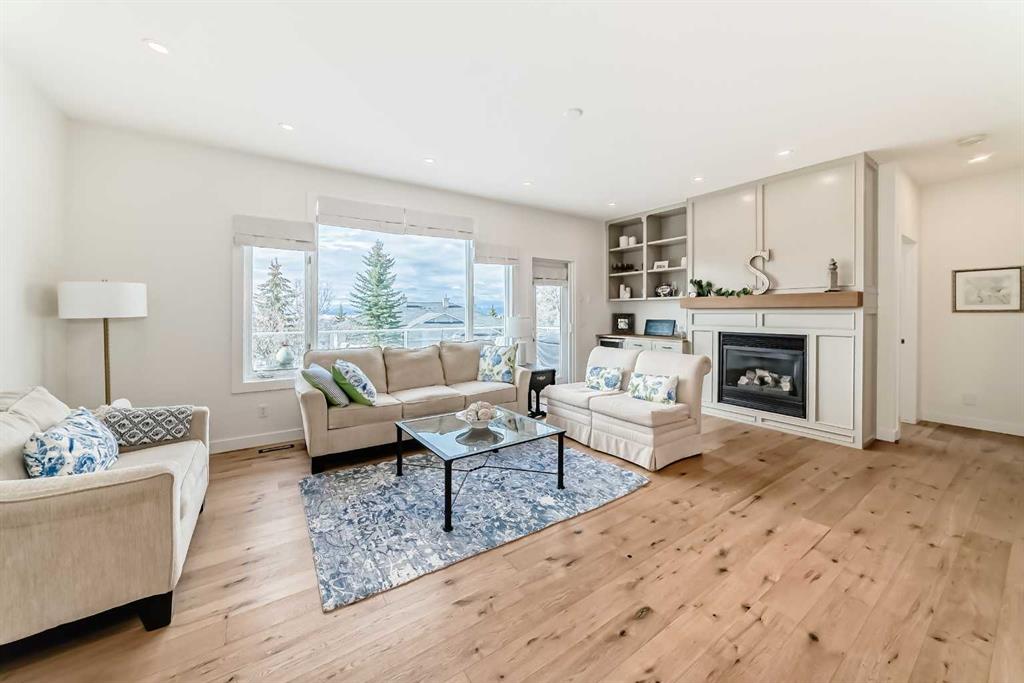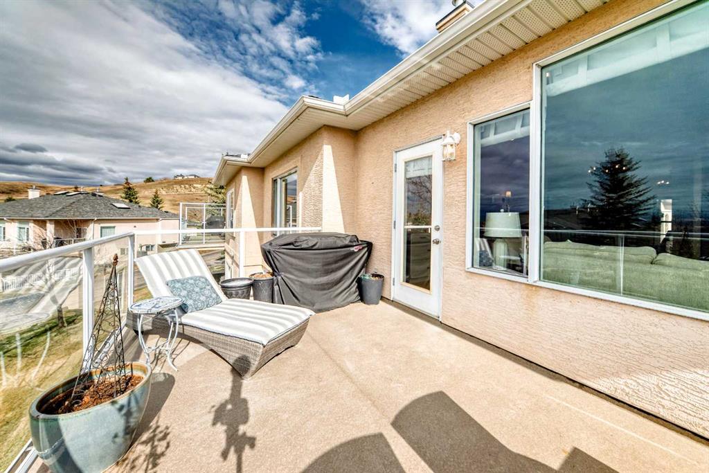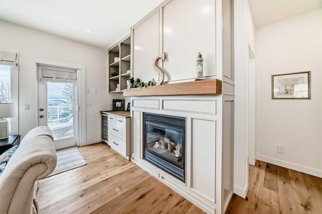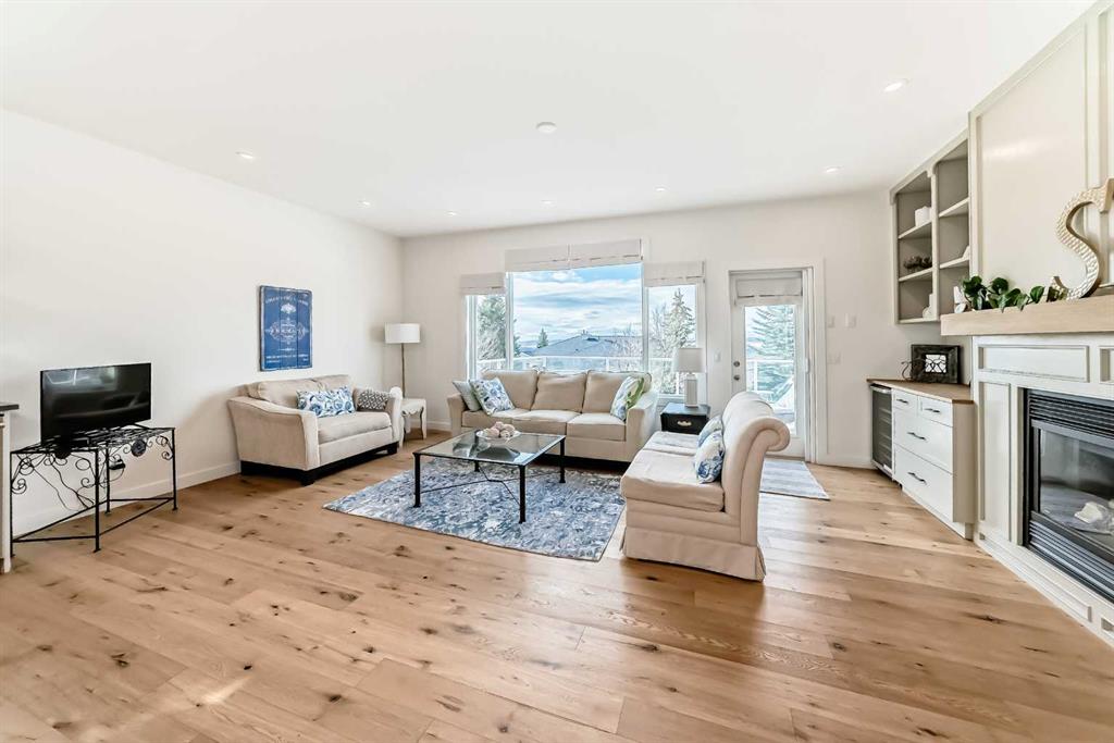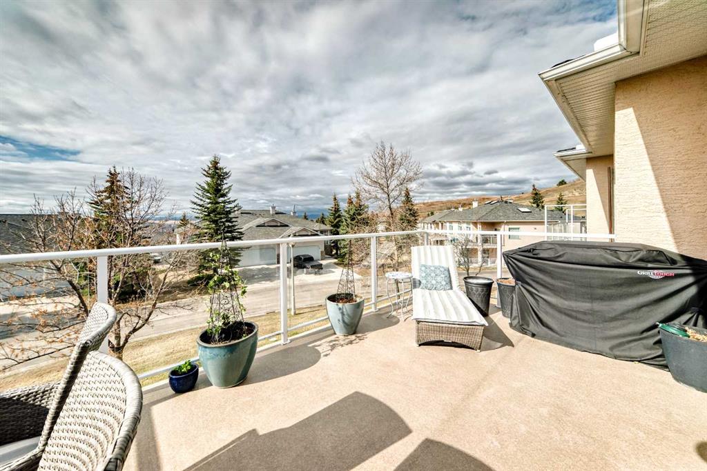 Welcome to this thoughtfully designed half duplex in the sought after community of Glen Eagles. Offering a perfect blend of comfort, style, and location. This spacious home features 3 bedrooms, 3 bathrooms, and a versatile den, with an open concept layout that seamlessly connects the kitchen, dining, and living areas. Soaring 9 foot ceilings and an abundance of windows fill the home with natural light while showcasing stunning mountain views. The main living area is warm and inviting with hardwood flooring and a cozy gas fireplace, creating the ideal space for both relaxing and entertaining. The primary bedroom is a true retreat, complete with a walk in closet and a luxurious 5 piece ensuite. The fully finished basement offers exceptional additional living space with in floor heating and a second fireplace. Completing the space is a wet bar, full 4 piece bathroom and two additional bedrooms, making it ideal for guests or extended family. Outside, enjoy a spacious backyard with lush grass and a concrete deck. The heated double garage adds year round convenience and comfort. Situated in a peaceful, scenic neighbourhood known for its quiet atmosphere and proximity to golf, pathways, and easy access to Calgary and the mountains.