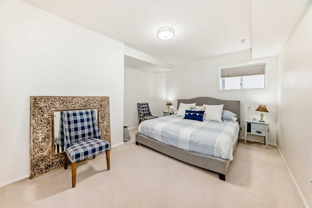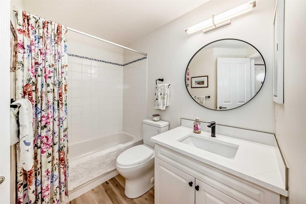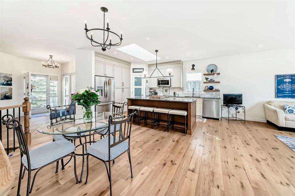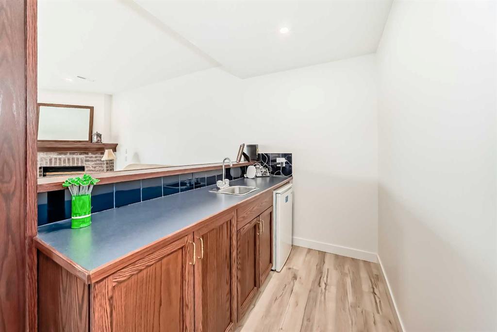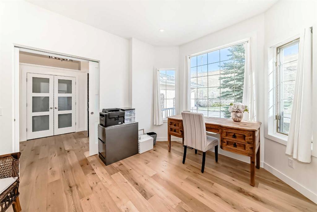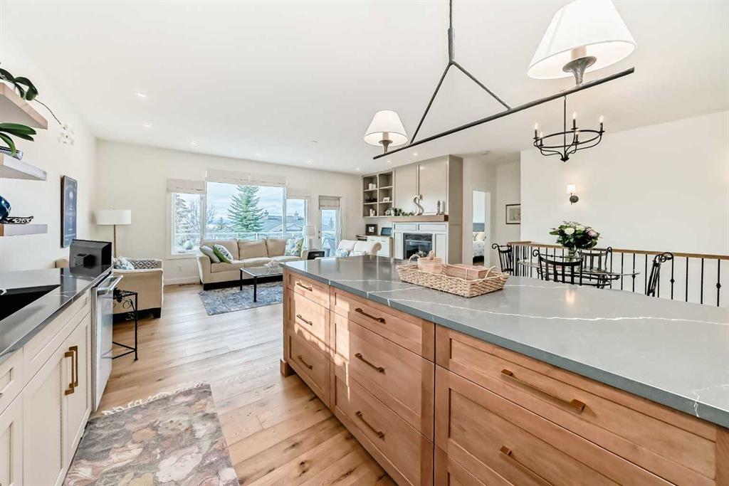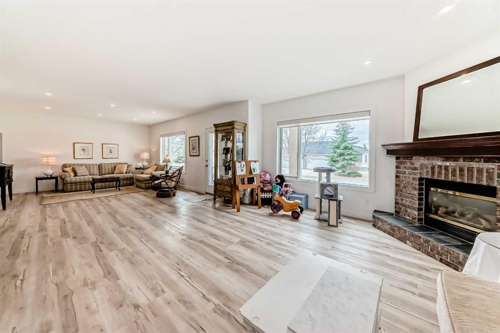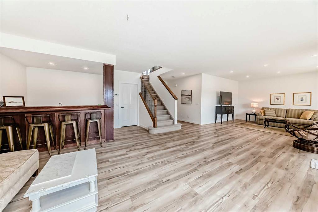 Welcome to this thoughtfully designed half duplex in the sought after community of Glen Eagles. Offering a perfect blend of comfort, style, and location. This spacious home features 3 bedrooms, 3 bathrooms, and a versatile den, with an open concept layout that seamlessly connects the kitchen, dining, and living areas. Soaring 9 foot ceilings and an abundance of windows fill the home with natural light while showcasing stunning mountain views. The main living area is warm and inviting with hardwood flooring and a cozy gas fireplace, creating the ideal space for both relaxing and entertaining. The primary bedroom is a true retreat, complete with a walk in closet and a luxurious 5 piece ensuite. The fully finished basement offers exceptional additional living space with in floor heating and a second fireplace. Completing the space is a wet bar, full 4 piece bathroom and two additional bedrooms, making it ideal for guests or extended family. Outside, enjoy a spacious backyard with lush grass and a concrete deck. The heated double garage adds year round convenience and comfort. Situated in a peaceful, scenic neighbourhood known for its quiet atmosphere and proximity to golf, pathways, and easy access to Calgary and the mountains.