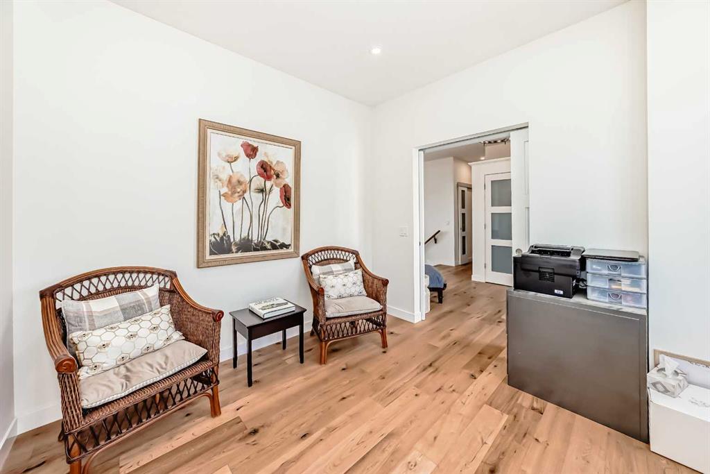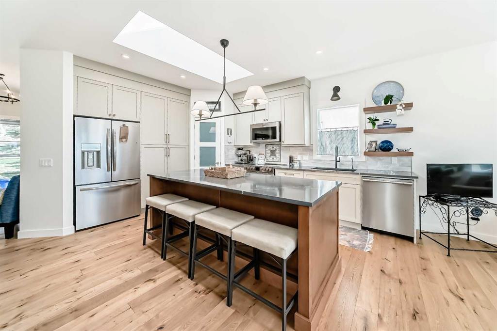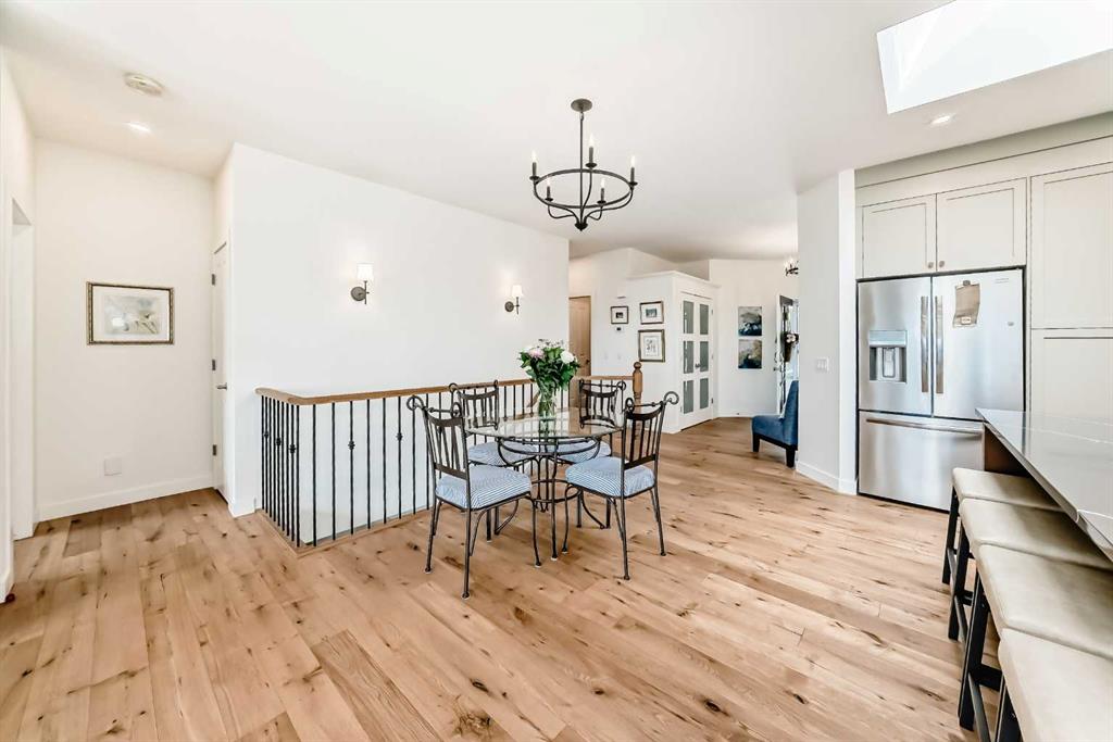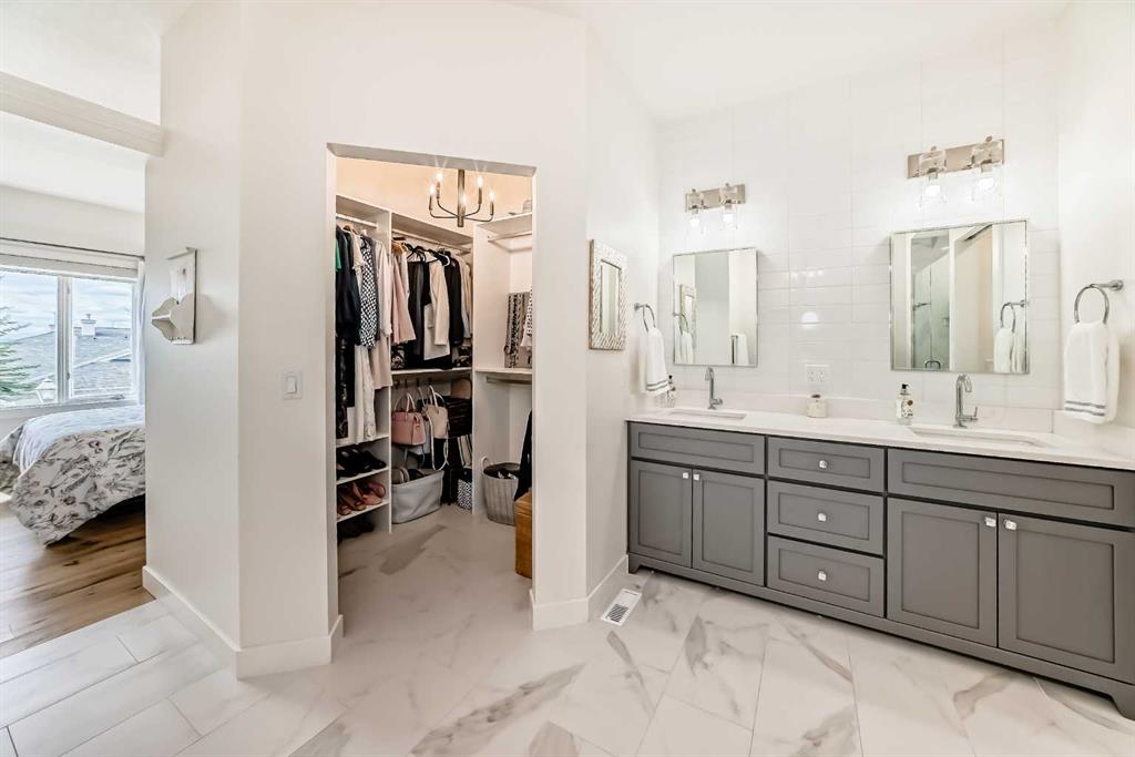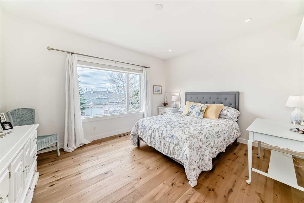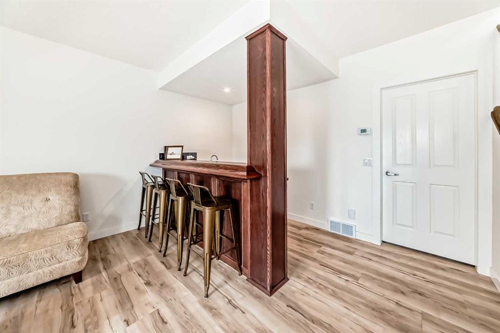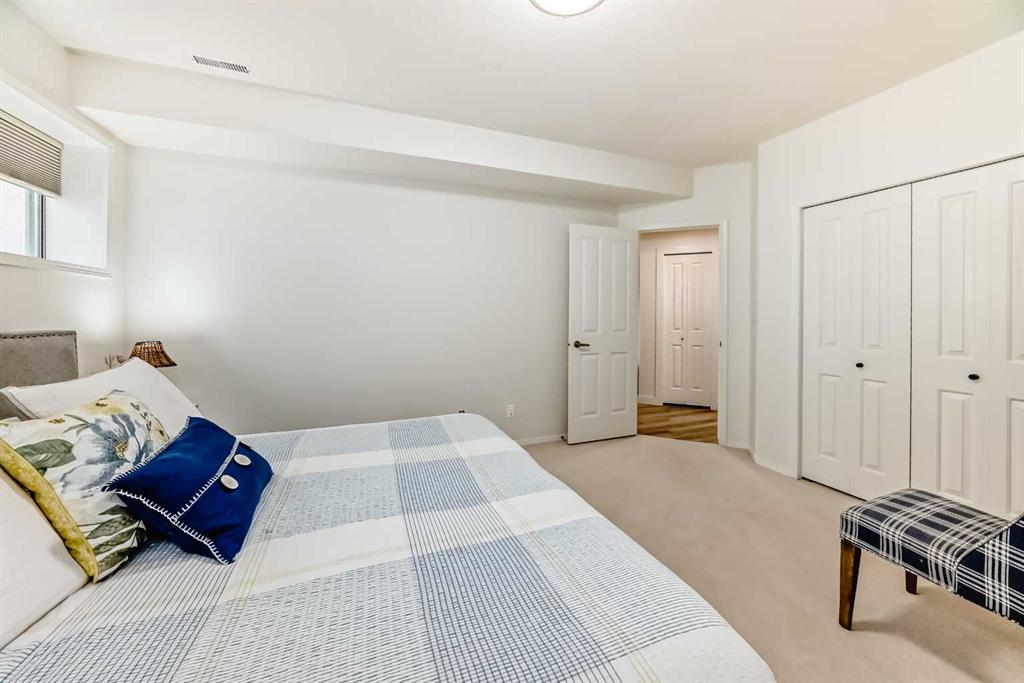 Welcome to this thoughtfully designed half duplex in the sought after community of Glen Eagles. Offering a perfect blend of comfort, style, and location. This spacious home features 3 bedrooms, 3 bathrooms, and a versatile den, with an open concept layout that seamlessly connects the kitchen, dining, and living areas. Soaring 9 foot ceilings and an abundance of windows fill the home with natural light while showcasing stunning mountain views. The main living area is warm and inviting with hardwood flooring and a cozy gas fireplace, creating the ideal space for both relaxing and entertaining. The primary bedroom is a true retreat, complete with a walk in closet and a luxurious 5 piece ensuite. The fully finished basement offers exceptional additional living space with in floor heating and a second fireplace. Completing the space is a wet bar, full 4 piece bathroom and two additional bedrooms, making it ideal for guests or extended family. Outside, enjoy a spacious backyard with lush grass and a concrete deck. The heated double garage adds year round convenience and comfort. Situated in a peaceful, scenic neighbourhood known for its quiet atmosphere and proximity to golf, pathways, and easy access to Calgary and the mountains.