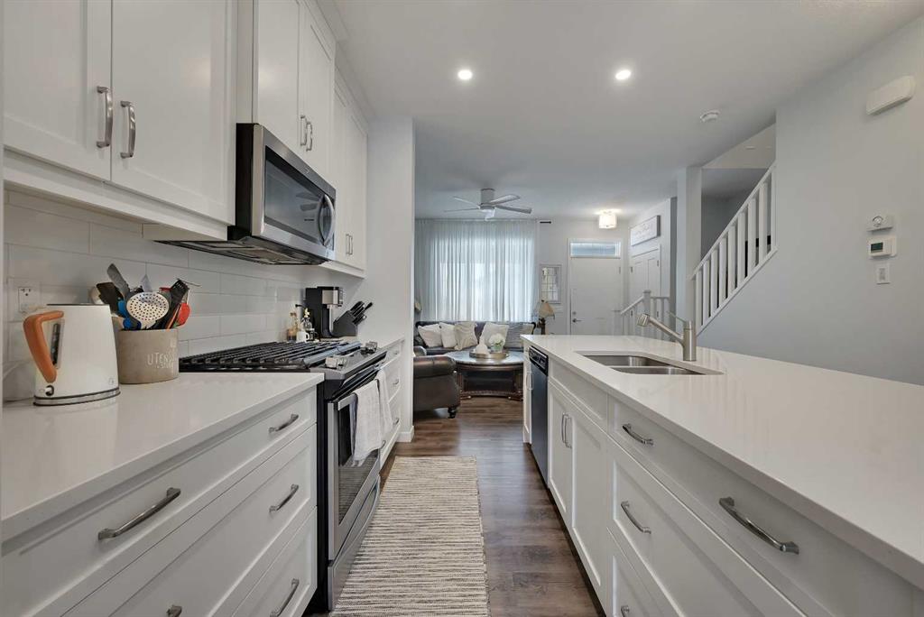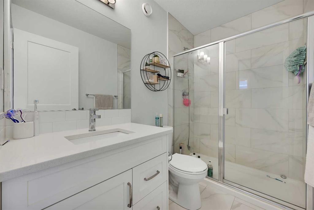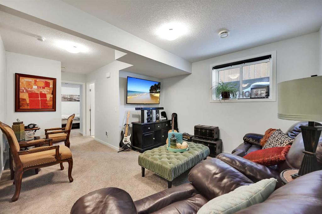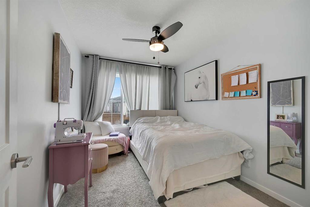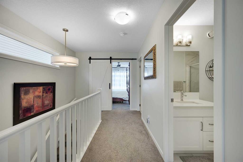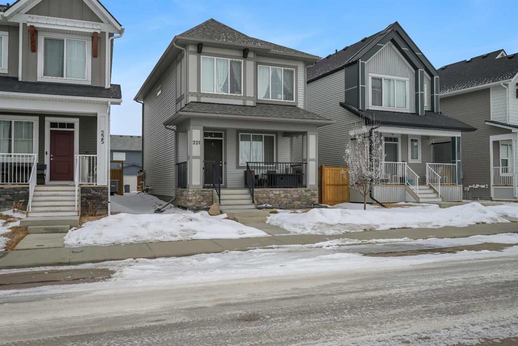 Stunning Fully Upgraded Two-Storey Home in Crossfield — 1,341?sq?ft of Living Space (1,905?sq?ft Total Developed) This beautiful, fully finished two-storey home at 221 Ellen Way combines modern style, thoughtful upgrades, and exceptional curb appeal with a charming front porch, located in the welcoming and growing community of Crossfield. The main and upper levels provide approximately 1,341?sq?ft of living space, with a fully finished lower level bringing the total developed area to about 1,905?sq?ft. Built in 2020, this Dream Built Homes “Noah” model features over $40,000 in upgrades and is designed to impress. Step inside to an airy main floor highlighted by 9-foot ceilings, luxury vinyl plank flooring, and large triple-pane windows that flood the home with natural light. A charming faux fireplace creates a cozy focal point, while the upgraded kitchen is a striking centerpiece, featuring a 9-foot quartz island, floor-to-ceiling shaker-style cabinetry, stainless steel appliances, and a gas range. Soft-close cabinetry and a walk-in pantry provide both style and functionality. The main floor also includes a rear dining area perfect for entertaining and a convenient 2-piece powder room. Upstairs, the spacious primary suite comfortably fits a king-sized bed and includes a walk-in closet and stylish barn door leading to the ensuite with a stand-up shower tiled to the ceiling. Two additional well-sized bedrooms offer beautiful mountain views, complemented by a full 4-piece bathroom and a laundry room for added convenience. The fully finished lower level provides a versatile family or recreation room, an additional bedroom, and a 4-piece bathroom, ideal for guests, extended family, or a home office. Step outside to the back deck, overlooking the nearly finished, brand-new fenced backyard, offering ample room to relax, entertain, or create your dream outdoor space. Residents of Crossfield enjoy exceptional community amenities, including garden boxes, approximately 4 km of walking trails, 5 acres of protected wetlands, and over 20 acres of green space. Outdoor enthusiasts will appreciate the hockey rink, skateboard park, sports fields, stocked fishing pond, splash park, playgrounds, and picnic areas with fire pits. This home presents an exceptional opportunity to own a move-in-ready, fully upgraded home in a thriving, family-friendly community. Thoughtful design, quality finishes, and flexible living space throughout make it perfect for modern family living, entertaining, or a home office.