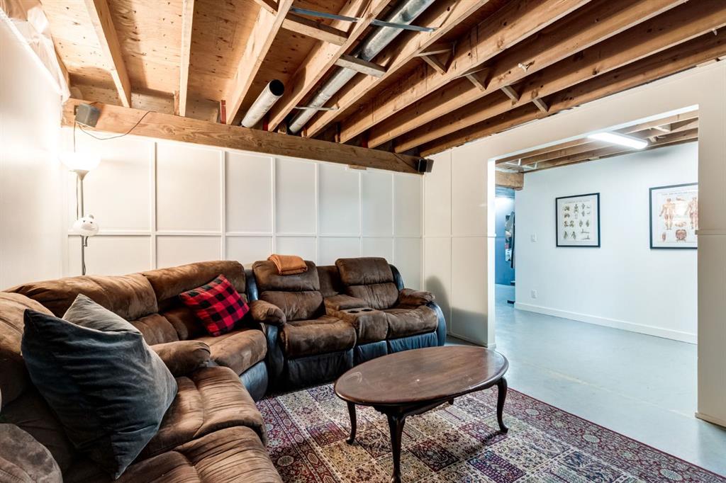 Perched on a sprawling pie-shaped lot on a peaceful cul-de-sac this expansive bungalow showcases an unbeatable location, over 2.500sqft of space, soaring vaulted ceilings, and easy walkability to Morgans Park, soccer fields, and Didsbury schools. This home has been meticulously maintained and updated over the years included a newer driveway, furnace, windows, deck, and more that allows you to not worry about replacing big ticket items. As you enter the home through your spacious entryway with room for bench seating and a walk-in closet, you will be greeted by soaring vaulted ceilings with wood paneling - a rare and elegant feature not often found in Didsbury. The main floor showcases a large open concept living space with high ceilings and is flooded with natural light through large south facing windows. The spacious dining room provides ample space for large gatherings with family and friends and is located adjacent your large kitchen that boasts beautiful, solid wood shaker cabinetry, a gas stove, stainless steel appliances, and tons of counter space and storage. The primary bedroom is large enough to fit king-sized furniture and features two closets – the walk-in closet is plumbed in for a 2-piece ensuite bathroom, which could be easily installed. The second spacious bedroom has a large, bright window, and tons of space for furniture and a desk. The third main floor bedroom provides direct access to the back deck through patio doors and could be the perfect place for a home office. Upstairs is completed with a sizable 4-piece bathrooms with beautiful tile. Downstairs is accessible through a separate side entryway that provides easy access to your oversized 24ftx24ft garage. The basement has been beautifully renovated and boasts a sprawling fourth bedroom with a stunning 4-piece ensuite bathroom, tons of storage, and a large walk-in-closet. The basement also features a large media room, gym/flex space, and a large storage and laundry area. Don’t worry about parking with your large, newer concrete driveway that makes the perfect place to store vehicles/RVs, and provides an amazing sport court for street hockey, basketball, and more. The expansive backyard features a newer deck, beautiful landscaping, and tons of room to play and enjoy the warm summer days. Don’t miss out on this opportunity to own an incredible home on one of the quietest cul-de-sacs in town with easy access to walking paths, golf, parks and school.