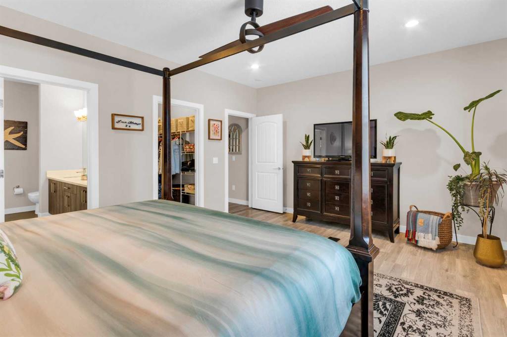 MODERN LUXURY meets SMALL TOWN SERENITY in this show-stopping, fully finished Bungalow with the ultimate TRIPLE ATTACHED DREAM GARAGE & expansive backyard! A massive driveway and covered Front Porch set the tone before stepping inside to a thoughtfully designed entry. The front Foyer flows into an organized walk-in closet for coats, and Mudroom, where there’s a second oversized closet with shelving tucked discreetly behind French doors —keeping everyday life beautifully organized & out of sight. A bright front Office with a large window offers the perfect work-from-home space. The heart of the home is a magazine-worthy Kitchen! Showcasing full-height custom cabinetry that extends seamlessly to the ceiling, a timeless tile backsplash, elegant stone countertops, rich contrasting eat-up island with a sink that creates the ideal gathering space, complemented by SS appliances including an electric range (gas line in place), AND a spacious corner Pantry. Ok, SOLD?! But there’s so much more… The Dining area connects effortlessly to the inviting Living Room, where a striking gas fireplace with floor-to-ceiling stonework and custom built-in cubbies, shelves & mantle create a warm and sophisticated focal point. Step outside through the large sliding doors to a spectacular two-tiered, partially covered deck with gas line for BBQ, privacy feature wall, and sweeping views of the huge, fully landscaped & fenced backyard. Mature trees, a storage shed, and a spacious side yard perfect for a dog run complete this outdoor retreat. The Primary Suite is generously sized and beautifully finished, with a luxurious 5-pc Ensuite with dual sinks, tiled floors, a JETTED SOAKER TUB beneath the window, an O/S walk-in shower, and a big walk-in closet with built-in organization. Finishing-off the main floor is a 2nd spacious Bedroom, a 4-pc Bathroom with stone counters & vanity storage, and a Laundry Room with tile flooring & French doors. The FULLY FINISHED BASEMENT continues the home’s elevated feel with LVP floors, tall ceilings, and recessed lighting. A cozy corner gas fireplace with full-height stone surround anchors the space, while TWO BIG bedrooms—both with WALK-IN closets—offer incredible flexibility! A wide hallway includes 220 wiring for the current corner SAUNA, leading to an elegant 3-pc Bath with an O/S tiled walk-in shower and modern vanity. This Basement has a GREAT layout, completed by a large storage area and utility room. Located in the welcoming community of Didsbury, on a GREAT Street, this home offers the perfect balance of small-town charm and everyday convenience—with excellent schools, parks, walking paths, and quick access for commuters. With its thoughtful layout, high-end finishes, incredible outdoor space, and standout triple Garage (that accommodates a half-ton truck no problem), this home is truly the complete package. Your dream bungalow awaits… Book your private viewing today!