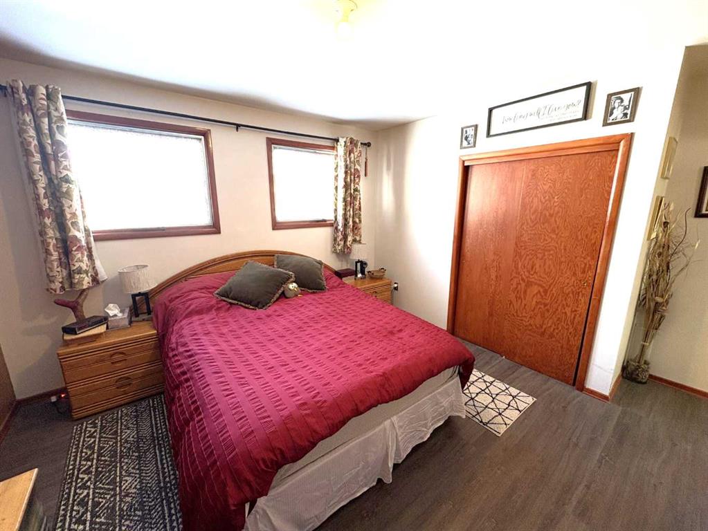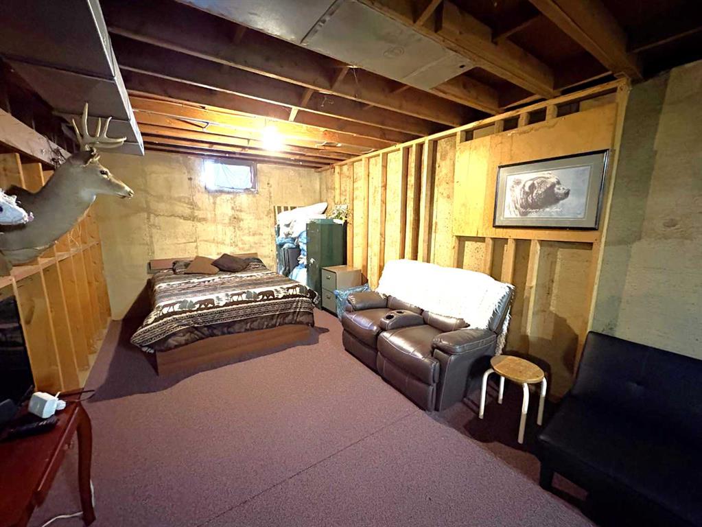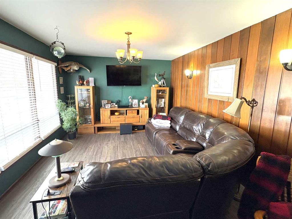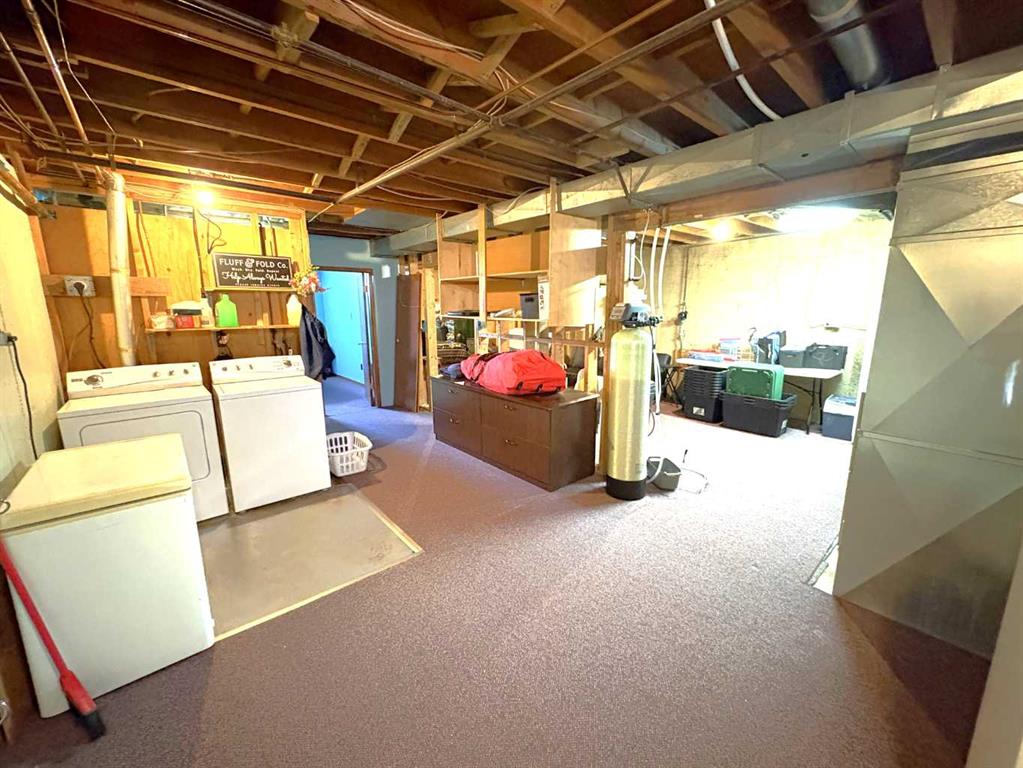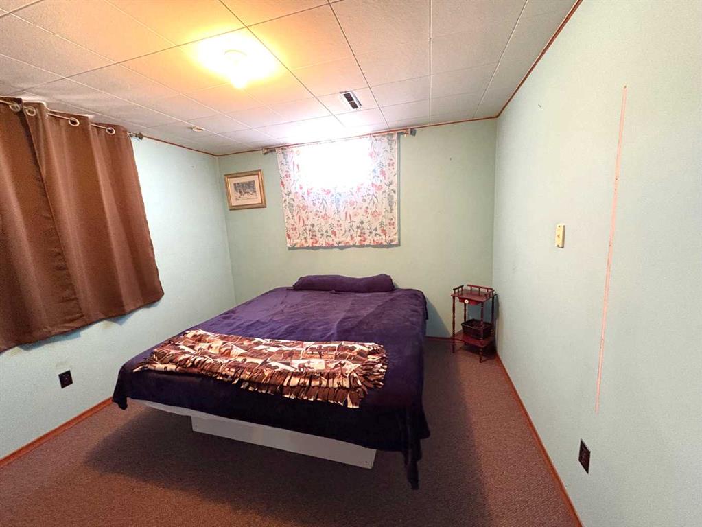 TAKE A LOOK AT THIS AFFORDABLE FAMILY HOME. 1002 SQFT. BUNGALOW, THE MAIN FLOOR FEATURES A BRIGHT LIVING ROOM WITH LARGE PICTURE WINDOW TO LET IN ALL THE SUNLIGHT. THE SPACIOUS KITCHEN HAS ROOM FOR AN ISLAND OR COFFEE BAR, NICE EATING AREA, 2 GOOD SIZE BEDROOMS. 4PC BATH WITH NEW RENOS. LARGE BACK ENTRY HAS UTILITY SINK AND PLENTY OF ROOM FOR COATS AND BOOTS. THE PARTIAL FINISHED BASEMENT HAS MANY POSSIBILITIES FOR YOUR PERSONAL TOUCH AND NEW CARPET JUST INSTALLED. LARGE FAMILY ROOM, 1 MORE BEDROOM, 2PC BATH, ONE MORE LARGE ROOM. SPACIOUS LAUNDRY AREA WITH MORE THAN ENOUGH STORAGE SPACE. THERE IS A POSSIBILITY FOR A SECOND BASEMENT BEDROOM. OUTSIDE YOU WILL FIND A NEW DECK TO ENJOY YOUR MORNING COFFEE. FENCED SIDE YARD. NOW LETS TALK ABOUT THAT DREAM TRIPLE GARAGE. 28'X49,' HEATED, 220 V. TWO REGULAR OVERHEAD DOORS AND ONE OVER SIZED DOOR WITH A 2 POST 9000lb. HOIST AND VAULTED CEILING. PERFECT FOR WORKING ON YOUR VEHICLE OR STACKING TWO FOR ADDITIONAL INSIDE PARKING. MORE THAN ENOUGH ROOM TO PARK AND STORE ALL YOUR TOYS WITH THE ADDED BONUS OF A HUGE DRIVEWAY. THERE IS ALSO EXTRA SPACE FOR RV PARKING WITH SIDE AND BACK LANE ACCESS. ALL OF THIS IS WAITING FOR YOU IN THE FRIENDLY COMMUNITY OF FORESTBURG, K-12 SCHOOL, ARENA, POOL, GOLF COURSE AND GREAT RESTAURANTS AND STORES
