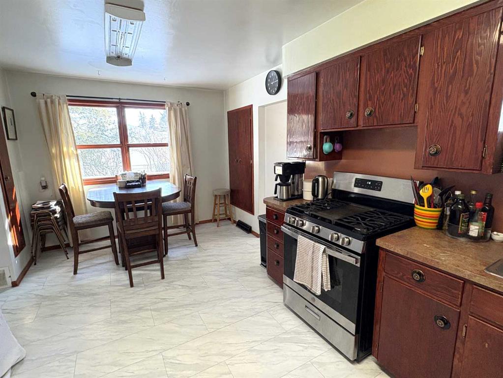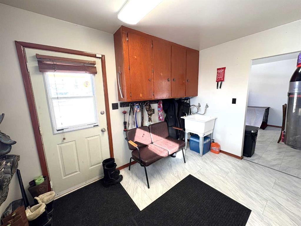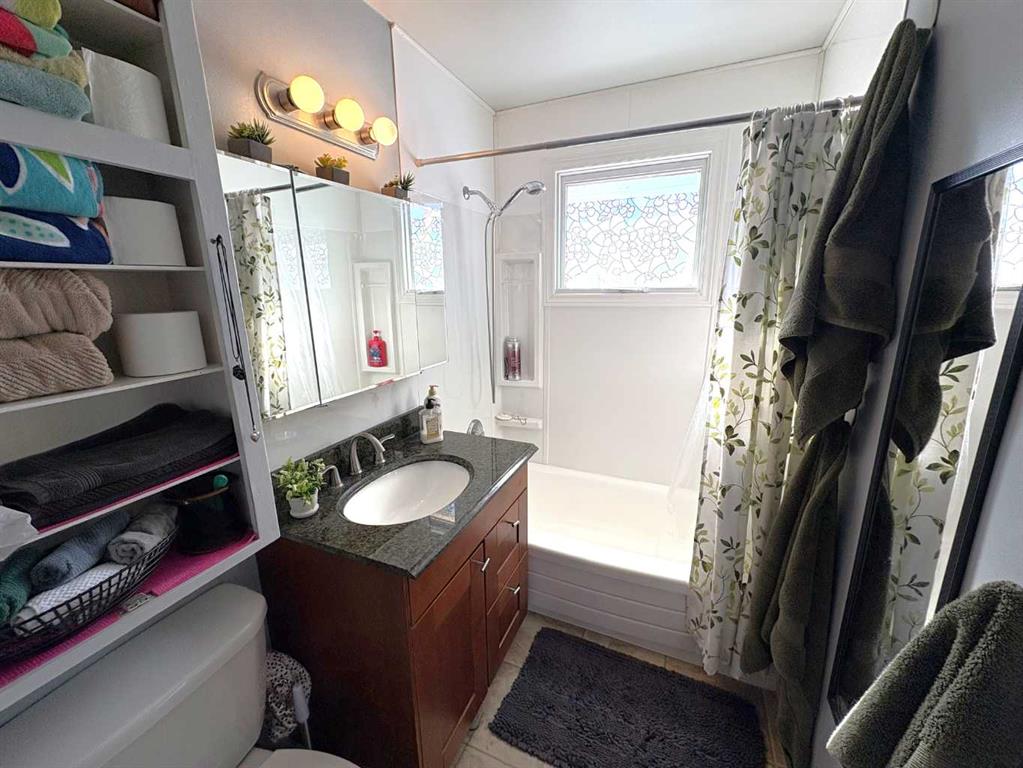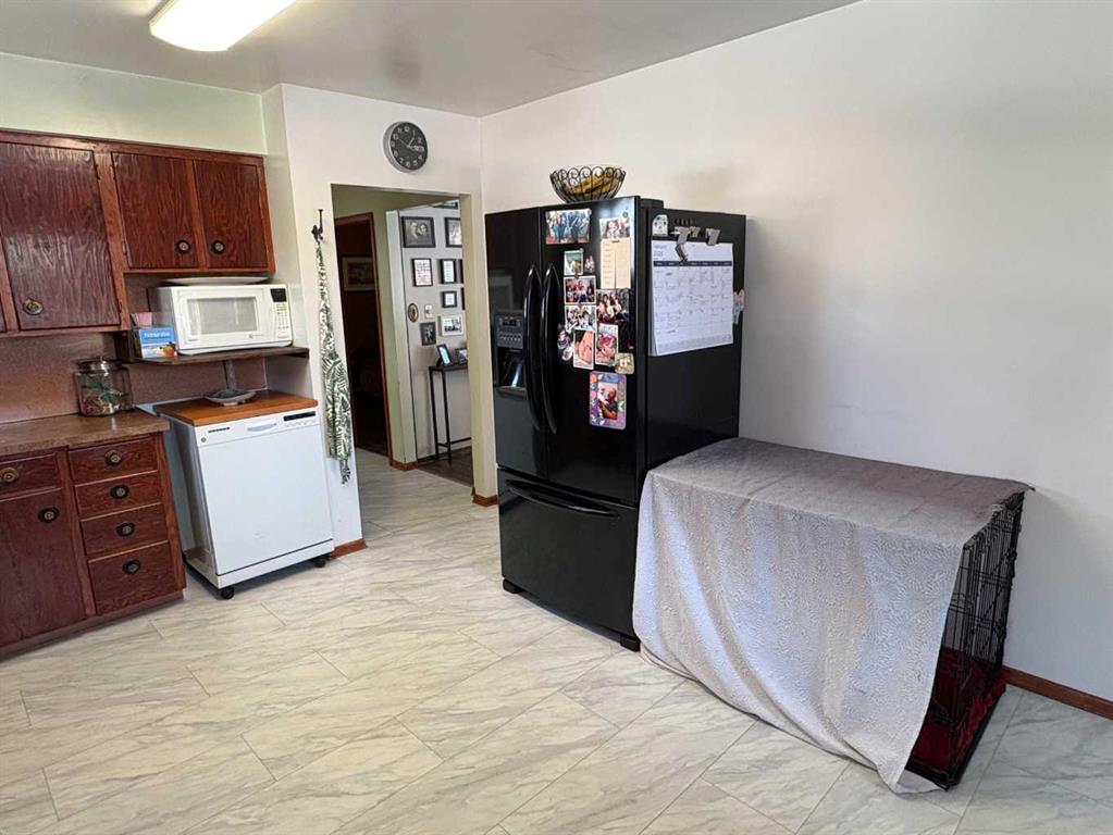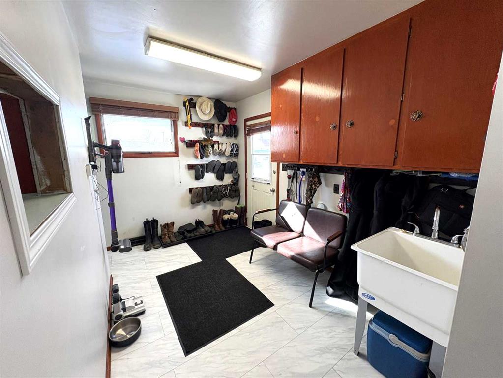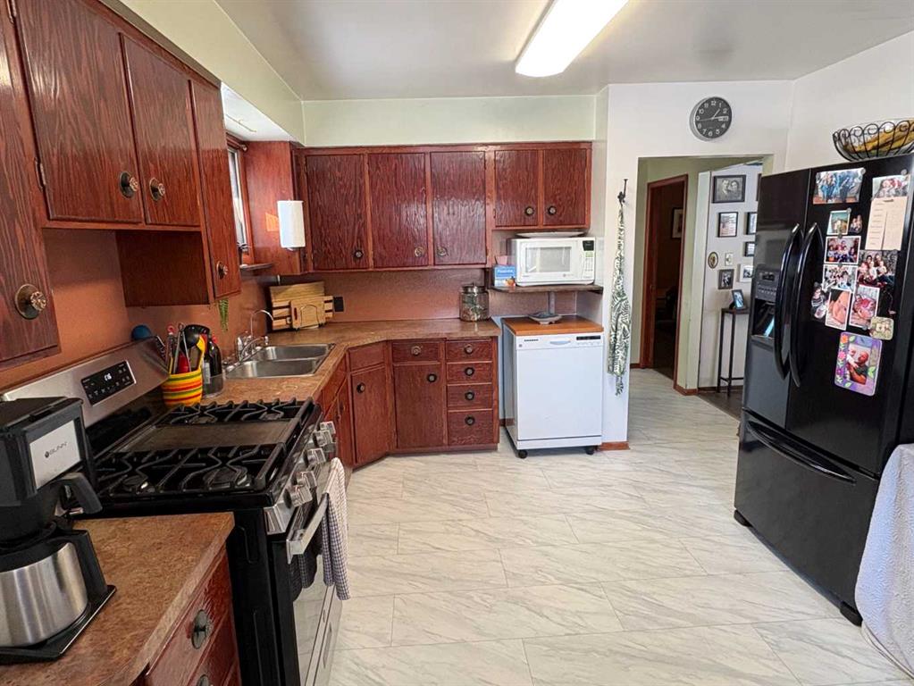 TAKE A LOOK AT THIS AFFORDABLE FAMILY HOME. 1002 SQFT. BUNGALOW, THE MAIN FLOOR FEATURES A BRIGHT LIVING ROOM WITH LARGE PICTURE WINDOW TO LET IN ALL THE SUNLIGHT. THE SPACIOUS KITCHEN HAS ROOM FOR AN ISLAND OR COFFEE BAR, NICE EATING AREA, 2 GOOD SIZE BEDROOMS. 4PC BATH WITH NEW RENOS. LARGE BACK ENTRY HAS UTILITY SINK AND PLENTY OF ROOM FOR COATS AND BOOTS. THE PARTIAL FINISHED BASEMENT HAS MANY POSSIBILITIES FOR YOUR PERSONAL TOUCH AND NEW CARPET JUST INSTALLED. LARGE FAMILY ROOM, 1 MORE BEDROOM, 2PC BATH, ONE MORE LARGE ROOM. SPACIOUS LAUNDRY AREA WITH MORE THAN ENOUGH STORAGE SPACE. THERE IS A POSSIBILITY FOR A SECOND BASEMENT BEDROOM. OUTSIDE YOU WILL FIND A NEW DECK TO ENJOY YOUR MORNING COFFEE. FENCED SIDE YARD. NOW LETS TALK ABOUT THAT DREAM TRIPLE GARAGE. 28'X49,' HEATED, 220 V. TWO REGULAR OVERHEAD DOORS AND ONE OVER SIZED DOOR WITH A 2 POST 9000lb. HOIST AND VAULTED CEILING. PERFECT FOR WORKING ON YOUR VEHICLE OR STACKING TWO FOR ADDITIONAL INSIDE PARKING. MORE THAN ENOUGH ROOM TO PARK AND STORE ALL YOUR TOYS WITH THE ADDED BONUS OF A HUGE DRIVEWAY. THERE IS ALSO EXTRA SPACE FOR RV PARKING WITH SIDE AND BACK LANE ACCESS. ALL OF THIS IS WAITING FOR YOU IN THE FRIENDLY COMMUNITY OF FORESTBURG, K-12 SCHOOL, ARENA, POOL, GOLF COURSE AND GREAT RESTAURANTS AND STORES