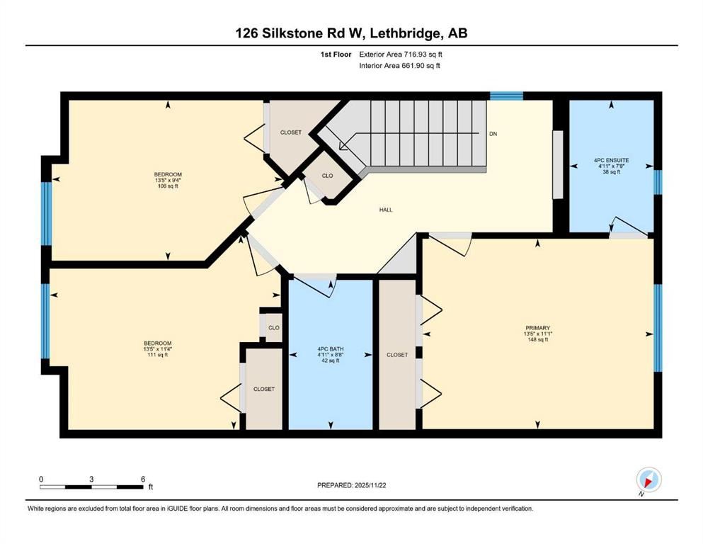 | Bedroom - Primary | 13`5" x 11`1" | Upper |