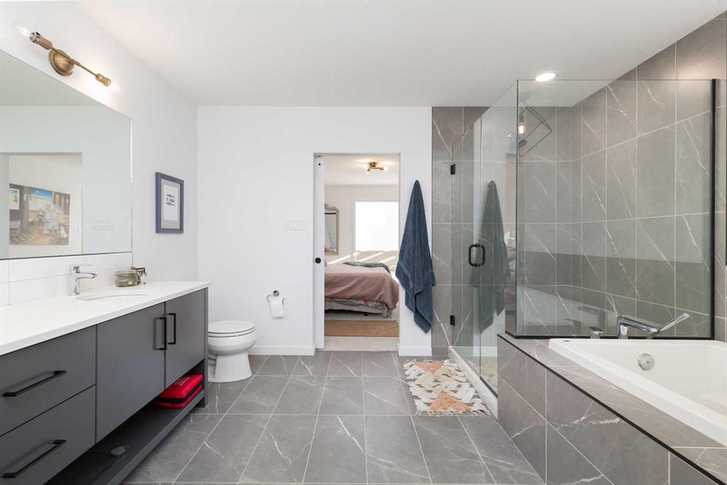 Modern family home ideally located across from a park with lake and walking paths in desirable Country Meadows. Enjoy two front-facing decks with maintenance free composite decking, perfect for watching the kids play. Rear attached garage enhances curb appeal, complemented by a stylish metal iron front fence. The main floor features a functional mudroom and walk through pantry leading into an open concept kitchen, dining, and living space. The living room showcases a modern electric fireplace with tiled feature surround. Also tucked away on the main floor is a large built-in two-person desk, ideal for homework or working from home. The upper level offers three bedrooms, a laundry room, and a spacious bonus room with access to the upper deck. The large primary retreat includes a walk-in closet and an expansive ensuite with tiled walk-in shower and soaker tub, along with private access to the upper deck. The undeveloped basement provides excellent potential for future development. A well designed, contemporary home in a family friendly community close to parks and pathways.