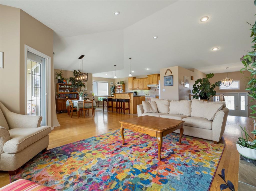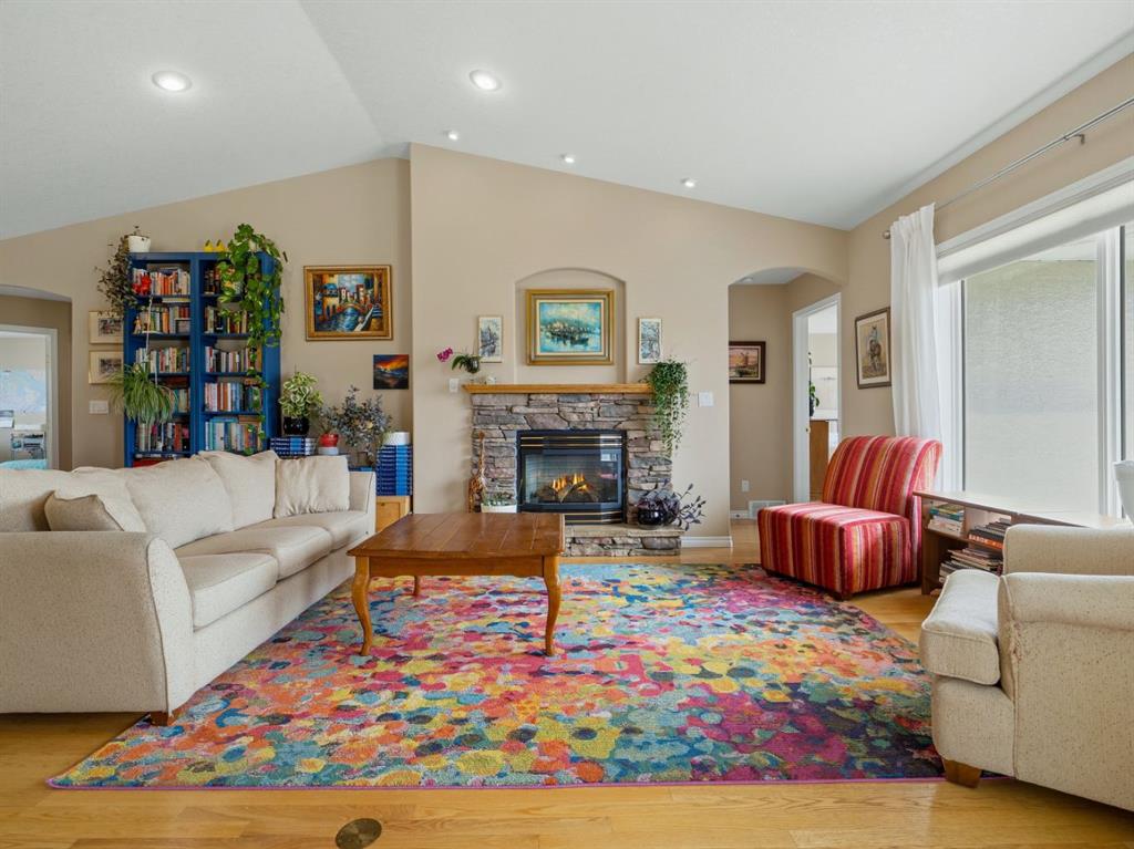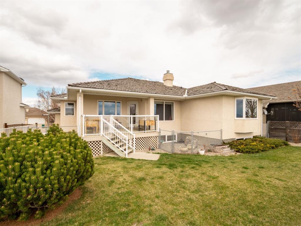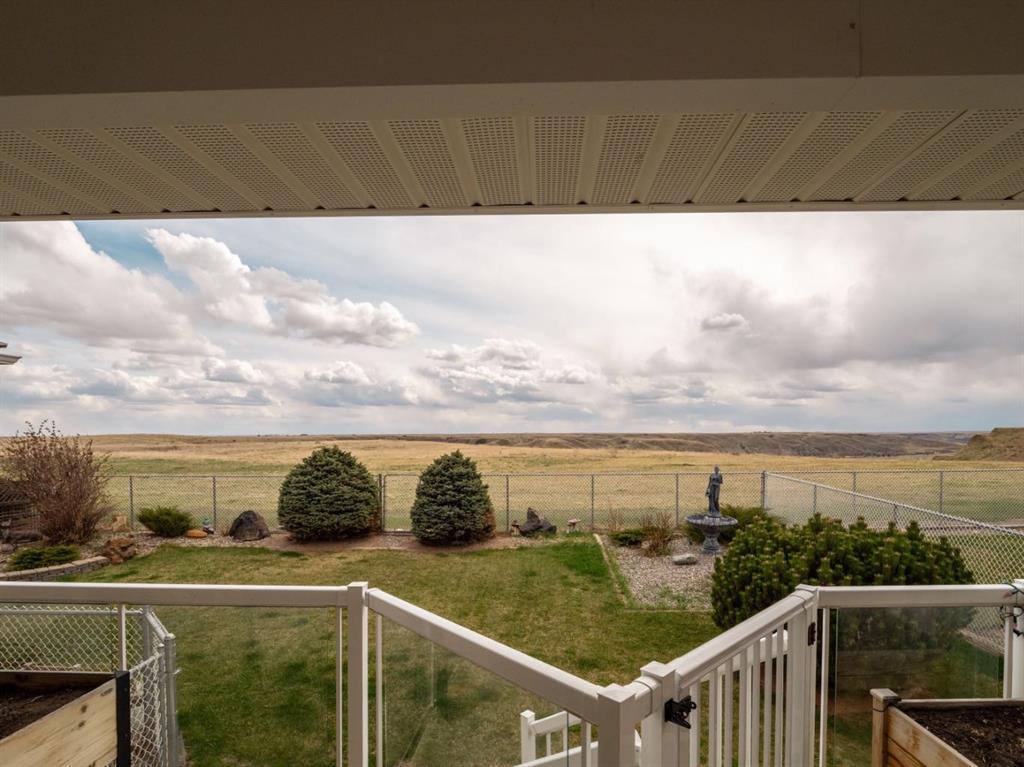 Set against a backdrop of breathtaking coulee and mountain views, this beautifully appointed Canyon Blvd home blends sophistication with comfort, offering a peaceful retreat in one of Lethbridge’s most desirable settings. Welcome to 44 Canyon Blvd—where stunning views take center stage. Enjoy these spectacular coulee and mountain vistas from nearly every rear-facing window or while relaxing on the covered deck—an incredible setting for both quiet moments and entertaining. This thoughtfully designed 1,610 sq. ft. bi-level offers the feel of a bungalow, featuring a bright, open-concept main floor with hardwood floors and large picture windows that perfectly frame the views. The spacious kitchen, dining, and living area is ideal for both everyday living and entertaining. The kitchen is both stylish and functional, highlighted by a large island with breakfast bar seating—perfect for gathering. The living room showcases a cozy gas fireplace and soaring vaulted ceilings, enhancing the sense of space and light. The main level includes a generous second bedroom or office, a convenient 2-piece bath, and a beautifully designed primary retreat with views, a walk-through ensuite, expansive walk-in closet, and direct access to the main floor laundry—an ideal blend of luxury and practicality. Downstairs, the fully developed lower level offers a large family room with a second gas fireplace, creating a warm and inviting atmosphere. A dedicated theatre room—complete with screen and projector—adds an elevated entertainment experience. Two additional spacious bedrooms, a 4-piece bath, and a well-appointed utility room with excellent storage complete the space. The oversized heated garage features built-in cabinetry and a man door, while additional highlights include underground sprinklers, central A/C, all appliances included, and a landscaped yard with 2 dog runs. Ideally located near parks, scenic walking trails, ponds, and Paradise Canyon Golf Course, this home offers a refined lifestyle surrounded by natural beauty.