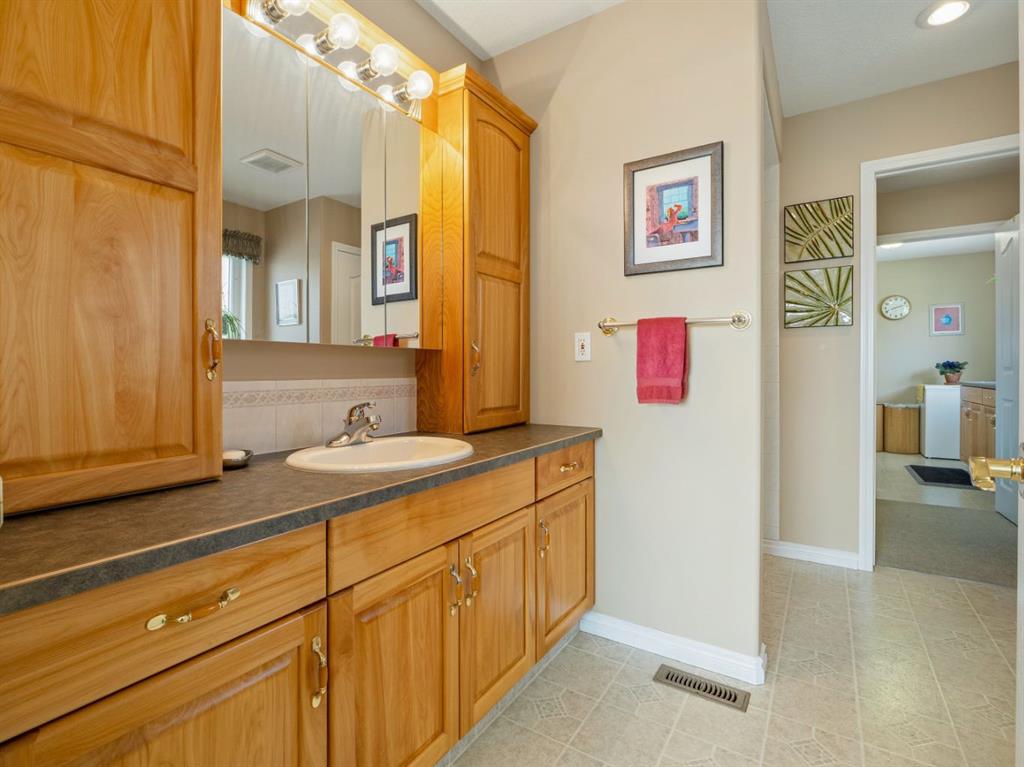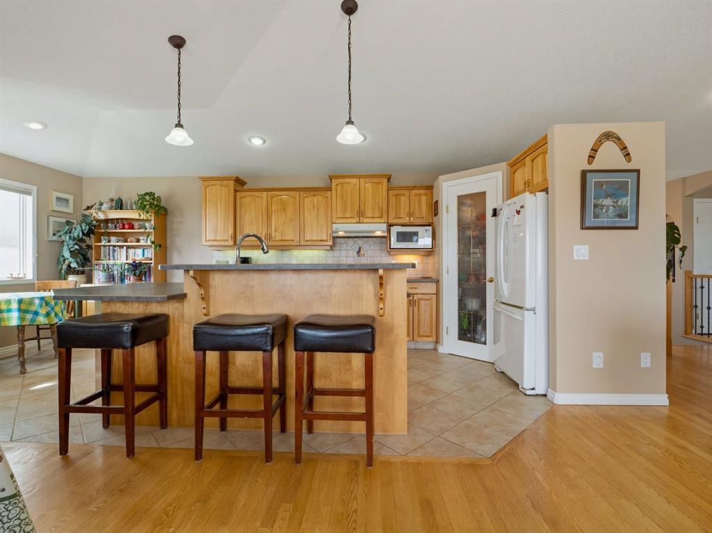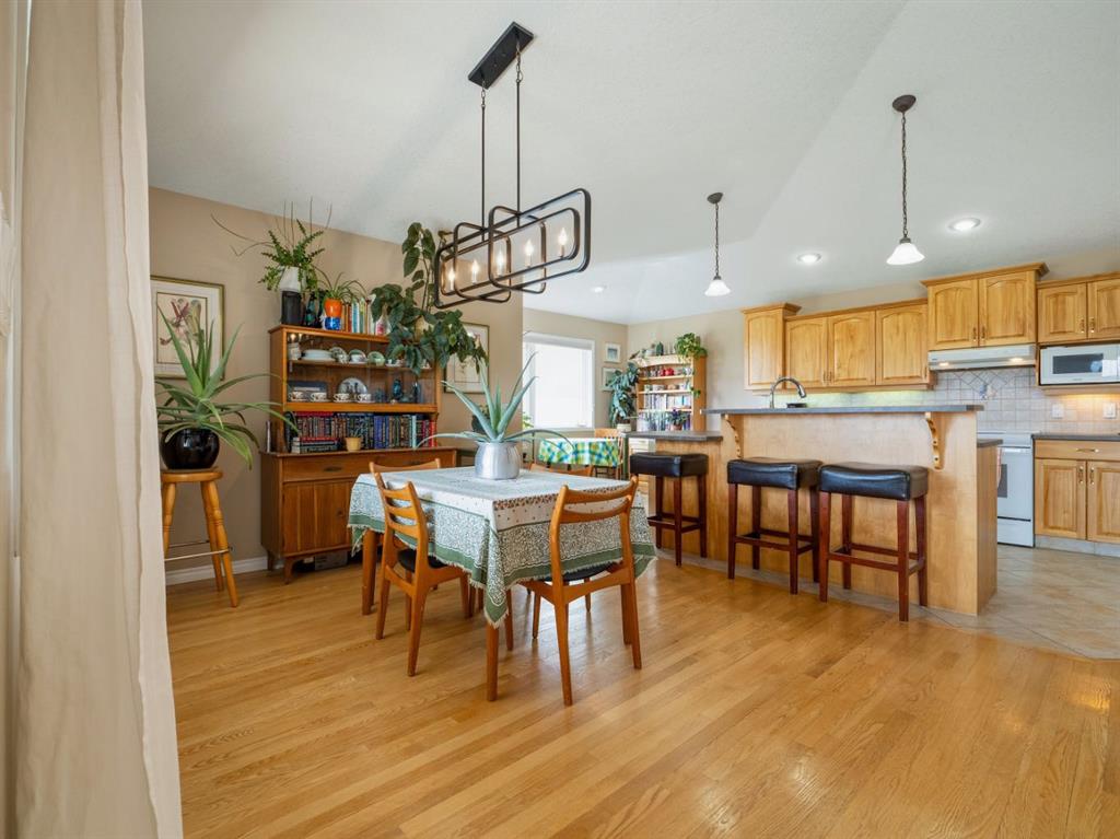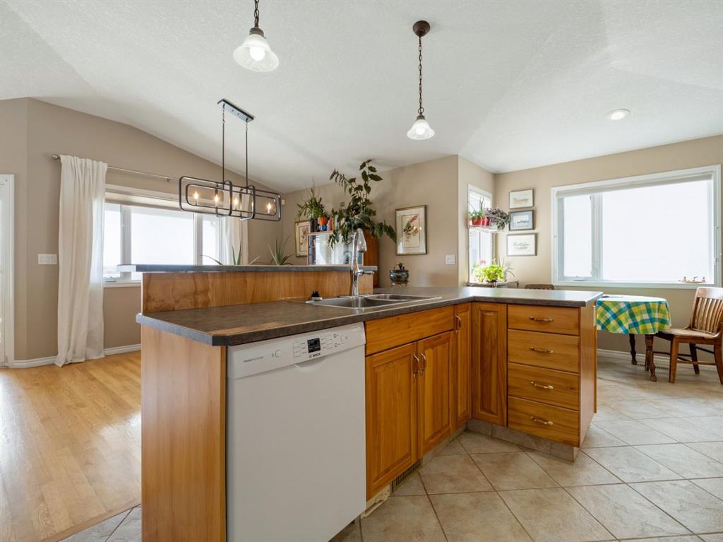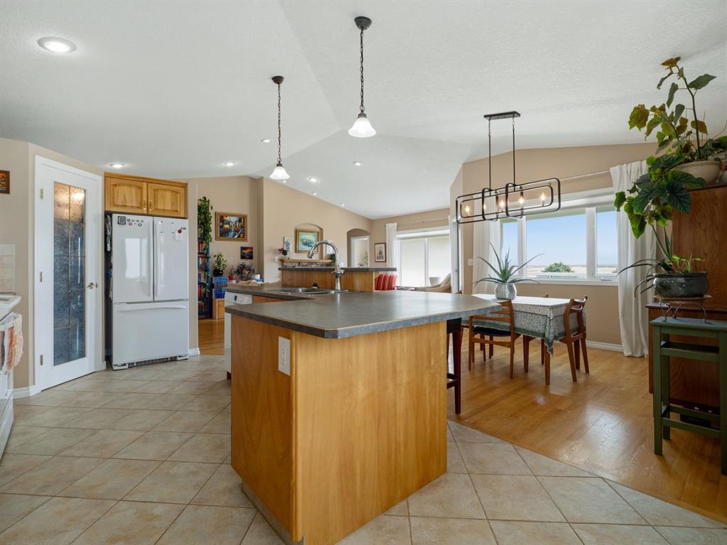 Set against a backdrop of breathtaking coulee and mountain views, this beautifully appointed Canyon Blvd home blends sophistication with comfort, offering a peaceful retreat in one of Lethbridge’s most desirable settings. Welcome to 44 Canyon Blvd—where stunning views take center stage. Enjoy these spectacular coulee and mountain vistas from nearly every rear-facing window or while relaxing on the covered deck—an incredible setting for both quiet moments and entertaining. This thoughtfully designed 1,610 sq. ft. bi-level offers the feel of a bungalow, featuring a bright, open-concept main floor with hardwood floors and large picture windows that perfectly frame the views. The spacious kitchen, dining, and living area is ideal for both everyday living and entertaining. The kitchen is both stylish and functional, highlighted by a large island with breakfast bar seating—perfect for gathering. The living room showcases a cozy gas fireplace and soaring vaulted ceilings, enhancing the sense of space and light. The main level includes a generous second bedroom or office, a convenient 2-piece bath, and a beautifully designed primary retreat with views, a walk-through ensuite, expansive walk-in closet, and direct access to the main floor laundry—an ideal blend of luxury and practicality. Downstairs, the fully developed lower level offers a large family room with a second gas fireplace, creating a warm and inviting atmosphere. A dedicated theatre room—complete with screen and projector—adds an elevated entertainment experience. Two additional spacious bedrooms, a 4-piece bath, and a well-appointed utility room with excellent storage complete the space. The oversized heated garage features built-in cabinetry and a man door, while additional highlights include underground sprinklers, central A/C, all appliances included, and a landscaped yard with 2 dog runs. Ideally located near parks, scenic walking trails, ponds, and Paradise Canyon Golf Course, this home offers a refined lifestyle surrounded by natural beauty.