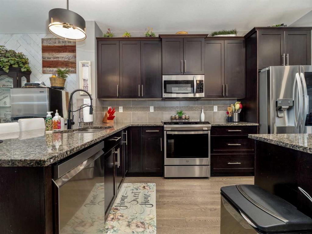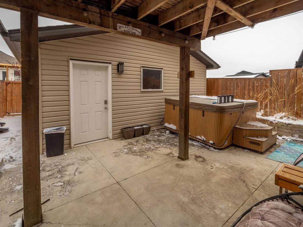 Nice two storey home in Copperwood with double detached garage and walk-out basement. Welcoming enclosed front yard, porch with room for seating, and front entry with closet. Main floor features open plan with 9 foot ceilings and laminate floors. Living room has large windows for plenty of light and has a painted barn wood feature wall. Kitchen is a good size with granite counters, island, prep bar area, plenty of cupboards, and a pantry. Dining room is also a good size with door to deck out back. There is also a 2 piece bathroom on this level and a rear closet that is currently being used as a second pantry. Upper level houses 3 bedrooms including primary bedroom with vaulted ceiling, large walk-in closet, and 3 piece ensuite featuring full length walk-in shower. There is also another full bathroom on this level and a laundry closet. The 2nd and 3rd bedrooms have built-in bookshelves and hinged closet doors. Walk-Out basement is undeveloped and awaits your finishes. There is a bathroom that is roughed in. Backyard is fenced and has a covered patio under the deck where the basement entry is. Rear double garage for your vehicles. Copperwood features great parks, playgrounds, walking paths, an elementary school, shopping amenities, restaurants, and is adjacent to one of the largest YMCA's in Western Canada with gym, pool, lazy river, surf spot, waterslide, and running track. There are also twin ice arenas and 10 curling sheets at the Cavendish Farms Centre right beside the YMCA. Two high schools are also close by! Move in and enjoy a great life in West Lethbridge!