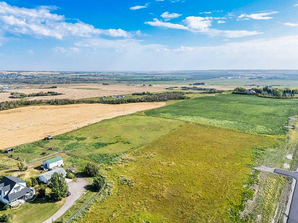 Incredible opportunity to build your dream home you’ve always imagined on 4.59 acres of elevated land with sweeping views of the Rocky Mountains by day and the town lights of Okotoks by night. Located just minutes south of town, this property sits in a quiet estate community on a dead-end road, creating a peaceful setting with minimal traffic and exceptional privacy. The community features a 7.72-acre municipal reserve, preserving open land nearby and enhancing the natural surroundings. The lot’s natural elevation creates one of the best vantage points in the area, offering panoramic views that remain protected from surrounding development. Whether enjoying morning coffee with mountain views or watching the lights of town in the evening, the scenery here is truly remarkable. This parcel is ready for your custom build, with a well already drilled and utilities available at the lot line. Paved access ensures convenient year-round travel while maintaining the quiet lifestyle that acreage living offers. Life here is about space and freedom — room for gardens, outdoor hobbies, and evenings spent with family under wide-open skies. Kids can play freely, dogs have room to roam, and you can design the home and lifestyle you’ve always envisioned. All of this is located just minutes from Okotoks, giving you easy access to schools, shopping, dining, and daily amenities while enjoying the quiet pace of country living.