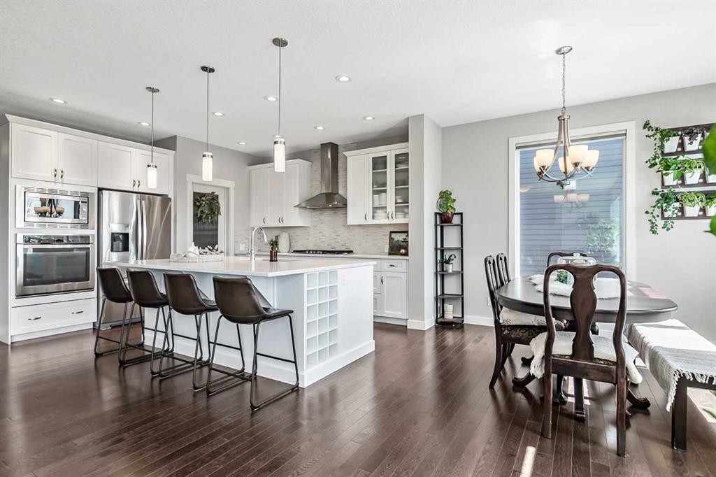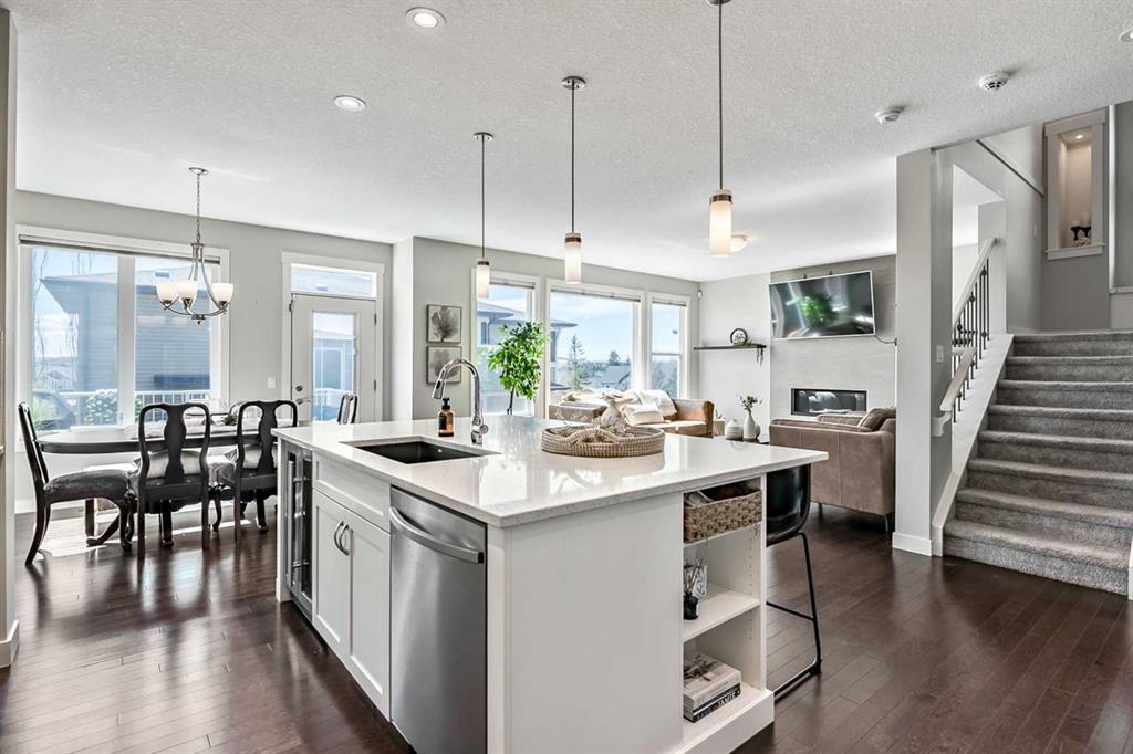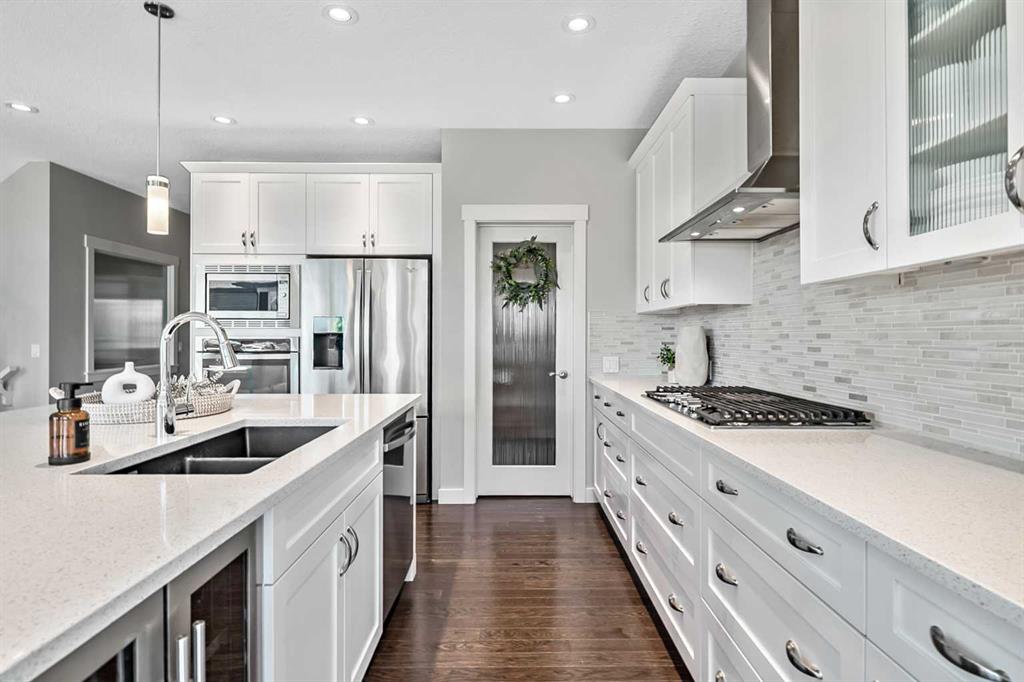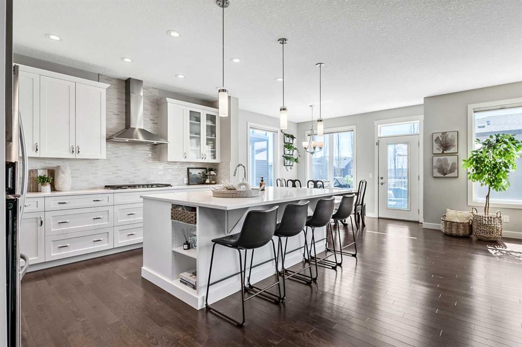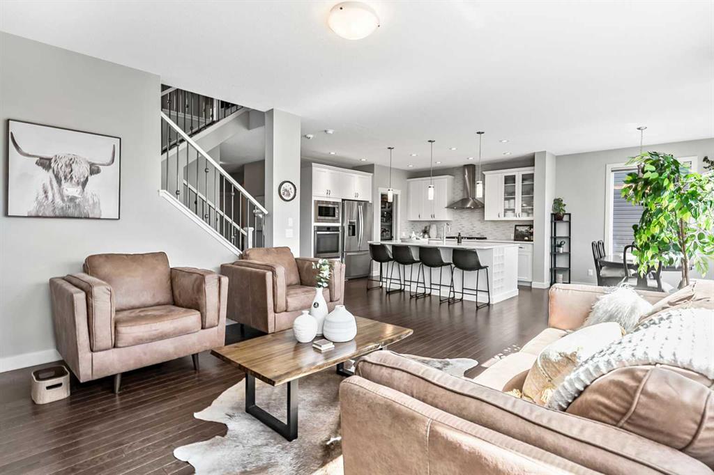 **Open House Sat 2-4** Welcome to 108 Mount Rae Heights—an exceptional fully developed 5-bedroom Sterling-built “Berkshire” home in the sought-after community of Mountainview, just steps to pathways and stunning views of the Rocky Mountains, Sheep River, and nature reserve. Offering nearly 4,000sqft of developed living space, this thoughtfully designed home features a bright, open layout with superb natural light and exquisite finishing throughout. MAIN FLOOR features a spacious entry foyer, private home office, and a showstopping designer kitchen with upgraded cabinetry, stone countertops, gas range, large island, bar fridge, wine storage, modern backsplash, and walkthrough pantry to the mudroom and garage. The open living and dining areas are anchored by a gas fireplace and framed by large southwest-facing windows that flood the space with natural light and capture incredible views. UPPER LEVEL features a vaulted bonus room, laundry room, and four generous bedrooms, including three connected by a Jack & Jill bathroom. The spacious primary retreat with mountain views offers large walk-in closet, and a luxurious ensuite bathroom with soaker tub, walk-in shower, and dual sinks. FULLY DEVELOPED WALKOUT BASEMENT with 9' ceiling height features spacious rec room, fifth bedroom, and full bathroom—perfect for guests or growing families. Did we mention AC, hardwood floors, water softener, newer blinds throughout, plus finished garage with epoxy flooring? Truly, this home has it all! Located on a quiet, family-friendly street close to paths, parks, playgrounds, and quick access to Calgary. Explore the virtual tour to experience it for yourself (click 3D for virtual walkthrough).