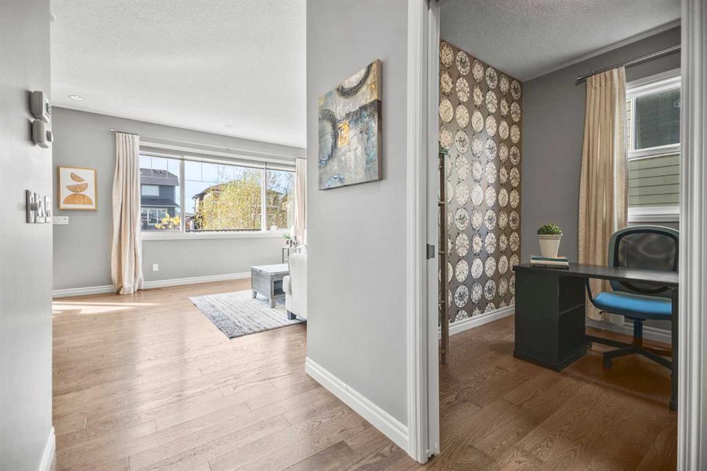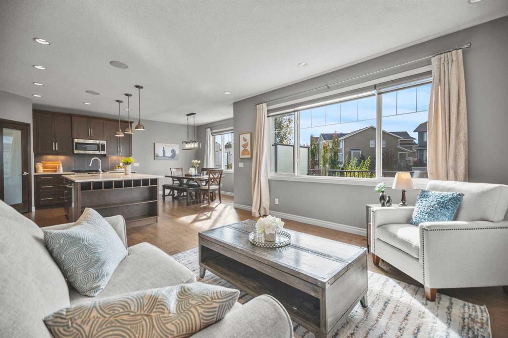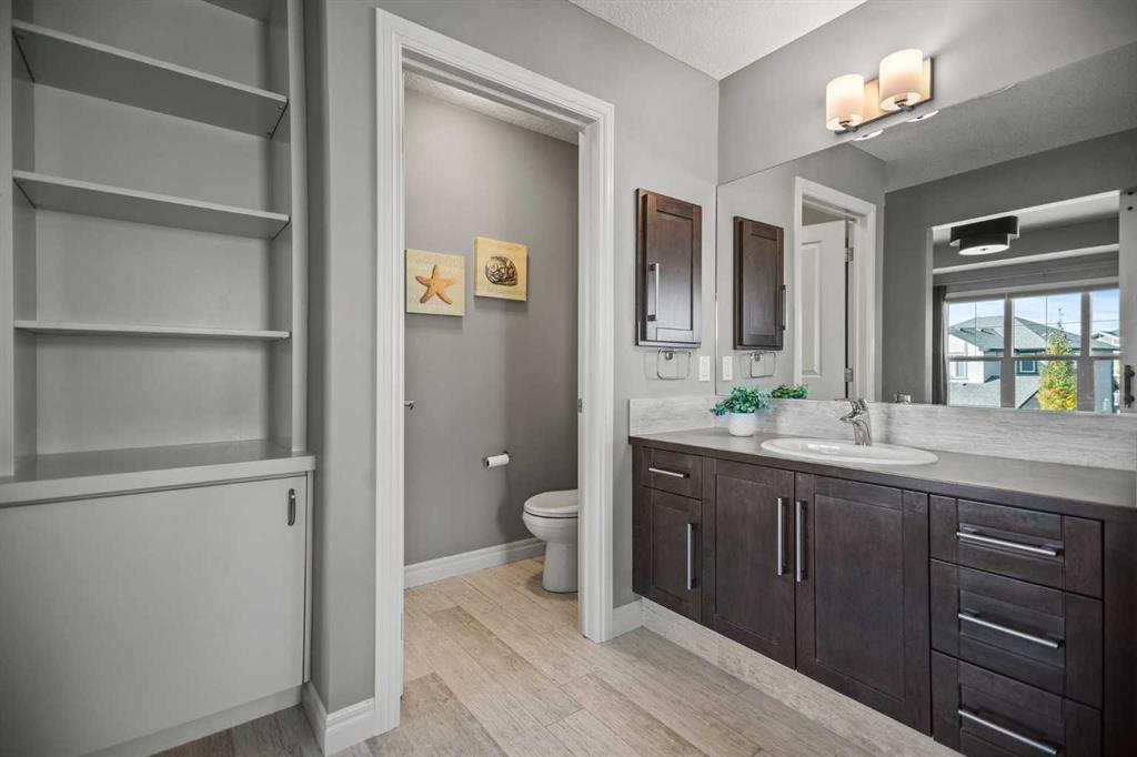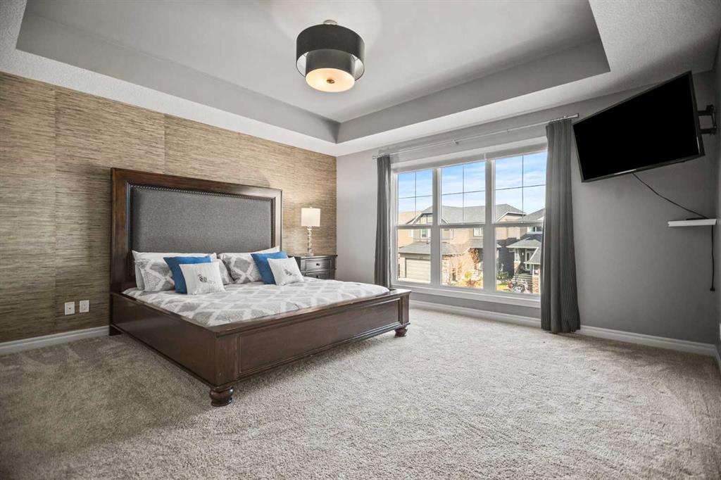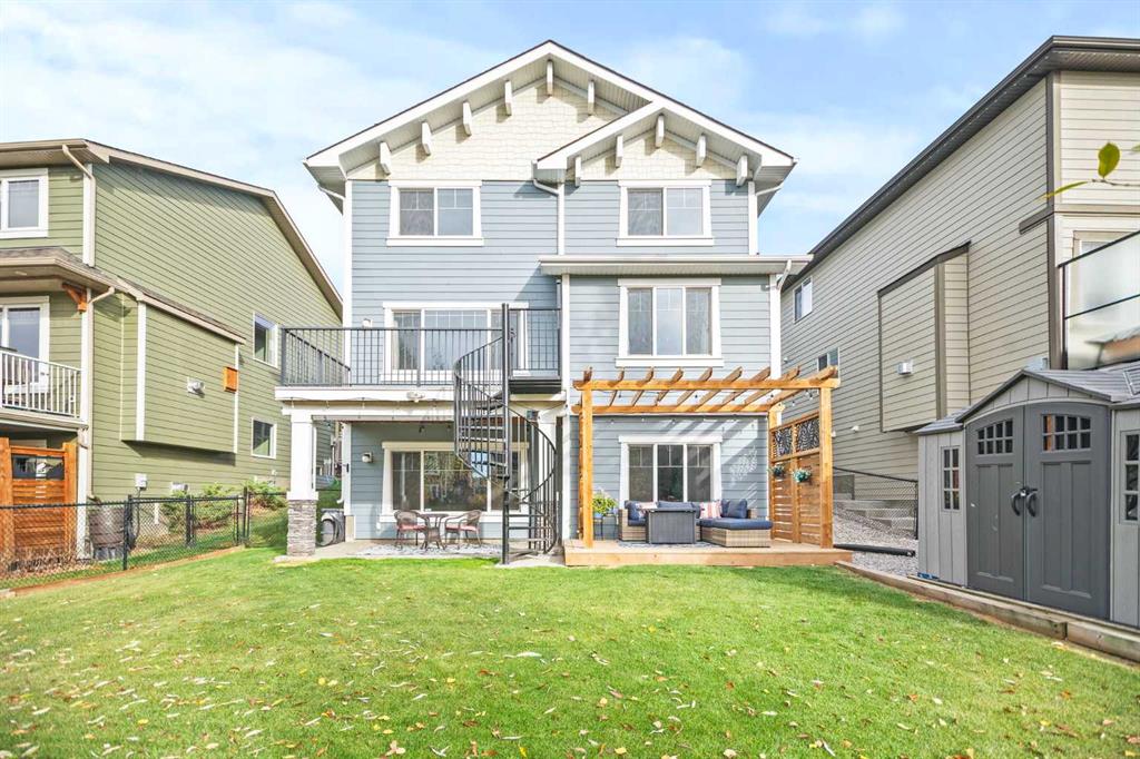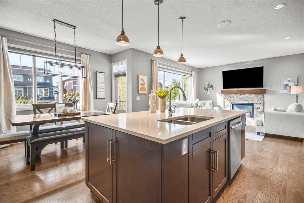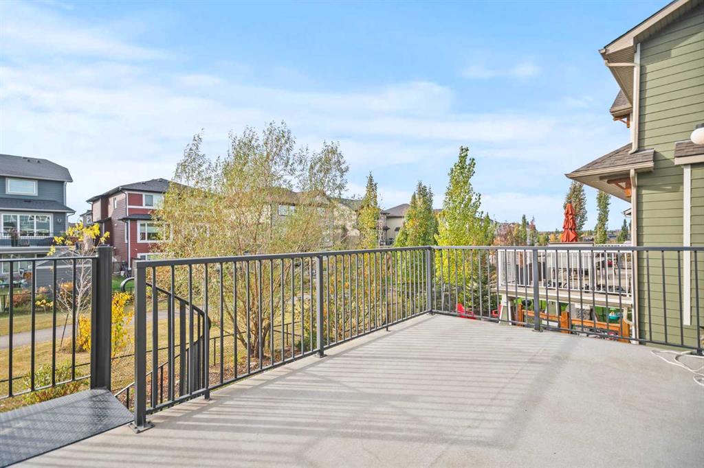 OPEN HOUSE THIS SATURDAY OCT. 11th from 2-4 pm! Discover this stunning former show home in Cimarron Springs, ready for its new owners! Step through the elegant double front doors into a bright foyer that opens to a spacious, open-concept main floor. This level features a well-sized office, a cozy living room complete with a fireplace, and an expansive kitchen island surrounded by abundant cabinet space and luxurious quartz countertops, perfect for dining and entertaining. Venture upstairs to find a central bonus room, generously sized bedrooms, and a large bathroom. The master retreat serves as a peaceful getaway, boasting a tray ceiling and an exquisitely upgraded ensuite, along with a walk-in closet that conveniently connects to the laundry area. The walk-out basement, developed by the builder, is an entertainer’s paradise, featuring an additional bedroom and bathroom. This well-cared-for home is packed with upgrades, including a full-wall built-in entertainment unit in the bonus room, ideal for family movie nights. Additional built-ins at the top of the stairs and in the ensuite enhance the home's functionality. The top deck offers ample space for outdoor dining and includes gas line hookups for your BBQ on the west-facing deck. With full fiber-cement siding, an exposed aggregate driveway and patio, air conditioning, and a walk-out basement that backs onto a scenic pathway leading to a pond, this home has it all. The fully insulated and heated garage features epoxy floors and a utility sink. This turn-key property is truly move-in ready!