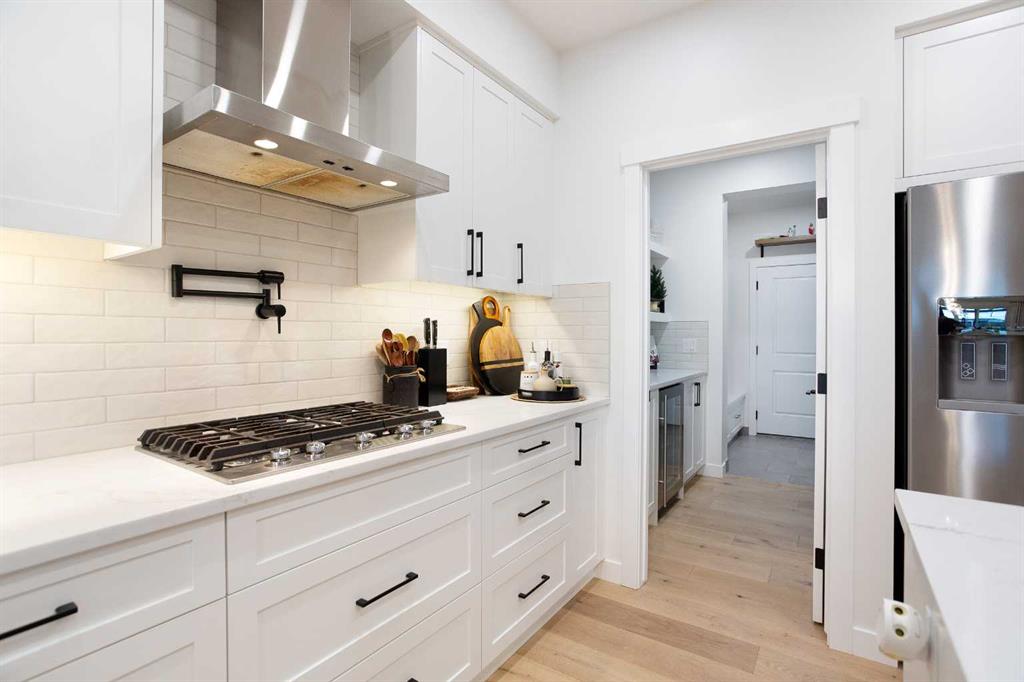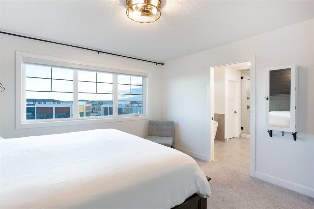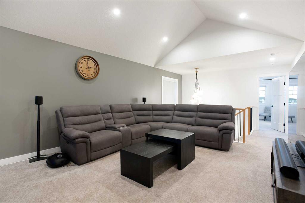 Situated in the award winning community of Air Ranch, this extraordinary 2022 residence redefines what modern living in Okotoks can feel like. Every inch of this nearly 3,900 square foot home has been designed with intention — combining craftsmanship, comfort, and understated luxury in one beautiful package. The exterior immediately stands out with its blend of architectural stone, Hardie Board, and premium siding. Triple-pane black-framed windows give the home a bold, refined look that hints at what’s waiting inside. Step through the front door and you’re greeted by a sense of openness and calm — natural light pours through oversized windows, wide-plank hardwood runs across the main level, and every finish feels cohesive and elevated. The kitchen anchors the main floor with its clean lines and functionality. Quartz countertops, full-height cabinetry, a gas range with pot filler, and a walk-through butler’s pantry with coffee bar make it a true showstopper for both cooking and entertaining. The living room is defined by a statement fireplace wrapped in shiplap with a solid wood mantel — a warm focal point on cool Alberta evenings. A set of oversized patio doors opens to an expansive deck and brand-new pergola, seamlessly extending the living space outdoors. Here, you’ll find custom landscaping designed for low maintenance and year-round appeal — a perfect spot for summer gatherings or quiet evenings in the sun-drenched, south-facing backyard. Upstairs, the vaulted bonus room offers a relaxed space for family time, while the primary suite feels like a private retreat. A spa-style ensuite features a glass shower, deep soaker tub, dual sinks, and a private water closet, all finished with premium quartz counters. The ensuite flows directly into a massive double walk-in closet with convenient access to the laundry room. Three additional bedrooms and a full bathroom complete the upper level. The fully finished lower level continues the home’s sense of scale and comfort, featuring nine-foot ceilings, a large recreation area, a generous fifth bedroom, and a full four-piece bath. It’s the perfect blend of functionality and flexibility, ready for family movie nights or visiting guests. This property sits moments from Okotoks’ newest boutique commercial plaza — an upscale community hub that will soon feature a café, wine shop, medical offices, and local conveniences — all just a short walk from your front door. Every detail, from the motorized roller shades to the triple-pane windows, speaks to a home built for longevity and lifestyle. This is where craftsmanship meets convenience, and where every day feels just a little bit elevated. Experience a home that truly stands apart — where every space tells a story of thoughtful design and effortless living.