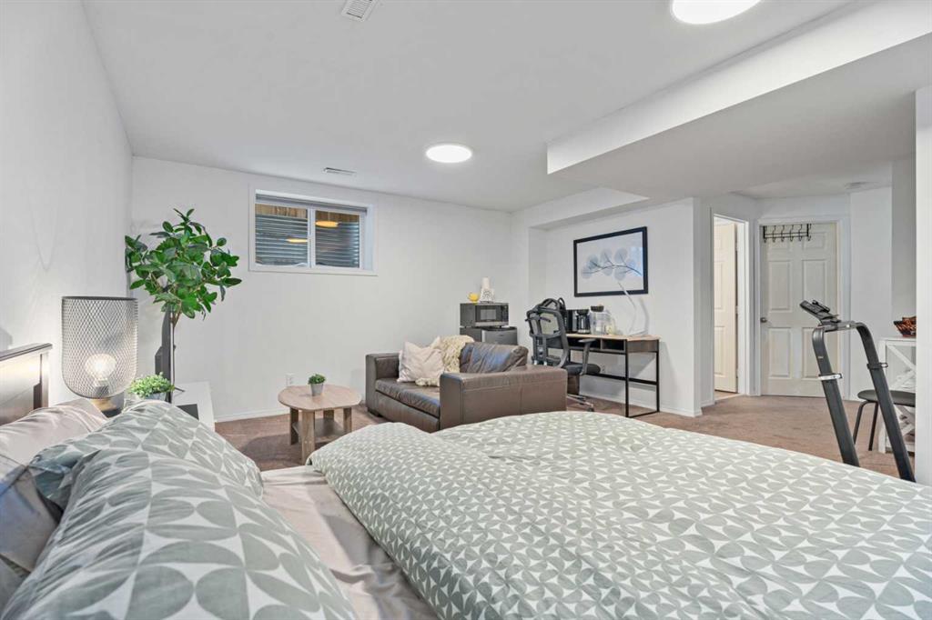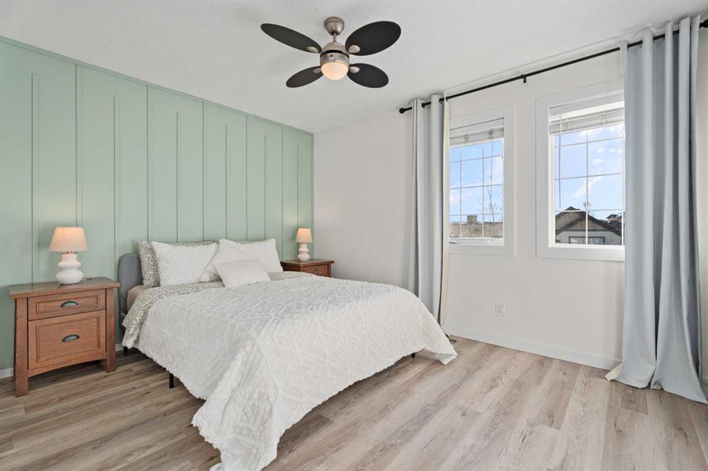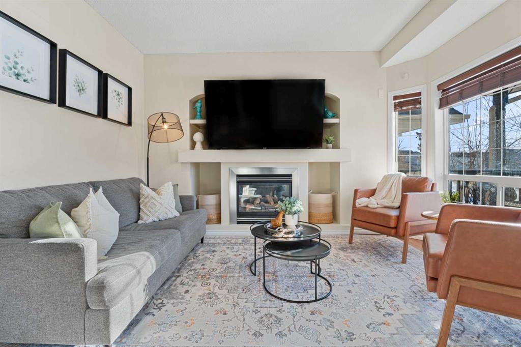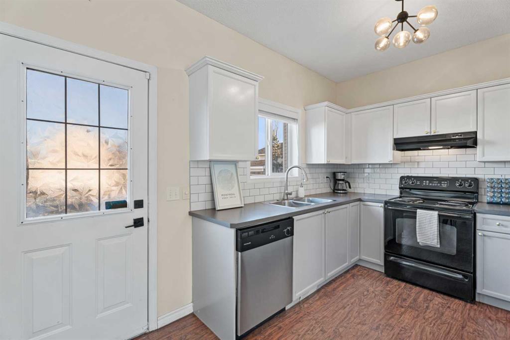Welcome to this beautifully maintained home, ideally situated on a quiet crescent in the sought-after, family-friendly community of Cimarron Grove. Offering charming curb appeal with a full-width front verandah, this home invites you in from the moment you arrive. Step inside to discover a bright and spacious main floor featuring 9’ ceilings with built-in speakers, modern décor, and a cozy gas fireplace with TV niche above. A large west-facing bay window fills the living room with natural light. The open-concept kitchen showcases flat panel maple cabinetry, tile backsplash, and seamless flow into the sunny dining nook with direct access to the backyard. A convenient 2-piece bath completes the main level. Upstairs, the primary bedroom offers a walk-in closet, while two additional bedrooms and a 4-piece bathroom provide comfortable space for family living. One of the standout features of this property is the side/separate entrance, which provides direct access to the fully developed basement, offering excellent flexibility for extended family, guests, or potential secondary living space which is AIRB&B friendly providing extra income! The lower level includes a spacious family room, a 3-piece bathroom, laundry and additional storage. With many upgrades including new flooring(2025), ROOF (2022), hot water tank(2022). Enjoy the fully fenced backyard complete with a deck, lower patio, and storage shed. Rear alley access leads to a two-car gravel parking pad, adding convenience and functionality. Located close to schools, parks, shopping, and all amenities, this home combines comfort, versatility, and an exceptional location. Book your showing today!