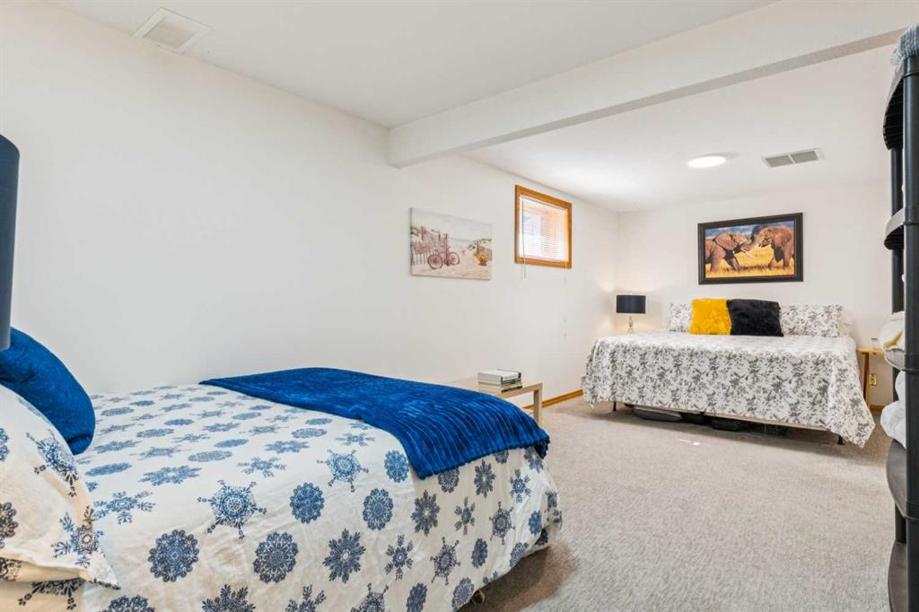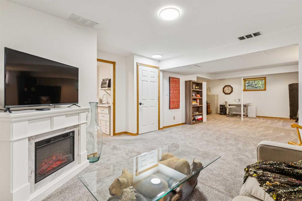 PLEASE SEE iNTERACTIVE VIDEO. Imagine waking up every day to the serenity of a West-facing backyard overlooking a beautiful treed reserve—one of the most desirable settings in all of Olds, and available for under $650,000! This home has been extensively renovated over the past two years, offering the look and feel of a brand-new property. Step inside to a welcoming foyer with a new skylight above and luxury vinyl flooring that flows seamlessly across the main level. All windows have been upgraded to energy-efficient triple pane. The chef inspired kitchen with stainless appliances is a showstopper, featuring granite countertops, soft-close cabinetry, a corner pantry, gas fireplace, and a massive island—perfect for entertaining. Oversized patio doors lead you to a large deck and private West backyard, where the reserve creates a peaceful, park-like setting to enjoy with family and friends. The primary retreat is tucked at the back of the home with tranquil views, a spa-inspired ensuite with double sinks and a soaker tub, and a huge walk-in closet that conveniently includes laundry. A second bedroom and full bathroom complete the main floor. Downstairs, the fully finished lower level offers a spacious recreation room ideal for movie nights or games, plus two additional bedrooms, a full bathroom, and even a summer kitchen. There’s direct access to the garage from the basement—a thoughtful bonus for multi-generational living or guests. Recent upgrades also include shingles, mechanical systems, water softener, carpet, insulation in the attic, and more, ensuring peace of mind for years to come. Truly a rare find in an unbeatable location—just move in & Enjoy!