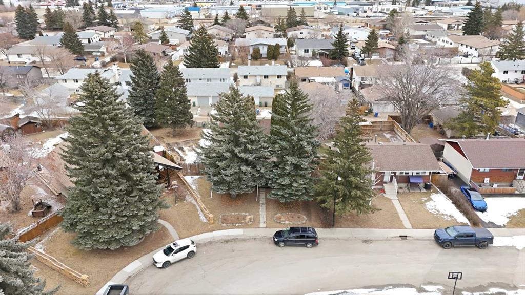 Tucked into a quiet cul-de-sac, this spacious 5-bedroom, 2.5-bath, 4-level split offers space, comfort, and privacy on a large, mature lot backing alley access and facing green space. The bright main floor features a welcoming living room with a cozy wood-burning fireplace, dining area, kitchen with island and large windows that fill the home with natural light. Upstairs includes three well-sized bedrooms, including a primary with a 2-piece ensuite. The lower levels offer two additional bedrooms, a generous family/rec room, plus laundry and ample storage space—perfect for a growing family. Enjoy the outdoors in the large fenced yard with perennial beds, mature trees, and plenty of room to garden or play. Complete with an oversized, heated double garage, this home combines a peaceful setting with convenient access to all city amenities.