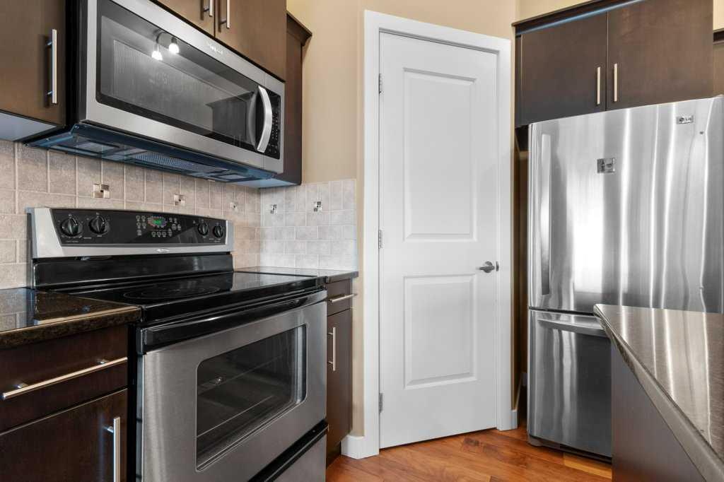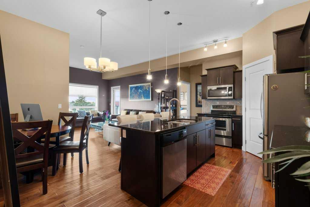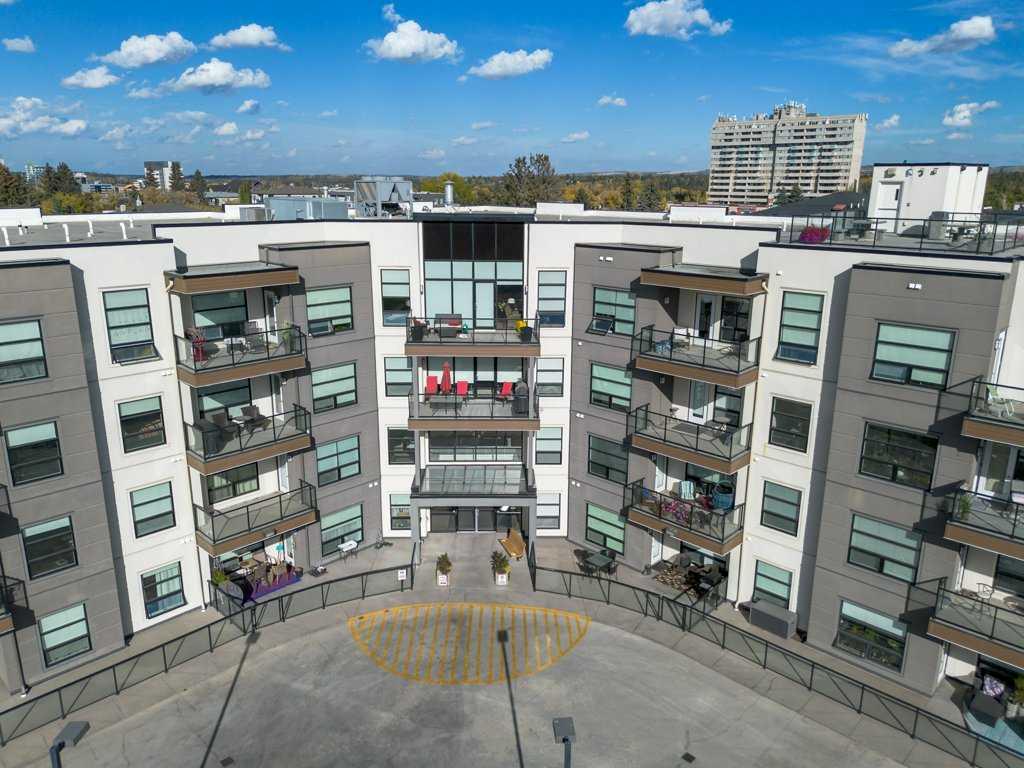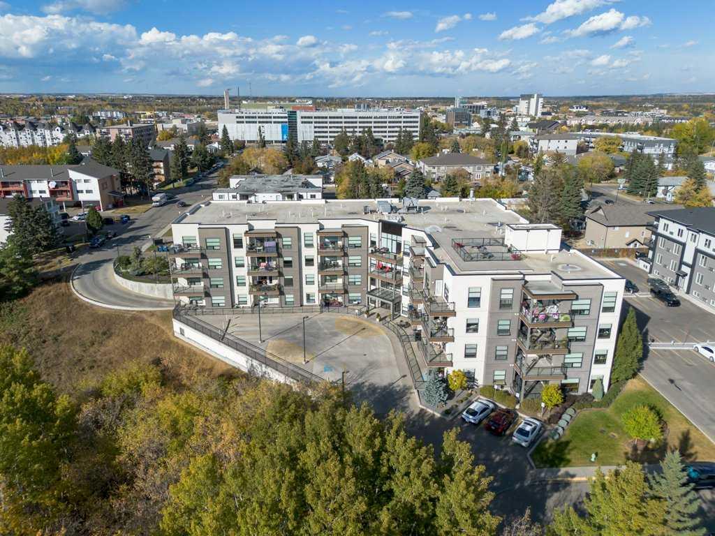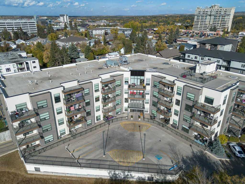 Welcome to this stunning top-floor corner unit condo in the heart of Red Deer. Perfectly located just minutes from restaurants, shopping, the hospital, and more. This 2 bedroom, 2 bathroom home combines style, space, and convenience. Enjoy sweeping views from oversized windows throughout, soaring ceilings that enhance the open feel, and a spacious private deck—ideal for relaxing or entertaining. The chef inspired kitchen features granite countertops, abundant storage, and a functional layout that flows beautifully into the living space, highlighted by rich engineered hardwood flooring. Comfort and luxury continue with air conditioning, in-unit laundry, and a thoughtfully designed floor plan that offers privacy and space between the two bedrooms. The building itself offers exceptional amenities, including a boardroom, library, exercise room, and media room—everything you need for work, wellness, and play. This beautifully upgraded condo in a premium location and would be perfect for professionals, downsizers, first time buyers or investors. Condo fee of $616.22 includes, heating, garbage/recycling, lawn care maintenance including snow removal. Amenities are; Gathering room on the main floor, Gym on the second floor, Games room on the third floor.