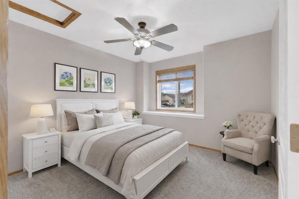 Located in sought after Sunnybrook South, just steps from a parks, playgrounds, and the amazing trail system around Piper Creek, this immaculate fully developed bi-level offers a great combination of thoughtful updates and pride of ownership throughout. Freshly painted from top to bottom and featuring newer shingles (2024), this home has been beautifully maintained and is totally move in ready. Step inside to a spacious tiled entry leading to a bright living room highlighted by vaulted ceilings, a large west facing front window, and vinyl plank flooring. The kitchen is well laid out and offers oak cabinetry, matching black appliances, a convenient pantry, and a large eating bar for added seating. A large dining area opens directly to the partially covered back deck and enjoys a view over the fully fenced and landscaped back yard. Down the hall, you’ll find a nicely sized kids' room, a 4 pce bath, and a spacious primary suite featuring dual closets and a private 4 pce ensuite with soaker tub and full tile surround. Downstairs, the fully finished basement offers big, bright windows that let in an abundance of natural light, and you'll love hanging out in the huge family room with a wet bar, a great space for entertaining with friends. Two additional bedrooms, a 3 pce bath, massive storage space, and a laundry area with sink finish off the lower level. In-floor heat is roughed in for future use. Outside, you’ll find a fully fenced and landscaped yard complete with a shed and gravelled parking pad with alley access, and plenty of space remaining to build a future garage. This spotless home in a great location shines with pride of ownership and is a pleasure to show!