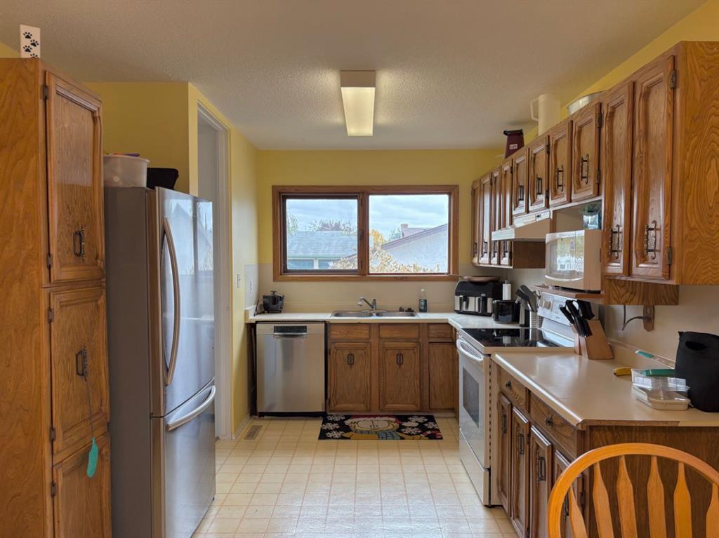 Bungalows are a hard find and makes this home a great fit for any buyer at any stage of life! Step inside this bright home featuring a front living room with a large window overlooking the quiet culdesac. The kitchen and dining room feature a good amount of cabinet space, a window overlooking the back yard and some updated appliances. 3 bedrooms and a full bathroom on the main level and a large fourth bedroom in the basement. The basement also offers a good size family room space, very large laundry/storage room, a second bathroom and an area started for a fireplace or wood stove if desired! The fenced backyard is a nice size and offers a concrete patio, fire pit area, room for a garden and space to play. Parking galore with the detached garage, long driveway and an additional concrete pad off the back of the garage with back alley access. The options are endless! Recent updates include shingles on the house and the garage and insulation blown into the attic making the home more efficient and easy to heat. Other updates over the years are the furnace, hot water tank, paint and some carpet. A solid home is found here - in a great location close to three parks, many schools and the towns walking trail.