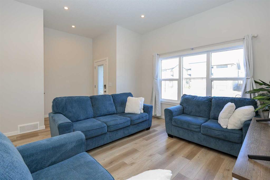 4 BEDROOM, 3 BATHROOM 2-STOREY IN LIBERTY LANDING ~ SUNNY SOUTH FACING BACKYARD ~ PRIDE OF OWNERSHIP ~ Covered front entry welcomes you to this well cared for home, in like-new condition ~ Open concept main floor layout is complemented by high ceilings and vinyl plank flooring throughout, creating a feeling of spaciousness ~ The living room has large windows that overlooks the front yard ~ Easily host gatherings in the spacious dining room ~ The kitchen offers an abundance of modern cabinetry, tons of quartz counter space including a counter height eating bar, full tile backsplash, south facing window above the sink that overlooks the backyard, upgraded stainless steel appliances and a massive walk-in pantry with floor to ceiling shelving ~ Mud room just off the kitchen offers garden door access to the south facing deck, with composite deck boards and aluminum railings, and the backyard ~ 2 piece main floor bathroom ~ The primary bedroom can easily accommodate a king size bed plus multiple pieces of furniture, has a large walk-in closet and a bright 4 piece ensuite ~ 2 additional bedrooms on the upper level are both a generous size with ample closet space ~ 4 piece bathroom is conveniently located next to the upper level laundry room ~ The partially finished basement has a large completed bedroom, bathroom plumbing roughed in, with space for a family room and tons of storage throughout ~ The backyard is landscaped, fully fenced and has to the oversized rear parking pad and paved back alley ~ Located in convenient Liberty Landing: Offering walking trails, parks and green spaces, unbeatable convenience with easy access to Highways 2 and 2A, and walking distance to Gasoline Alley, where you'll find a wide range of amenities, including the popular Gasoline Alley Farmers' Market, Costco, Cineplex and transit to Red Deer, making it an ideal location for families and commuters alike.