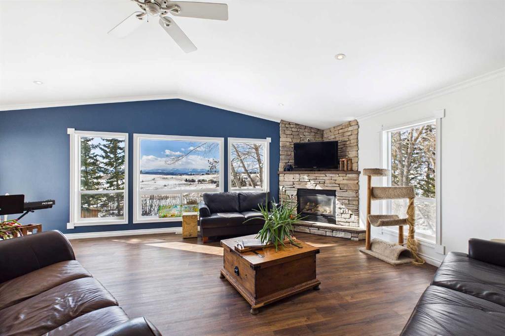 Welcome to an exceptional acreage opportunity offering space, privacy & breathtaking scenery.This beautifully renovated walkout bungalow sits on 8.06 picturesque acres & captures stunning, unobstructed mountain views right from every level of the home. Whether you’re looking for a peaceful country retreat, space for animals, or room for your family to grow, this property offers the perfect blend of comfort, functionality & rural charm. Inside, the home features 6 spacious bedrooms & a thoughtfully updated interior designed for modern living while embracing the warmth of country life. The kitchen speaks for itself with a massive island, quartz counters, tons of cabinetry, pantry & a coffee station area, This kitchen effortlessly blends highend modern utility with the rugged, organic textures of a mountain retreat. The open-concept design is defined by its crisp white cabinetry, dark stone surfaces, and a striking floor-to-ceiling fieldstone feature wall. All the bathrooms have been updated & in convenient locations. Large windows fill the home with natural light &perfectly frame the sweeping mountain views, creating a bright & inviting atmosphere throughout the main living areas. 3 cozy fireplaces bring ambience to every level of this home. 2 wood burning fireplaces and one natural gas fireplace. The layout offers both comfortable everyday living & plenty of space for entertaining family and friends. There are 3 decks to enjoy the outdoor life and views. The walk-out basement provides additional versatile living space with direct access to the outdoors, making it ideal for gatherings, extended family living, a recreation area, media room & a private retreat for guests. With multiple living spaces and generous bedroom sizes, the home offers flexibility to suit a variety of lifestyles. Step outside and experience the true beauty of acreage living. The 8.06-acre parcel offers wide open space, privacy & endless potential for outdoor enjoyment. The property has been home to cows, donkeys & chickens, making it well suited for hobby farming or those who appreciate the charm & rewards of rural life. There’s a 20x50ft garden area, gazebo and additional outbuildings. Imagine starting your mornings with coffee while watching the sunrise over the mountains & ending your evenings under expansive prairie skies. With incredible views, room for animals & a beautifully updated home already in place, this property offers a rare opportunity to enjoy the best of country living while still being within reach of nearby amenities. Acreage properties like this are increasingly hard to find offering the perfect combination of land, views & a move-in-ready home. Whether you’re dreaming of a hobby farm, a private family retreat, or simply more space to live and breathe, this remarkable property delivers a lifestyle that is truly special. Roof 15 years old, septic field/tank 2022, furnace 2023, H2O tank 2025
