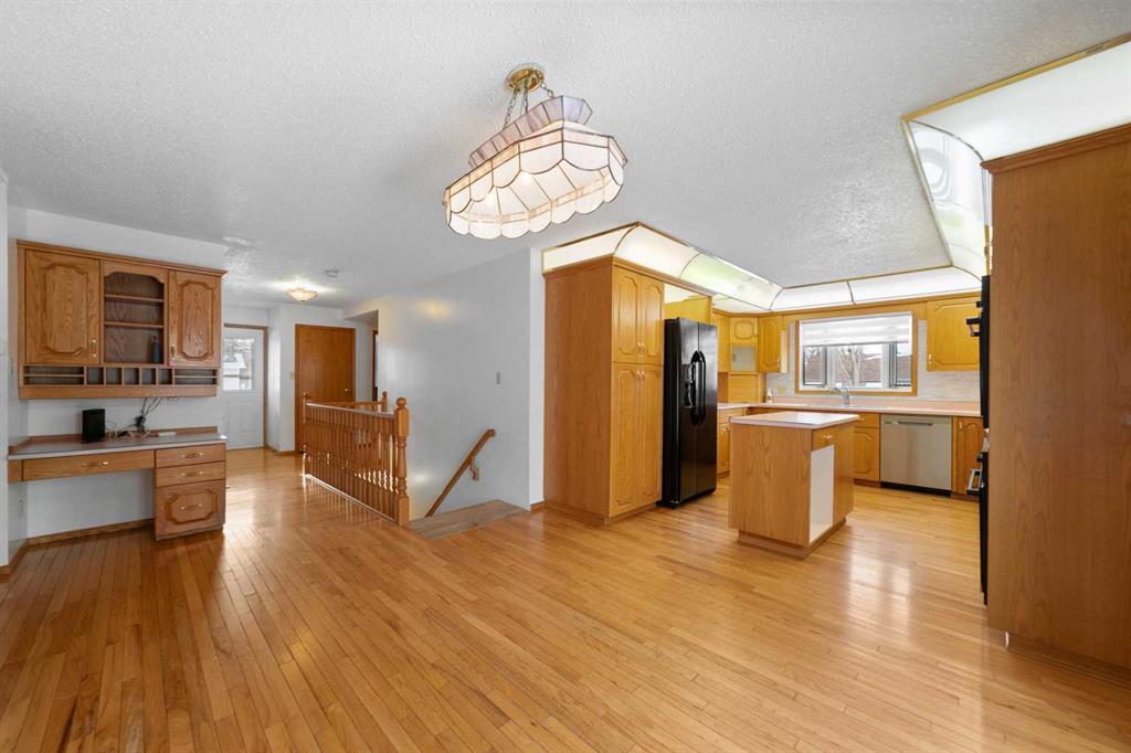 Welcome to this exceptionally spacious family home in Sedgewick, offering 3,100+ sq. ft. of living space and a rare main-floor layout with 5 bedrooms! Designed for busy households, the main level features 2 bathrooms, a massive family room with a wood-burning fireplace featuring brick surround and mantle, plus an impressive 550+ sq. ft. living room—perfect for gathering, entertaining, or giving everyone room to spread out. The kitchen is built for function and hosting, offering a large layout with a moveable island, double built-in ovens, an electric cooktop with griddle, plus built-in fans and fat trays, along with a fridge with water & ice and a new dishwasher. You’ll also love the mix of hardwood flooring and some newer flooring in bedrooms, plus thoughtful upgrades throughout including pot lights, closet organizers, central air conditioning, and plenty of storage options. The finished basement adds even more flexibility with a family room, 2-piece bathroom, oversized storage room, utility room, and a laundry room set up for TWO washers and TWO dryers—an incredible bonus for large families. Additional features include a laundry chute for added convenience. Outside, enjoy a fully fenced backyard with extra storage options, and the attached double garage is finished, heated, and upgraded with LED lighting. Located just a couple blocks from the K–12 school, playgrounds, and Main Street, this is the ideal home for growing families looking for space, comfort, and convenience.