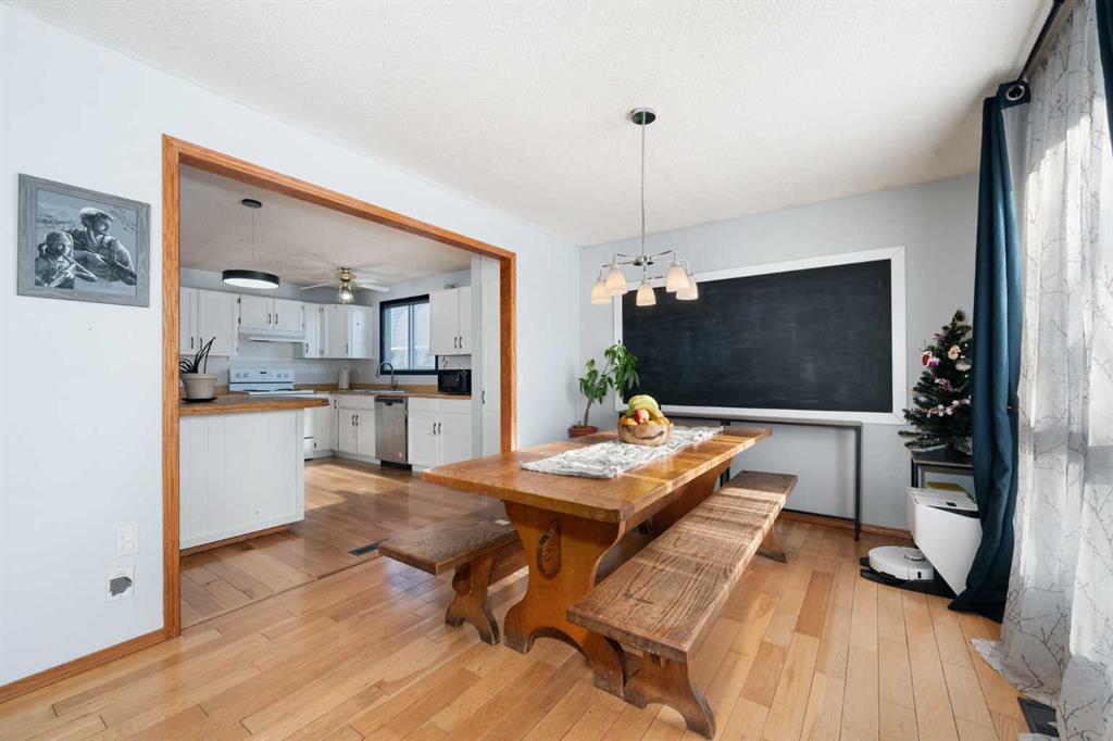 Welcome home to this charming and welcoming updated four-level split, perfectly situated on a quiet street in the desirable community of Maplewood, Strathmore. Offering spacious living, smart design, and fantastic outdoor amenities, this property is truly move-in ready and ideal for a growing family. As you enter, you'll be greeted by the bright and open concept main level, featuring a seamless flow between the living and dining areas, perfect for entertaining. The heart of the home is the large, functional kitchen featuring butcher block countertops and an abundance of cabinet and counter space for easy organization and meal prep. The upper floor provides a tranquil retreat with two generously spacious bedrooms and a shared, well-appointed 4-piece main bathroom, ensuring comfort for the whole family. The first lower level is dedicated to relaxation, featuring a sun-filled family room with patio doors offering direct, walk-out access to the beautifully landscaped backyard, blending indoor and outdoor living. This level also includes a bright third bedroom and a convenient 3-piece bathroom, ideal for guests or a home office. The lowest level—the fully finished basement—adds incredible value and versatility. It boasts a fourth distinct living space, a large recreation room perfect for games, and plenty of utility/storage space with dedicated laundry facilities. Recent updates include a brand new roof and shingles that were installed in July 2025 on both the house and the oversized garage. Furthermore, three new rear windows in the bedrooms feature triple-pane glass, significantly enhancing energy efficiency and comfort. The exterior is equally appealing. The property features an oversized single detached garage that is nearly tandem in depth, offering excellent storage potential. The extra-long driveway is a huge asset, providing parking for an additional three vehicles. Location is key, and this home delivers. Situated on a quiet street, you're literally around the corner from a neighbourhood park and local schools, plus a fantastic sledding hill for winter fun. For year-round enjoyment, the Strathmore Aquatic Centre is just a couple of minutes away. This Maplewood gem perfectly balances comfortable family living with an ideal location and crucial modern updates. Don't miss your chance to call this exceptional property home!