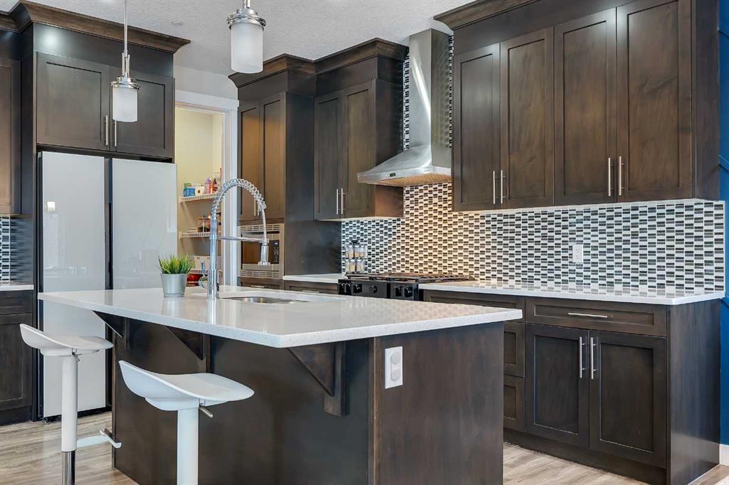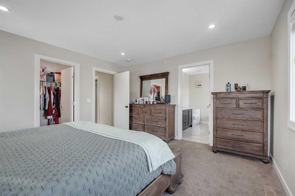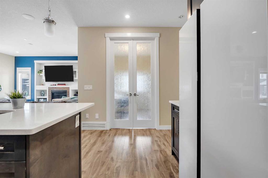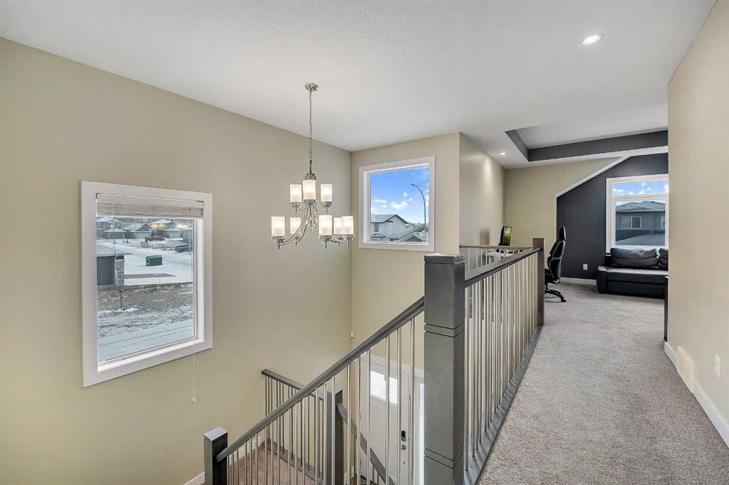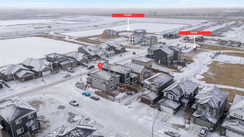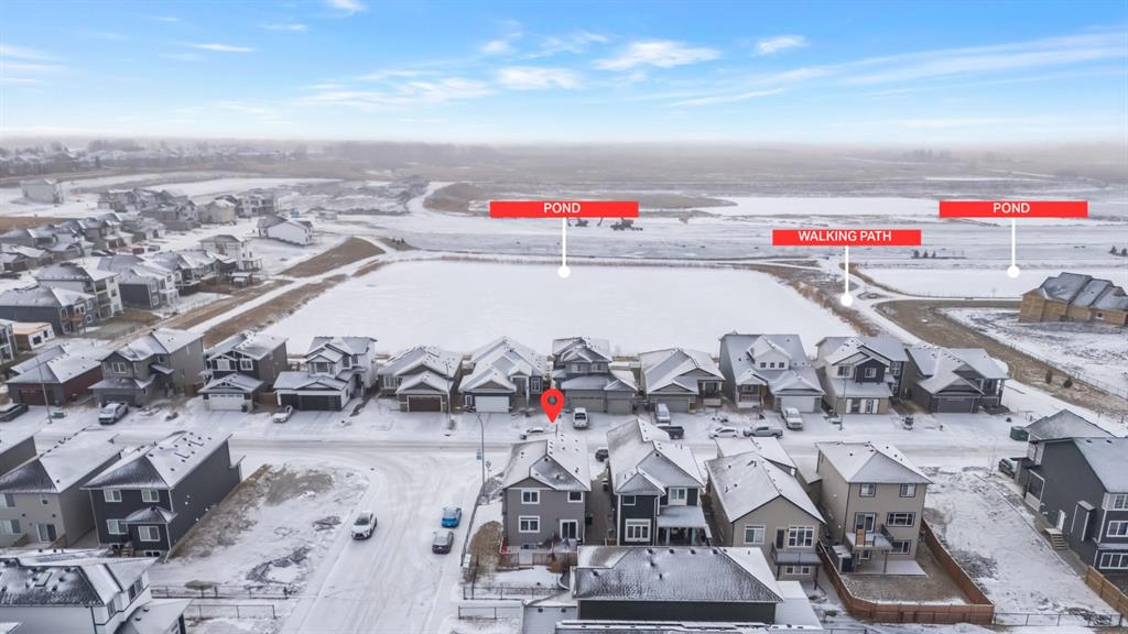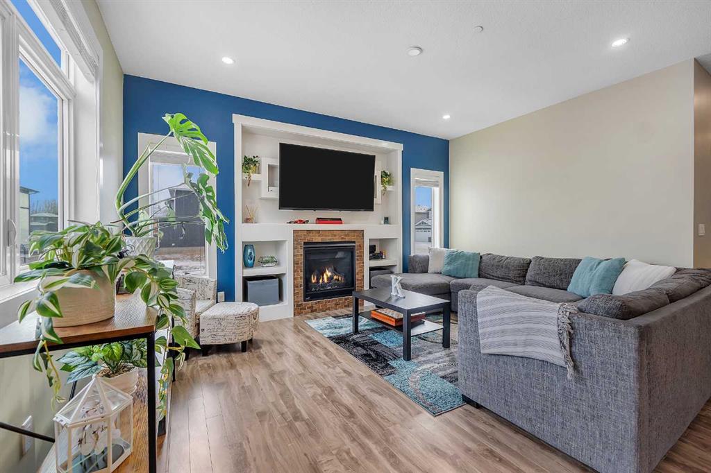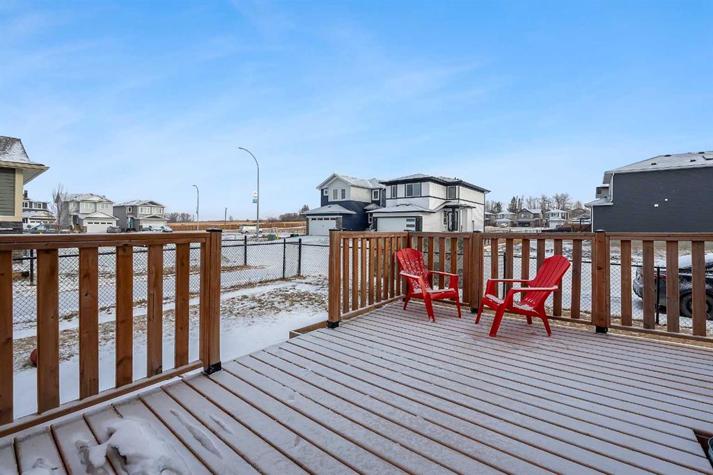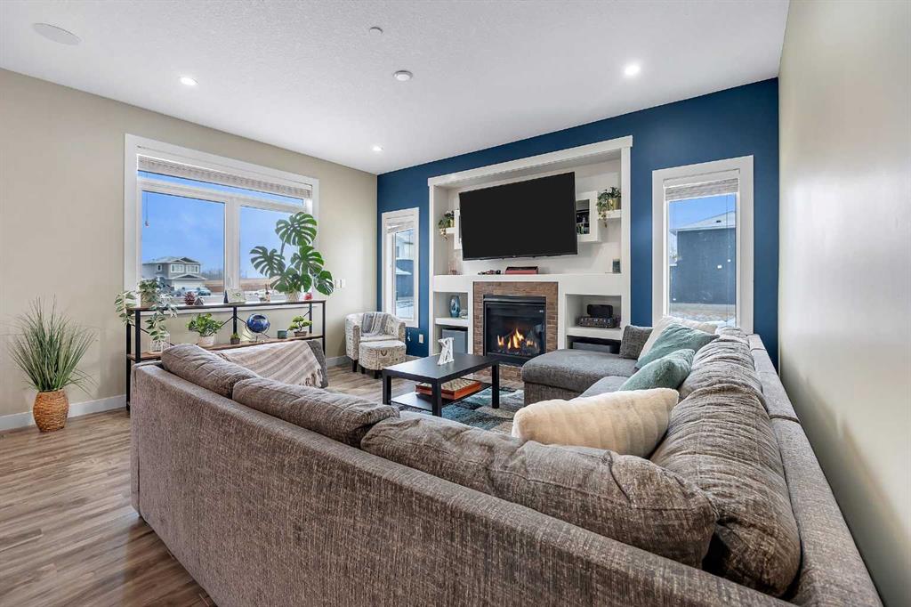 Welcome to this exceptional family home in the sought-after community of Lakewood, Strathmore, where refined living meets everyday comfort, just 30 minutes from Calgary. Perfectly positioned on a corner lot, and offering over 2,900 sq. ft. of fully developed living space, this thoughtfully designed home delivers both style and function for modern family life. The main level showcases an airy, open concept layout with 9 ft. ceilings, laminate flooring, and an abundance of windows that bathe the space in natural light. At the heart of the home, the chef-inspired kitchen impresses with a large central island, sleek quartz countertops, ceiling-height cabinetry, stainless steel appliances, and a walk-through pantry, ideal for entertaining while keeping family life organized. The living room is warm and inviting, centered around a gas fireplace with built-ins, creating a perfect gathering space. A private main floor den behind double French doors offers an ideal home office, homework space, or quiet retreat. A powder room and a spacious mudroom with built-ins complete the level, thoughtfully designed for busy families. Upstairs, the home continues to impress with a large bonus room, perfect for family movie nights, along with three generous sized bedrooms, two full bathrooms, and the convenience of upper-level laundry. The primary suite is a luxurious retreat, featuring a walk-in closet and a spa-inspired 5-piece ensuite with dual sinks, a deep soaker tub, and an oversized walk-in shower. The fully finished lower level extends your living space with a large family room, two additional bedrooms, and a 3-piece bathroom, ideal for guests, teens, or growing families. Step outside to a fully landscaped yard, backing onto a walking path that leads directly to a park and green space. Scenic ponds just across the street provide the perfect setting for evening strolls. Additional highlights include central air conditioning, fresh paint throughout, a new gas stove and refrigerator (2025), dishwasher (2026), and newer front load washer and dryer, making this home truly move-in ready.