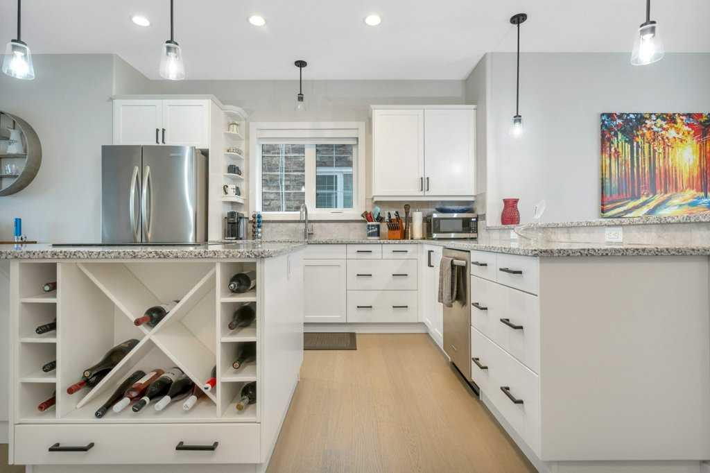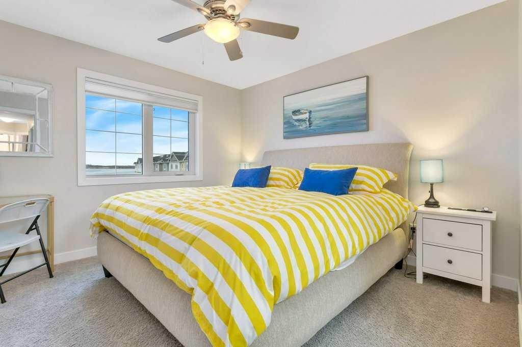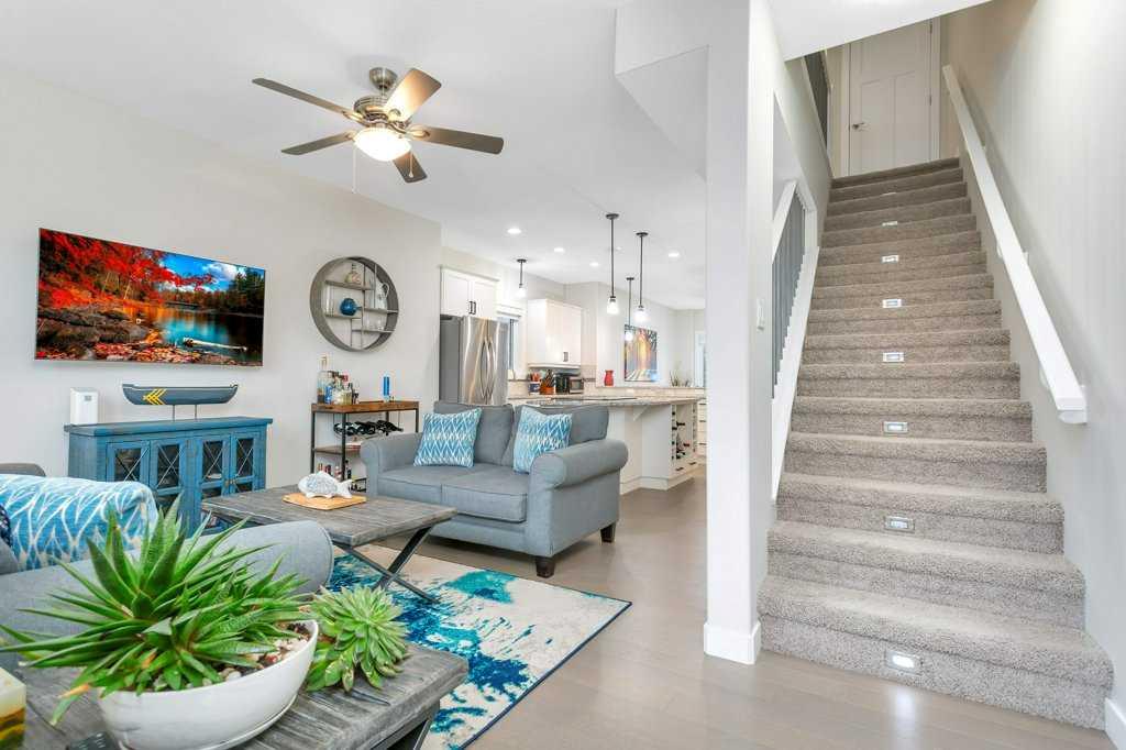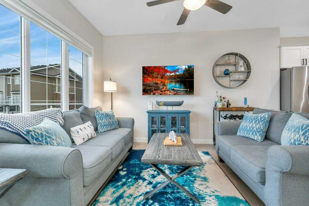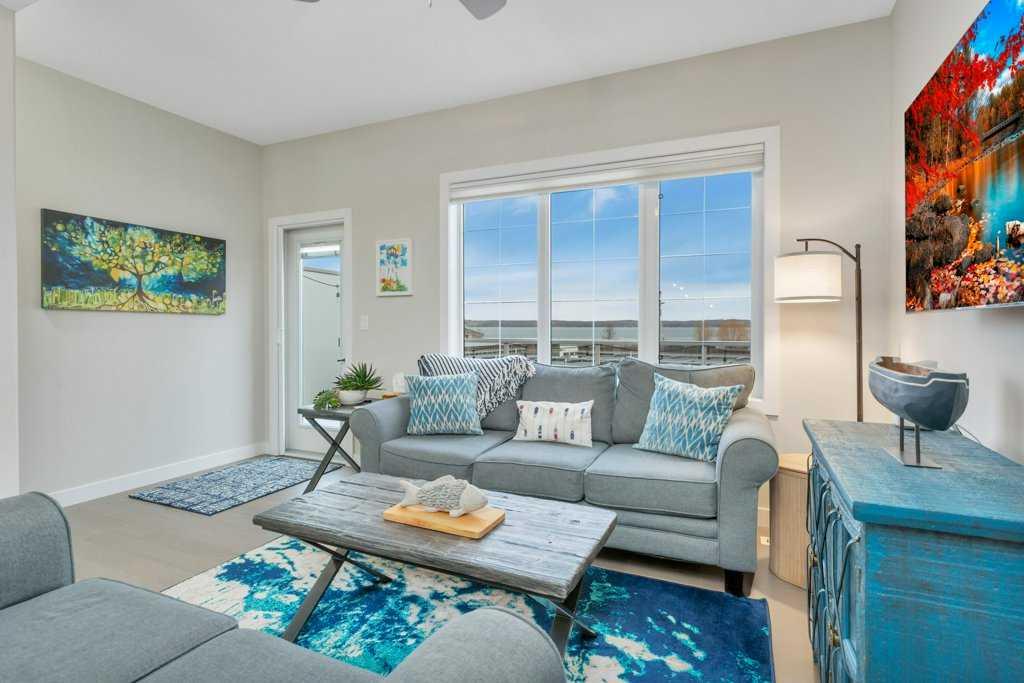 FULLY FURNISHED | END UNIT | WATERFRONT | GATED MARINA COMMUNITY ~ Welcome to a rare turn-key opportunity in Sylvan Lake—a fully furnished, end-unit townhome in the sought-after WatersEdge Marina development. This former show home combines premium location, added privacy, and immediate usability with no setup required. ~ The end-unit position is a major advantage—offering additional windows, more natural light, and fewer shared walls. The result is a brighter, quieter home that feels noticeably more open than interior units. ~ The main living space features an open-concept design with large windows capturing panoramic views of the marina and lake. The kitchen is bright and functional with white cabinetry, granite countertops, a central island, and stainless steel appliances, now upgraded with a brand new induction stove. Fresh new paint throughout gives the home a clean, modern feel. The dining and living areas flow seamlessly to the private deck—ideal for taking in sunsets and the lakefront atmosphere. ~ Upstairs offers a well-designed layout with a spacious primary suite complete with walk-in closet and private ensuite, plus two additional bedrooms, a full 4-piece bathroom, and convenient upper-floor laundry. ~ The heated, double-length garage is a standout feature—finished with high-grade flooring, hot and cold taps, and a dedicated storage/utility area, providing both function and flexibility for year-round use. ~ Additional features include central A/C, built-in sound system, central vacuum, and quality window coverings—all included. ~ Located in the gated WatersEdge Marina community, this home offers one of the most desirable lakefront settings in Sylvan Lake. Just steps to the marina, beach, lighthouse promenade, and downtown core—walk to restaurants, shops, and the seasonal farmers market with ease. ~ Enjoy true lakefront living with panoramic views and direct access to Sylvan Lake’s vibrant lifestyle—morning coffee by the water, afternoons on the beach, and evenings watching the sunset from your deck. ~ With both short-term and long-term rentals permitted, this property also provides flexibility for personal use or income potential. ~ Fully furnished. End unit. Turn-key. Premium location. This is a stronger package than typical offerings in the complex—and it shows the moment you walk in.