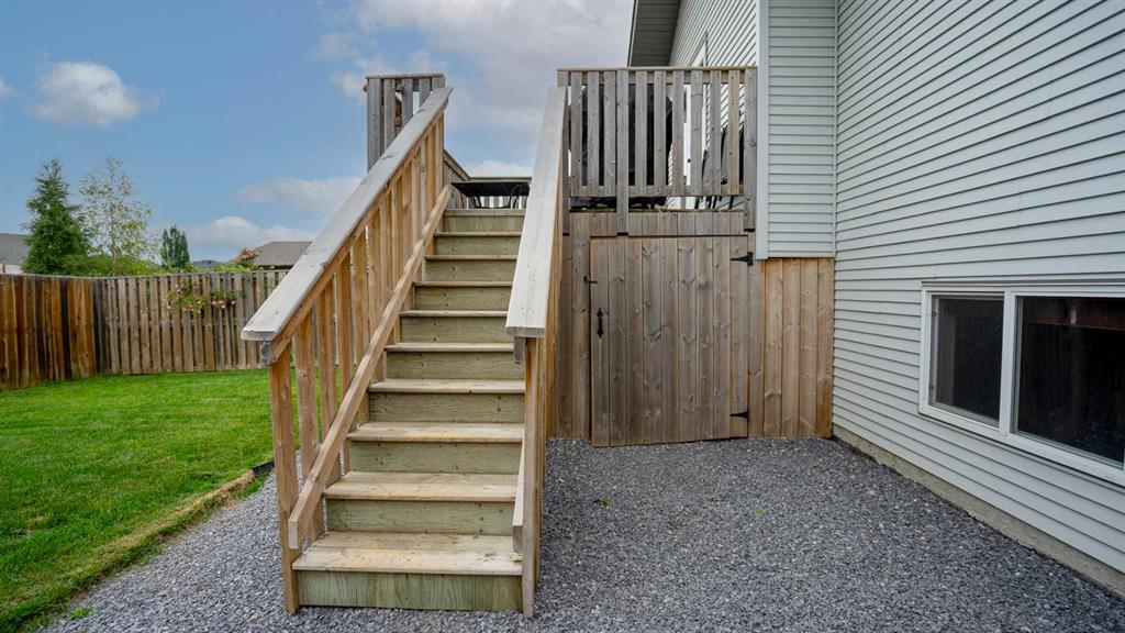 IMMEDIATE POSSESSION AVAILABLE! Don't miss this 4 bedroom 3 bathroom bi-level in desirable Ryder's ridge subdivision...only a few blocks from the lake. This home is situated close to schools, shopping, all essential amenities, parks/playgrounds. As you enter the home from the southern facing front veranda you will be greeted by a spacious entry way with coat closet. Upstairs you will find 3 bedrooms on the main level, including a good size primary bedroom with 4 piece ensuite. The living room has plenty of natural light, laminate flooring and a vaulted ceiling. The kitchen has a centre island, built in pantry, dining area and comes complete with black stove/fridge(with water & ice)/dishwasher/microwave. Just through the garden doors off the dining room you will find a large deck overlooking the spacious fenced rear yard with parking pad. The basement is fully finished (except for flooring) and includes a large family room, bedroom, 4 piece bathroom and an area that could be framed in for a 5th bedroom or used as is as a games/craft area.