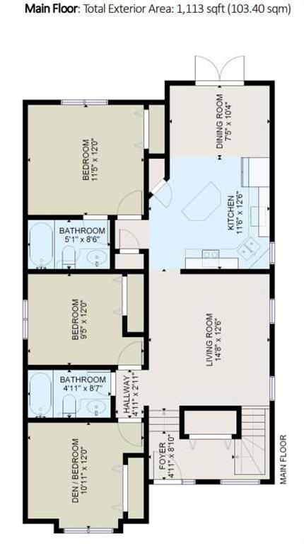 | Bedroom - Primary | 11`5" x 12`0" | Main |