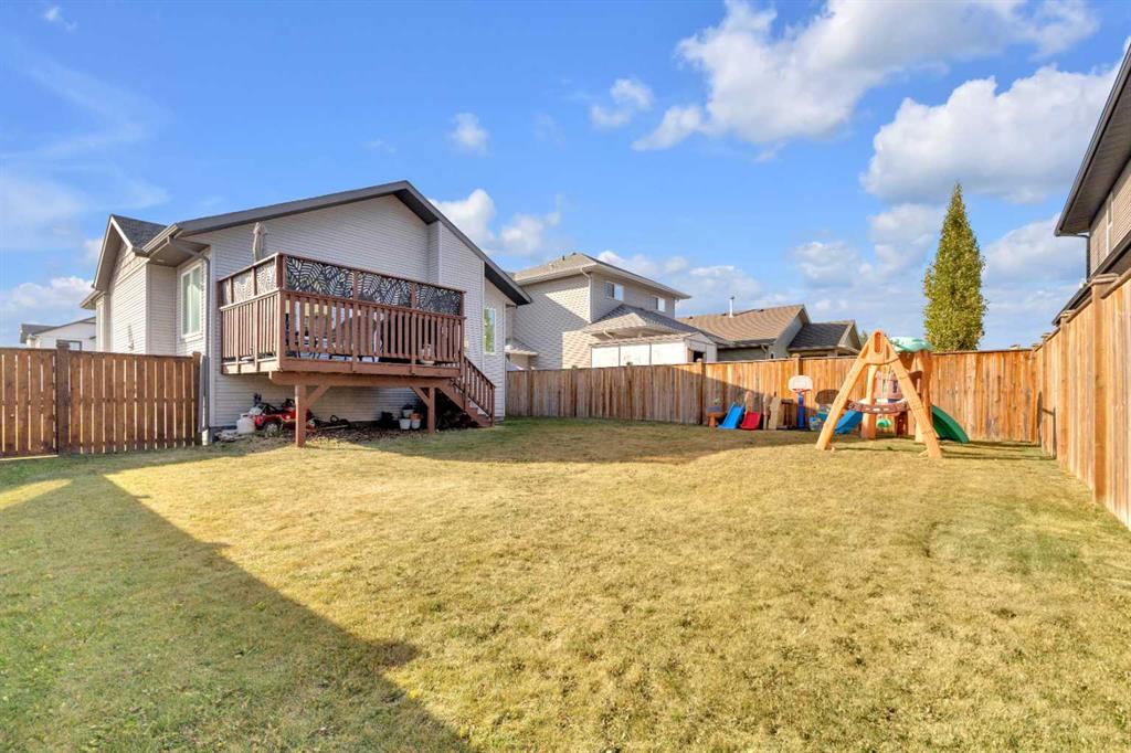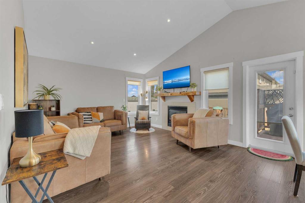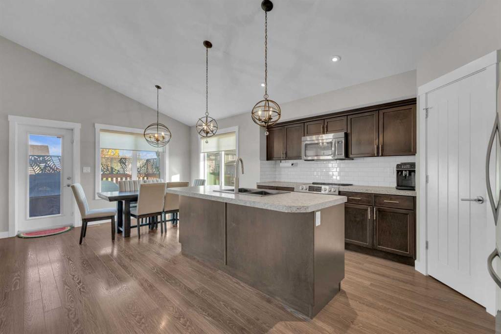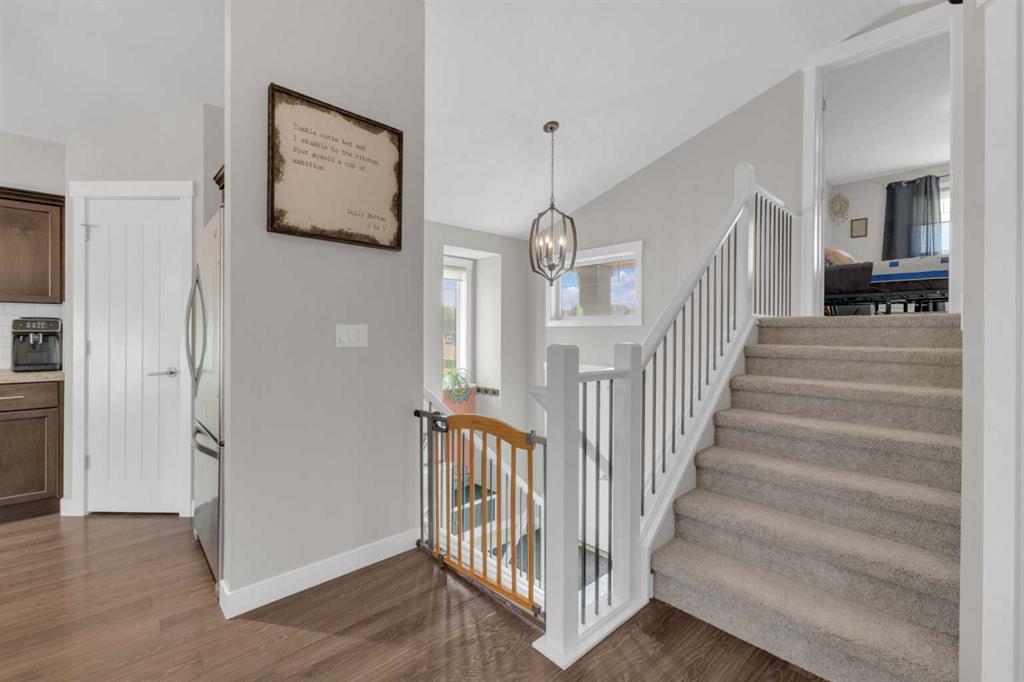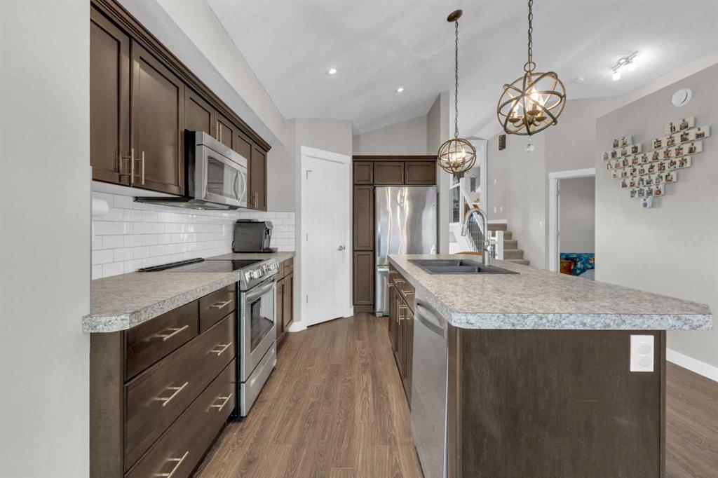 Cozy and comfortable, this beautiful modified bi-level in Ryders Ridge offers the perfect blend of style and functionality. Ideally located just moments from trails, parks, schools, and amenities, it’s a home designed for both convenience and everyday living. The open concept main floor showcases a spacious living room with a gas fireplace and plenty of room for a large sectional. Adjacent to the living room is a dining area with garden doors that lead to a private deck featuring full privacy screens, overlooking the fenced yard with an RV gate. The kitchen is sure to impress with its large island with seating, stainless steel appliances, corner pantry with built-in solid shelving, full tile backsplash, and updated lighting. Also on the main floor is a bedroom and full bathroom. Upstairs, the master retreat awaits with a walk-in closet and luxurious 5-piece ensuite. The fully finished basement offers large windows, a bright family room, an additional bedroom, full bathroom, and generous storage space. Additional highlights include a new washer and dryer (2024), a new hot water tank (2024), a high-efficiency furnace, and a finished attached garage with gas rough-in for a heater.