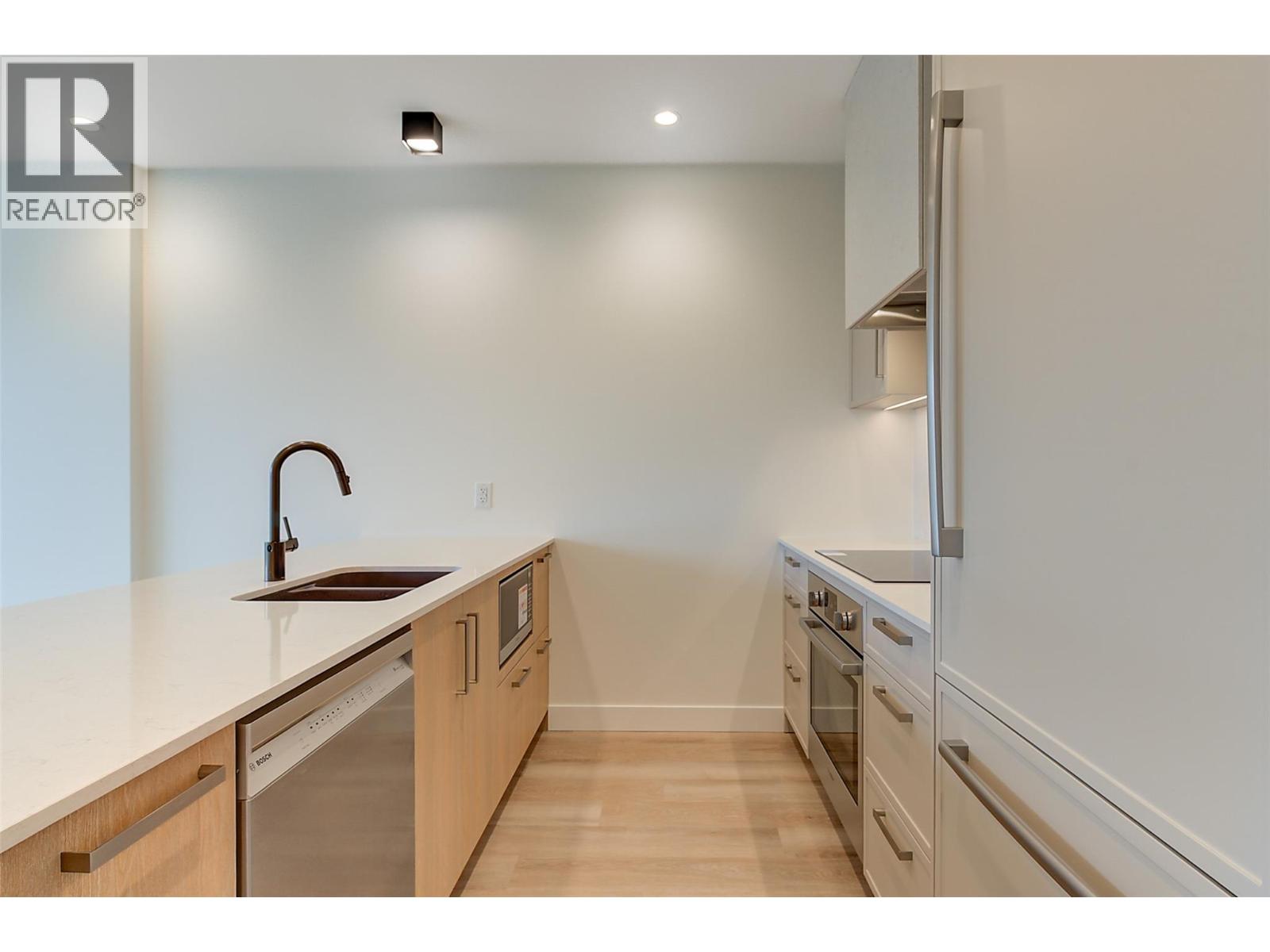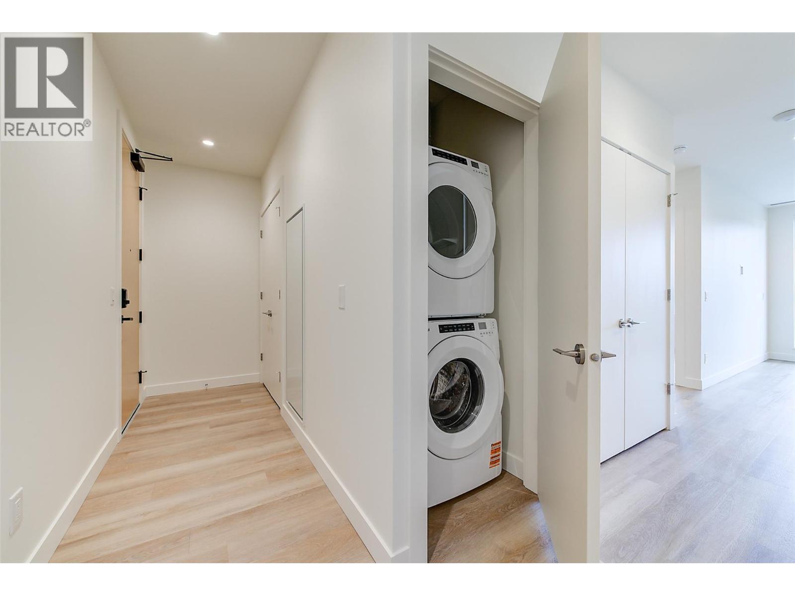 This brand new TOP FLOOR 2 bedroom condo with magnificent lake views is located in the desirable Lower Mission area of Kelowna. Movala has been designed with incredible thoughtfulness and the amenities will satisfy all your living needs. The condo boasts high ceilings, top of the line finishings, upgraded walk-in shower, in unit washer/dryer, high end appliances with induction stove, touchless water faucet, state-of-the-art blinds & a large deck with fabulous views of Okanagan Lake perfect for entertaining! There is a lovely guest suite, upscale gathering room with an eye catching steam fireplace, beautiful library area, yoga room, celebration room, games room with pool table, shuffle board, foosball & a number of large screen tvs, professional work area with individual rooms for privacy. The outdoor pool area with hot tubs will be incredible with lounge furniture and tables, a bocce lawn, fire tables, bbq, kitchen and landscaped gardens with walkways. The underground parking area is secure and boasts a dog wash area, huge bike room with chargers for ebikes, water sports storage and a workshop area for repairs. Plenty of secured underground visitor parking spaces will be much appreciated when guests come. EV charging to unit's parking stall can be arranged. Located in one of Kelowna's most desirable locations Movala is just minutes to shops, restaurants, wineries, hiking trails & a quick drive to the airport. This magnificent resort style residence is simply the best!!